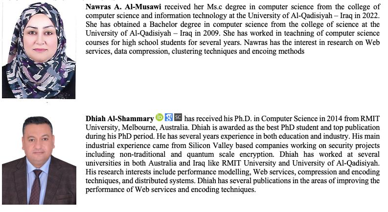 السيدة نورس عباس كاظم الموسوي -الحاصلة على شهادة الماجستير في علوم الحاسوب من كلية علوم الحاسوب وتكنولوجيا المعلومات/ جامعة القادسية- تُرشّح للجائزة الدولية لأفضل بحث عن محور إنترنيت الأشياء والتطبيقات؛ وذلك عن بحثها المنشور مؤخرا في دار نشر السفير العالمية بمشاركة وإشراف الأستاذ المساعد الدكتور ضياء الشمري التدريسي في كلية علوم الحاسوب وتكنولوجيا المعلومات في جامعة القادسية؛ يأتي هذا البحث كواحد من بين مجموعة بحوث علمية نُشِرت للخريجة ومشرفها في أثناء إعداد رسالة الماجستير حول تطوير خدمات الويب على شبكة الإنترنيت والتي أسفرت عن إنتاج تقنيات عنقدة جديدة باعتماد موديل هيلبرت الرياضي والذي تمّ تطويره رياضيا لبناء تقنيتين، عُنقِدت أحداهما باعتماد عدد المجاميع الثابت والثانية باعتماد الحركة الديناميكية لمجاميع رسائل الشبكة العنكبوتية.