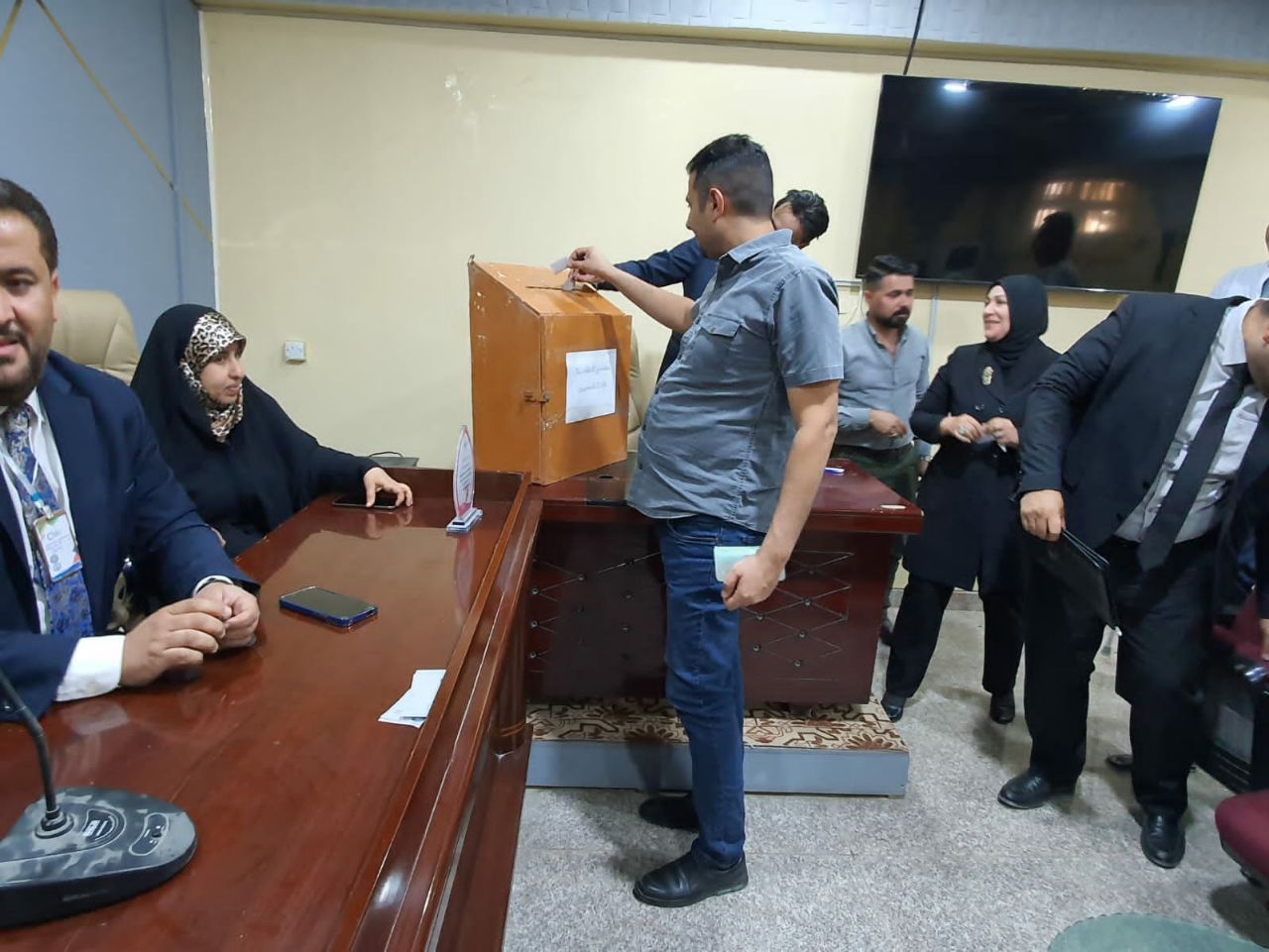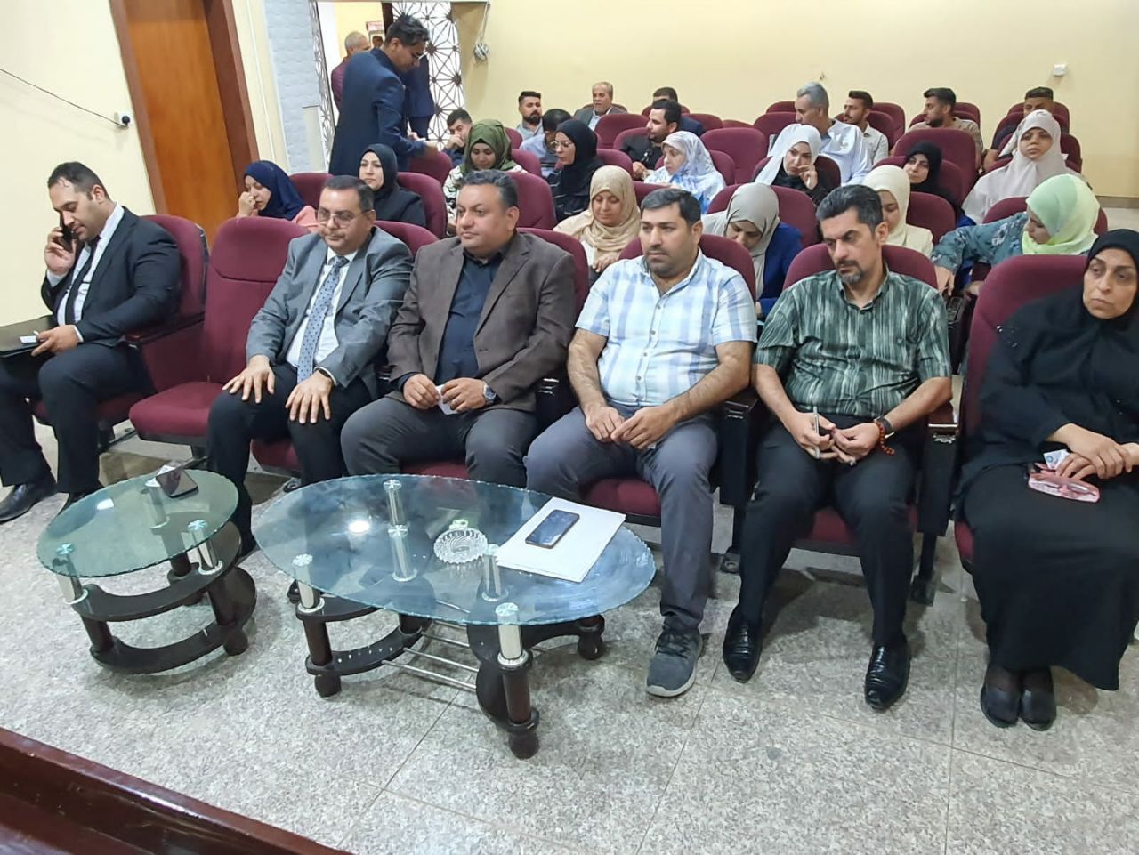 لقد ترأس الجلسة السيد نقيب الأكاديميين في الجامعة الأستاذ الدكتور ساجت الموسوي، والسيد معاون العميد للشؤون الإدارية والمالية الدكتور أحمد محسن مهدي، ومسؤول الوحدة القانونية في الكلية السيدة وفاء راهي مشكور، وكان السيد عميد الكلية والسيد معاون العميد للشؤون العلمية والسادة رؤوساء الأقسام في طليعة الحاضربن.