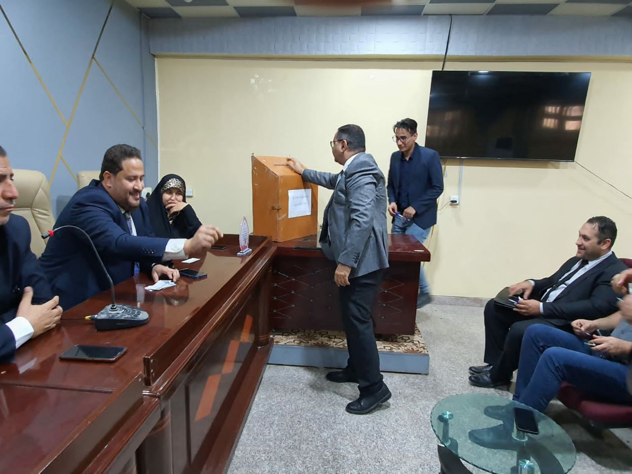 افتتح السيد النقيب الجلسة بالترحيب بالسادة أعضاء الهيئة التدريسية وشرح آلية الإنتخاب مع عرض نبذة مختصرة لقانون النقابة ودورها في حماية وحفظ حقوق الأستاذ الجامعي في المؤسسة التعليمية، وتمّ اختيار أحد أعضاء الهيئة التدريسية في الكلية ليكون ممثلاً عن الكلية في النقابة بعد إجراء الانتخاب بشفافية عالية في أجواء ديمقراطية أسفرت عن فوز المدرس المساعد حيدر حسين جواد ليكون ممثلا عن الكلية في نقابة الأكاديميين.