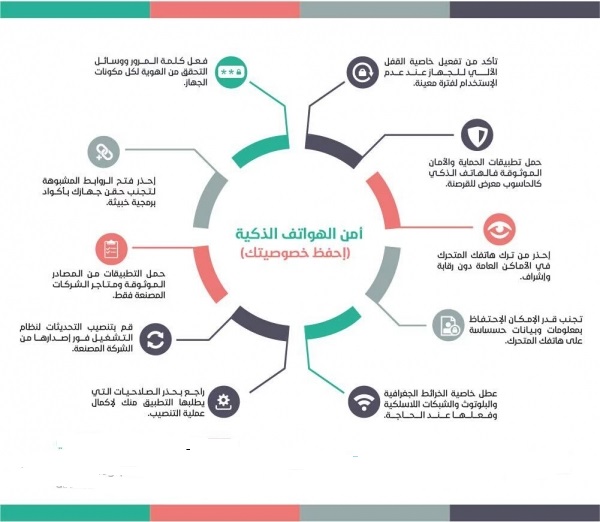 نصائح امن الهواتف الذكية (احفظ خصوصيتك ) نوضحها لك في الصورة ادناه