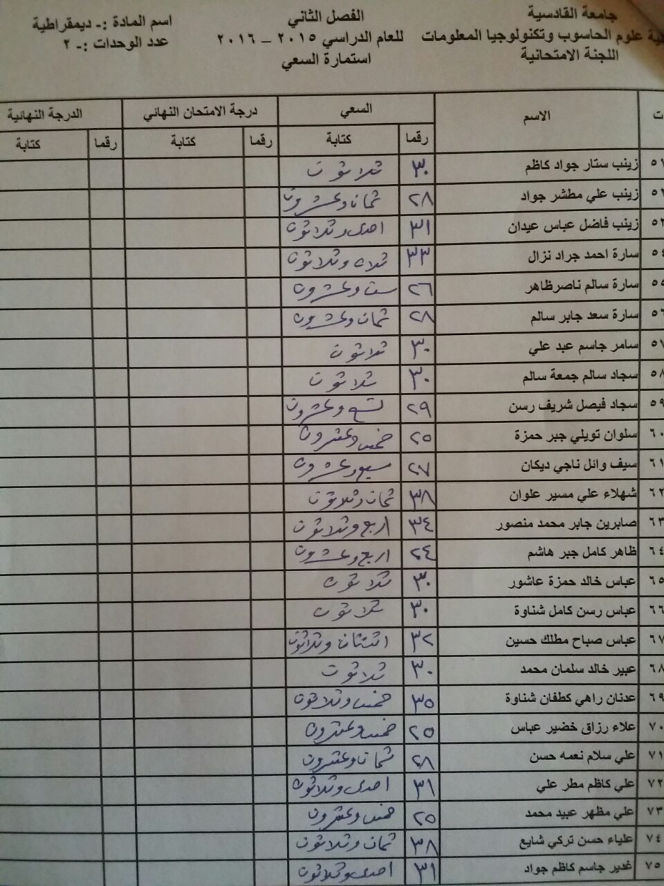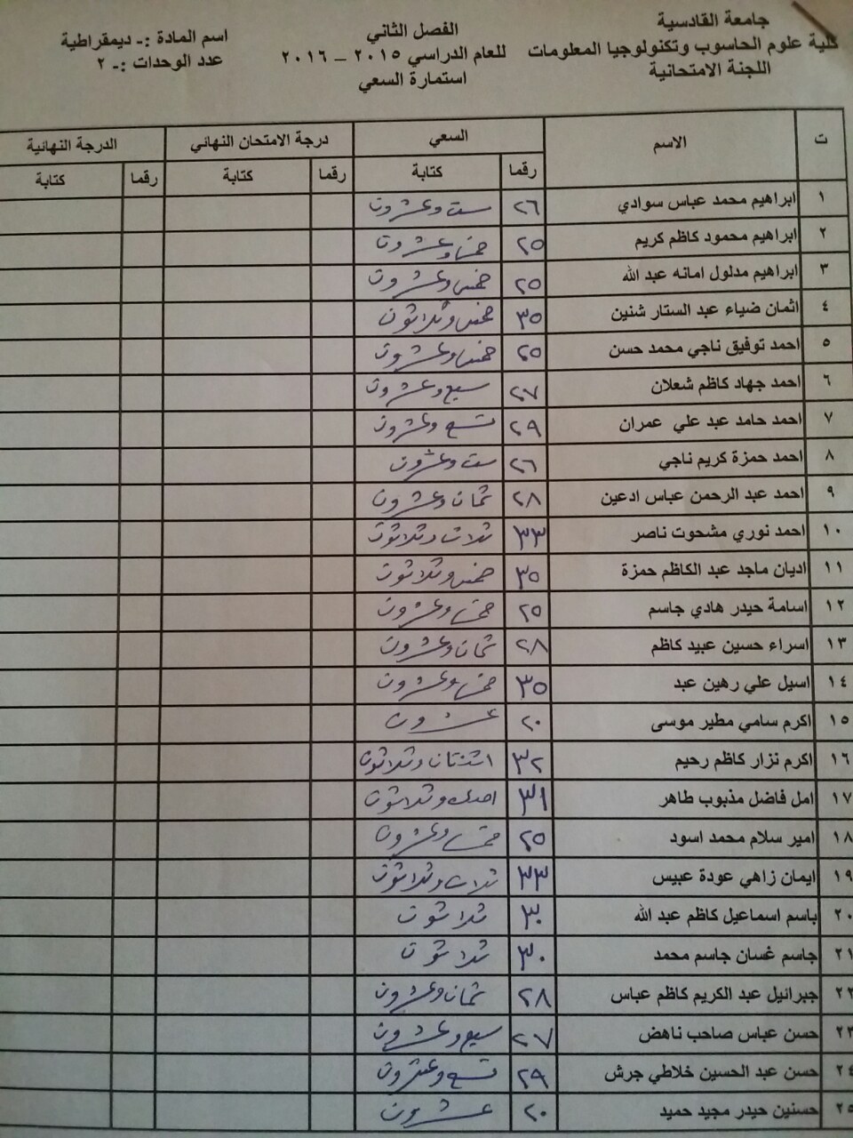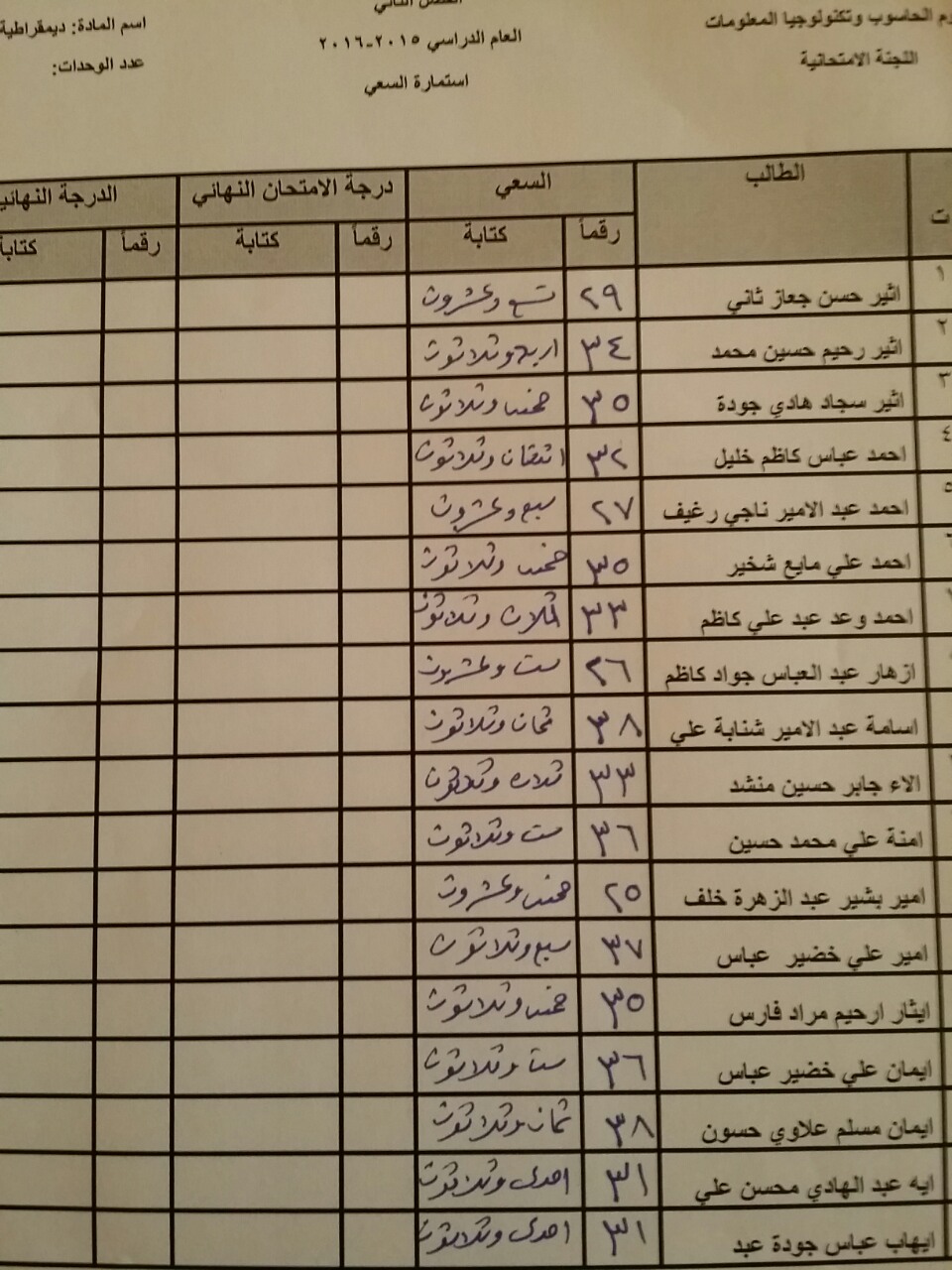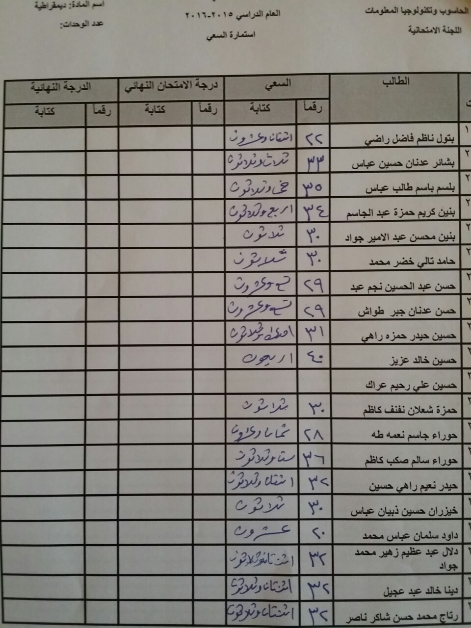 سعي مادة الديمقراطية لطلبة قسم الحاسوب والوسائط المتعددة