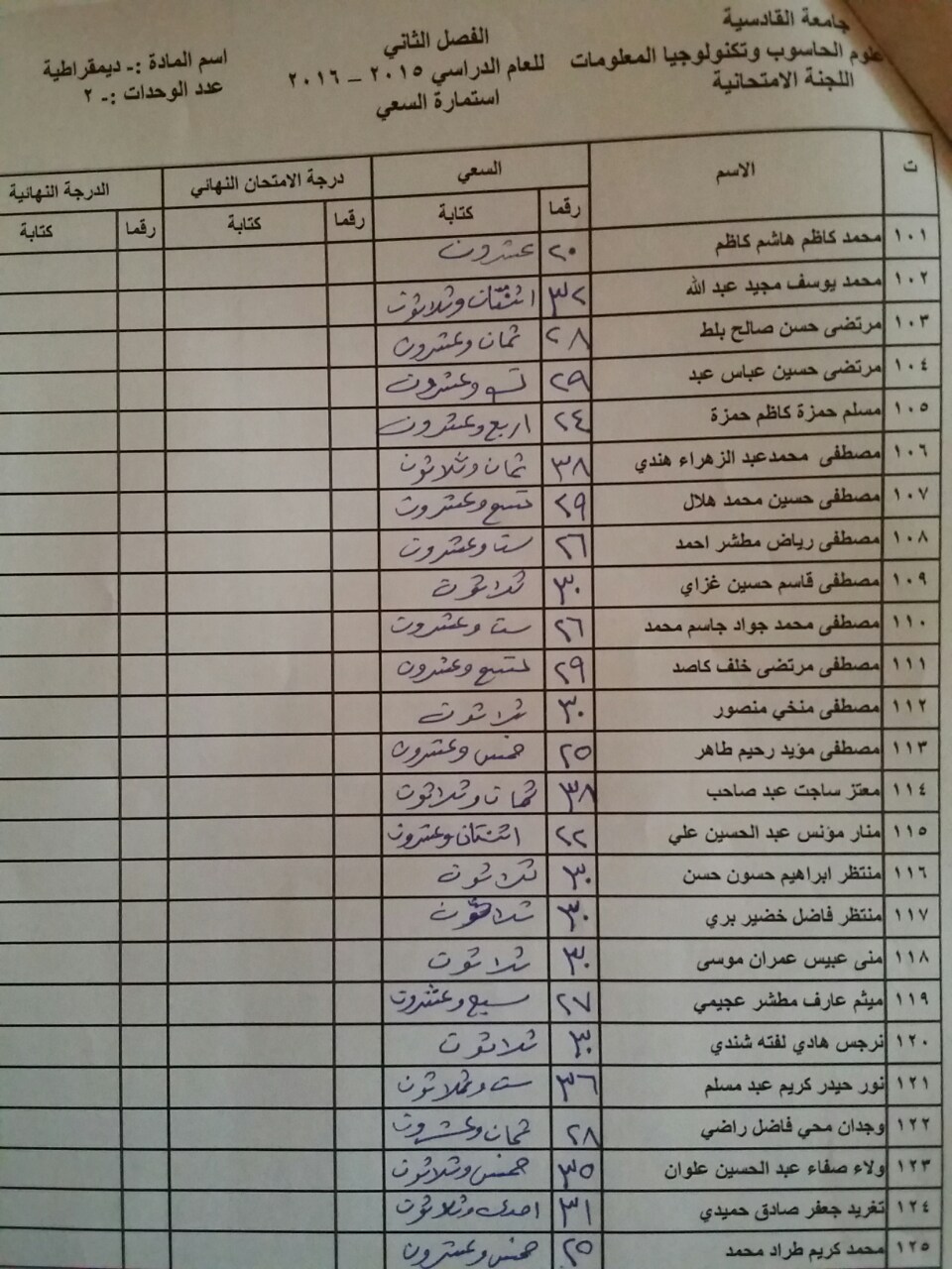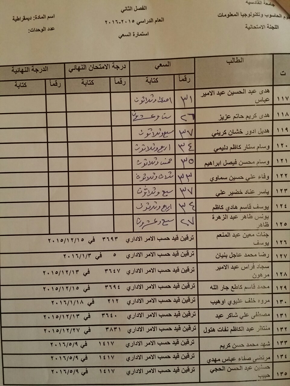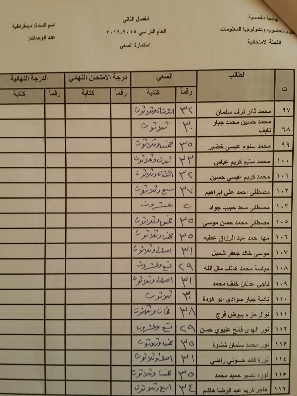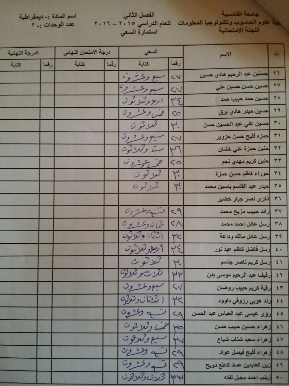 سعي مادة الديمقراطية لطلبة قسم الحاسوب والوسائط المتعددة