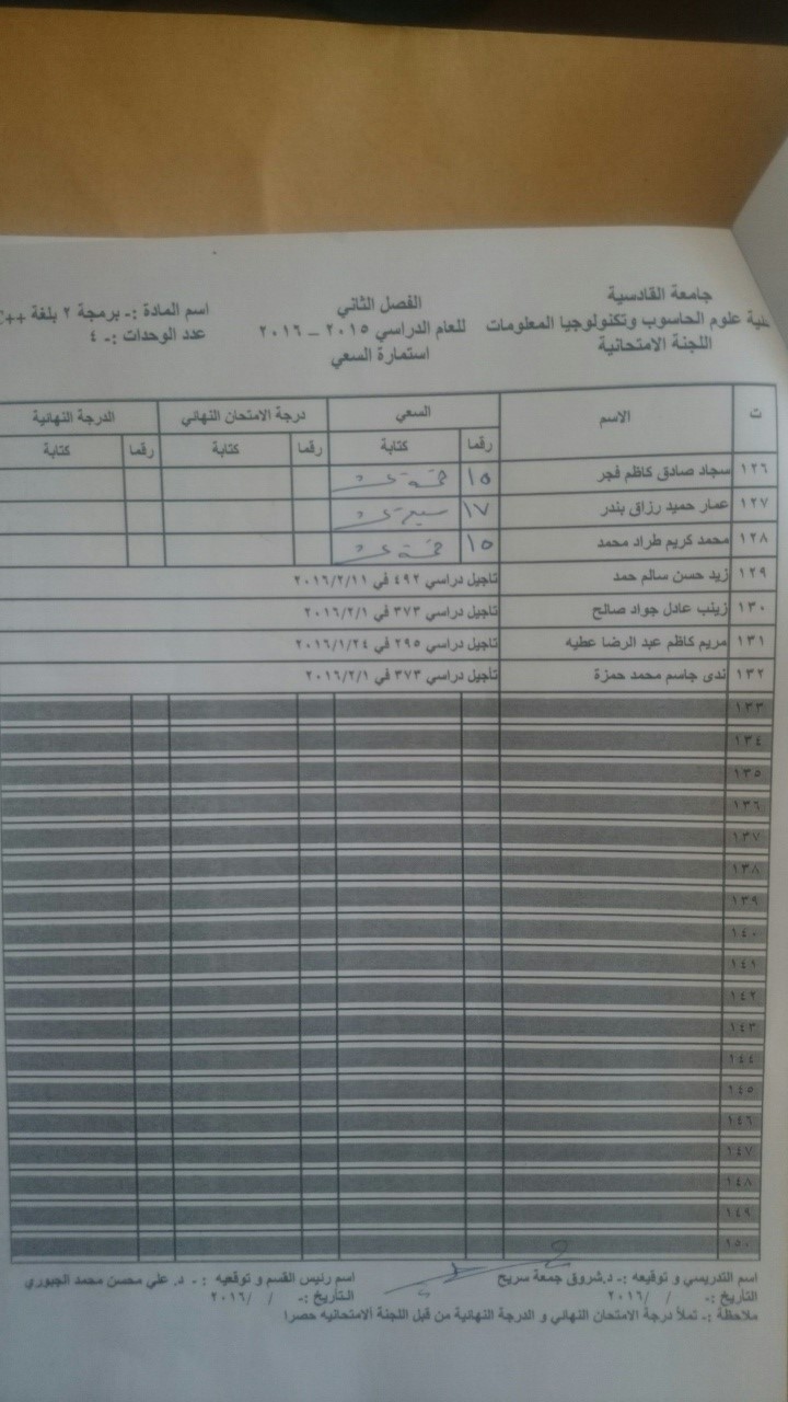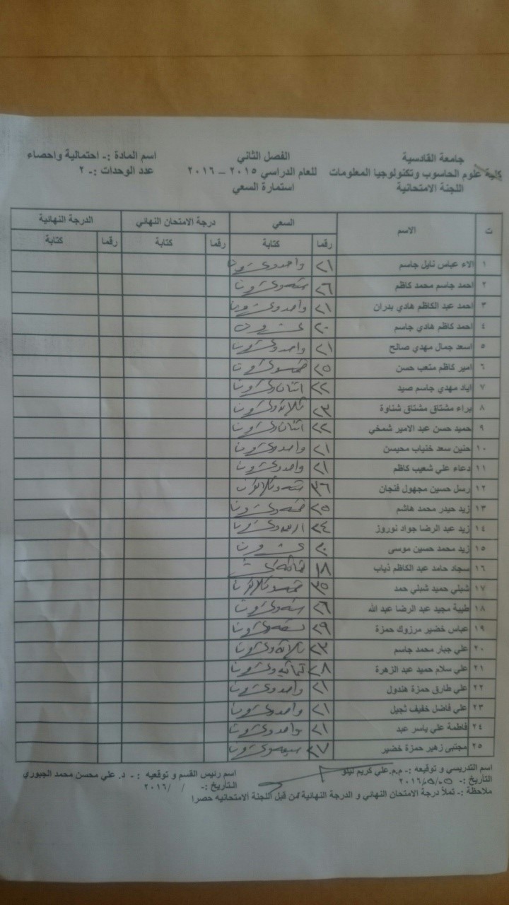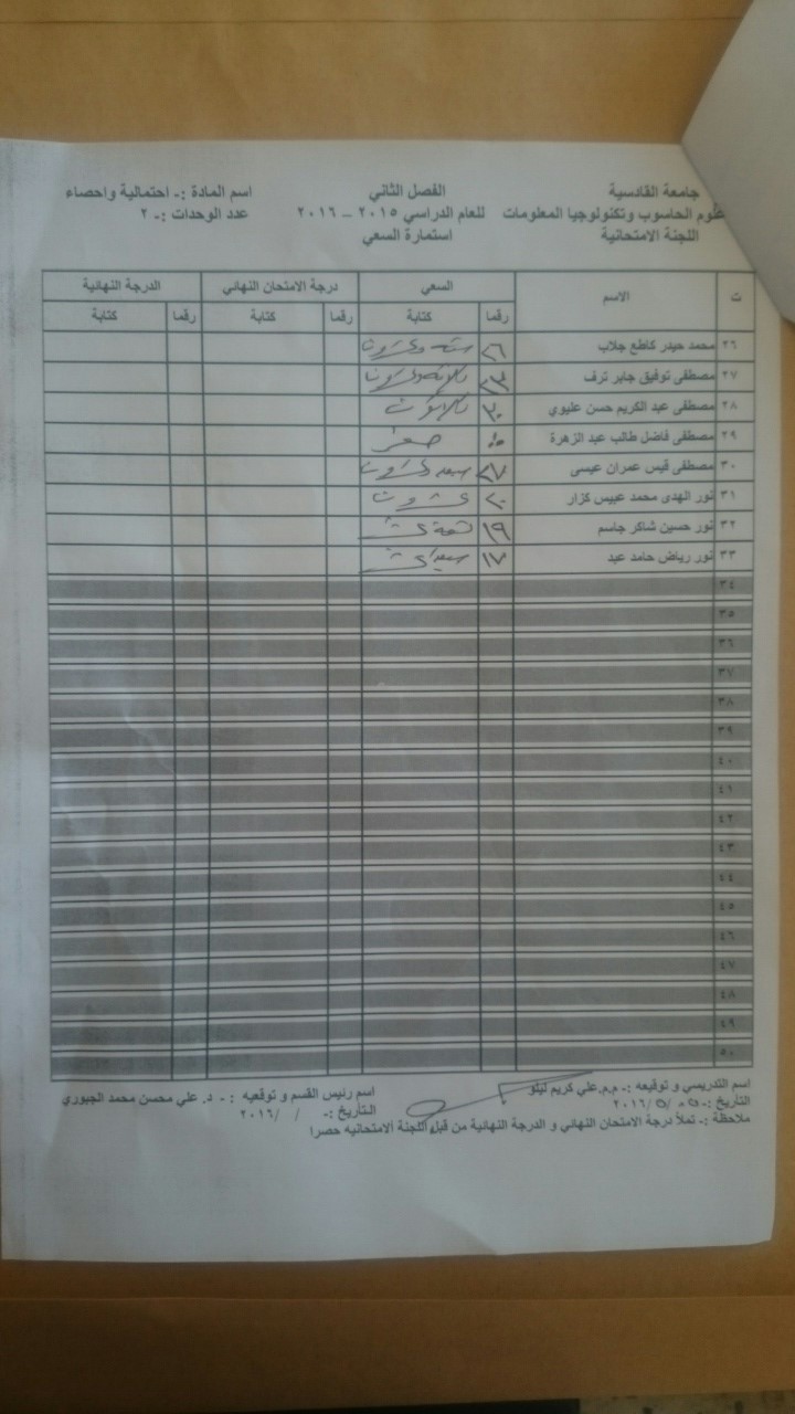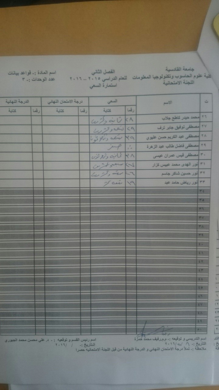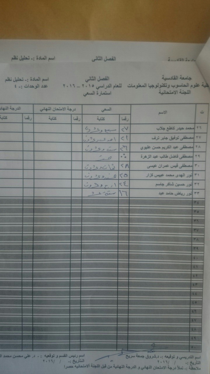 ملاحظة //1- في حالة وجود اي اعتراض في السعي السنوي مراجعة رئاسة القسم وبالسرعة الممكنة