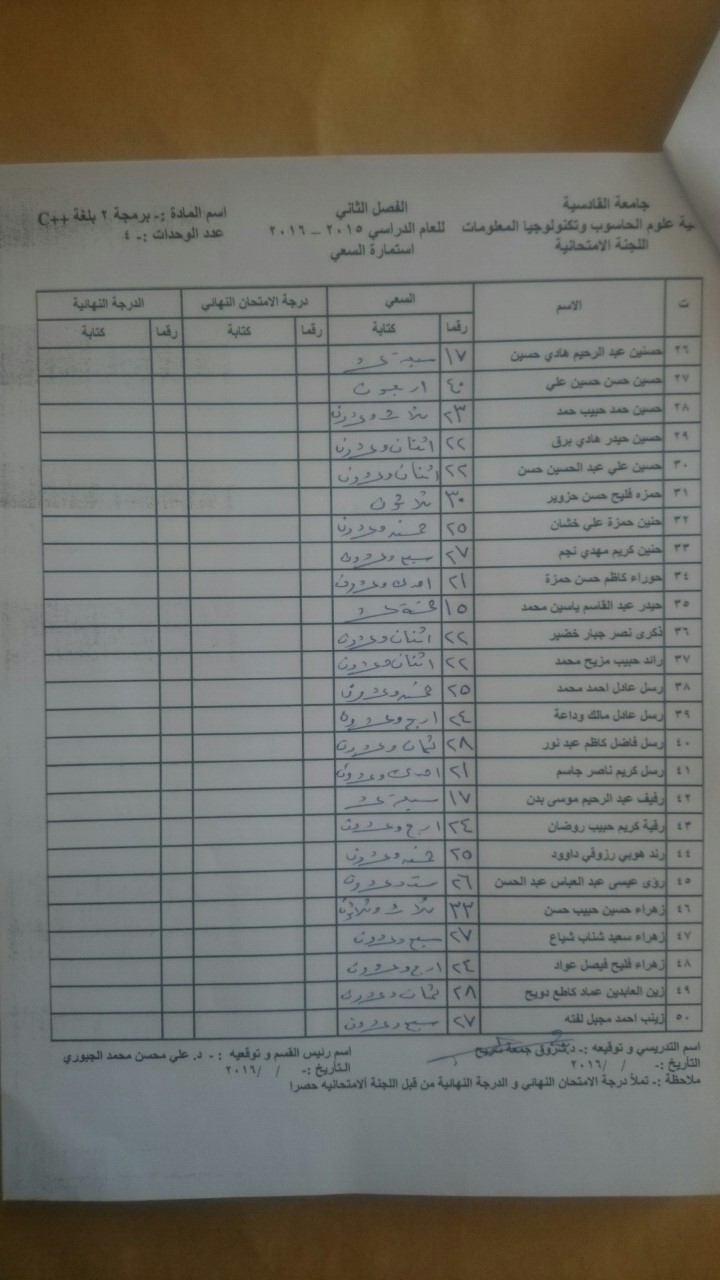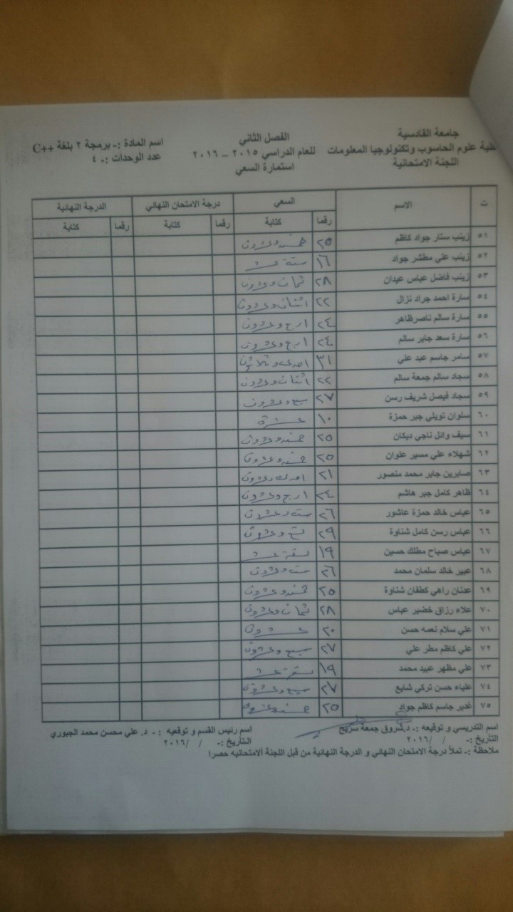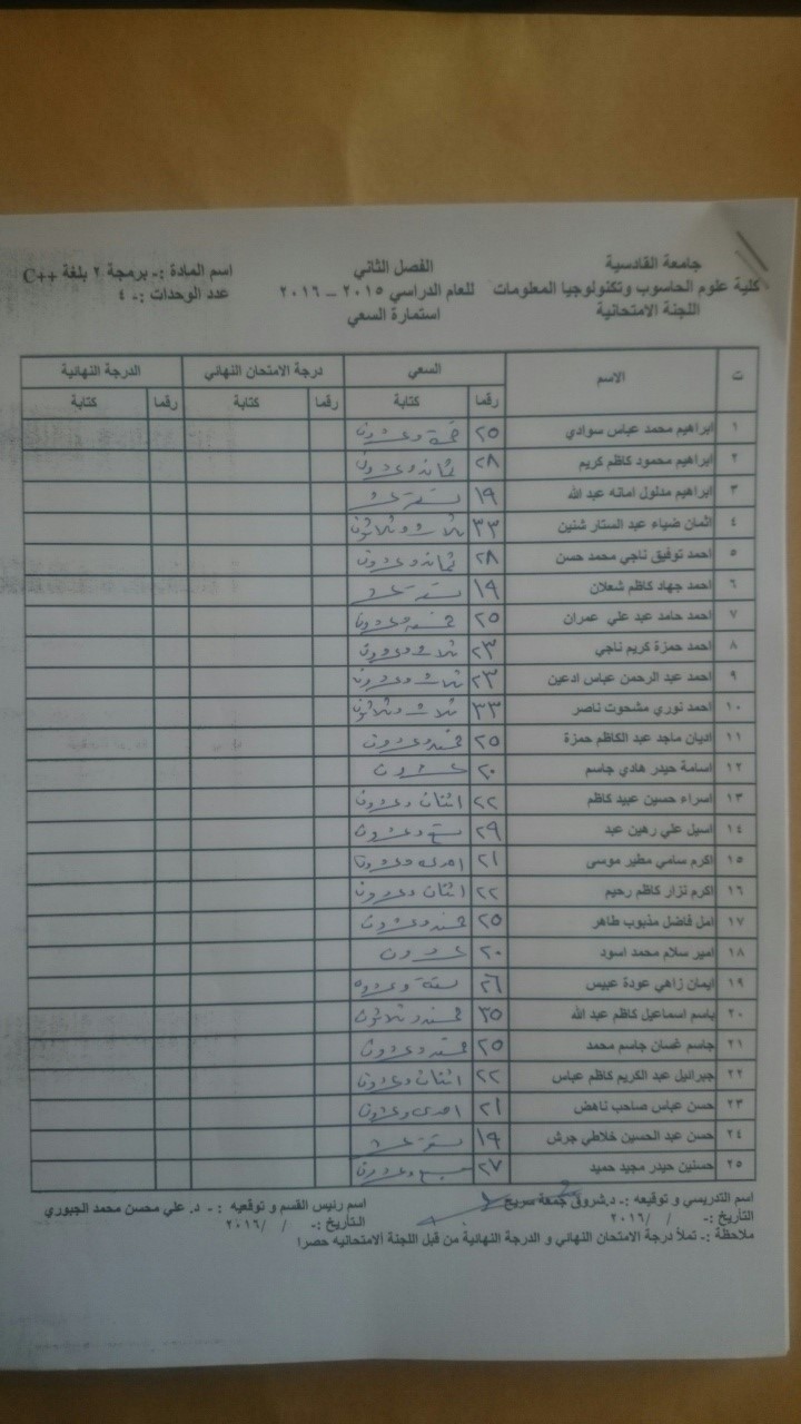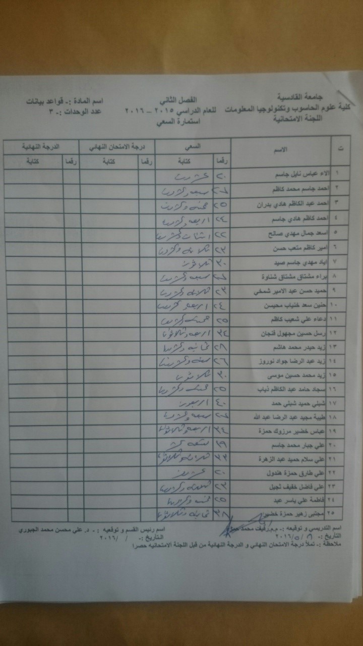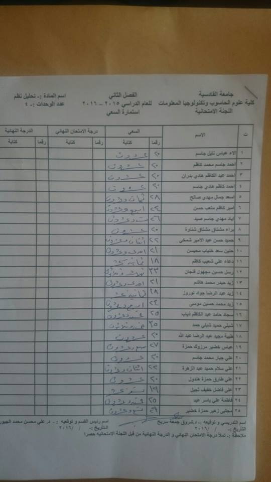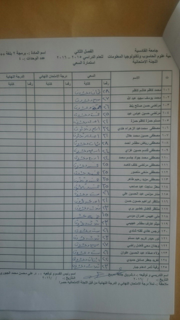 ملاحظة //1- في حالة وجود اي اعتراض في السعي السنوي مراجعة رئاسة القسم وبالسرعة الممكنة