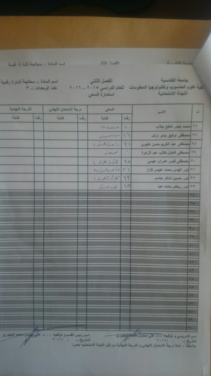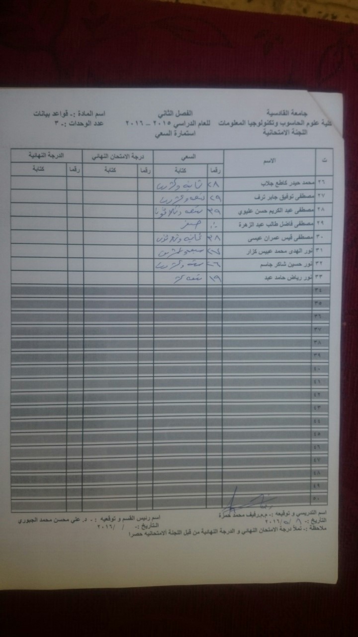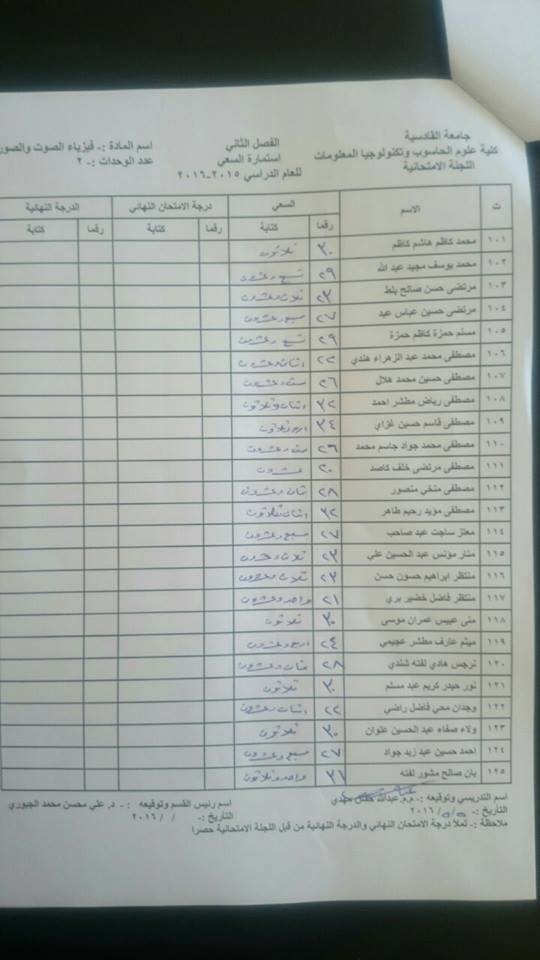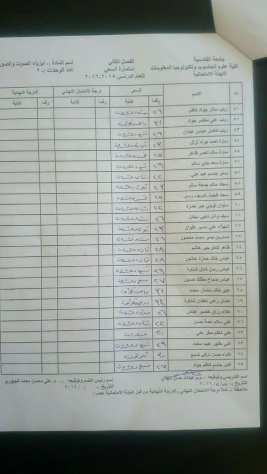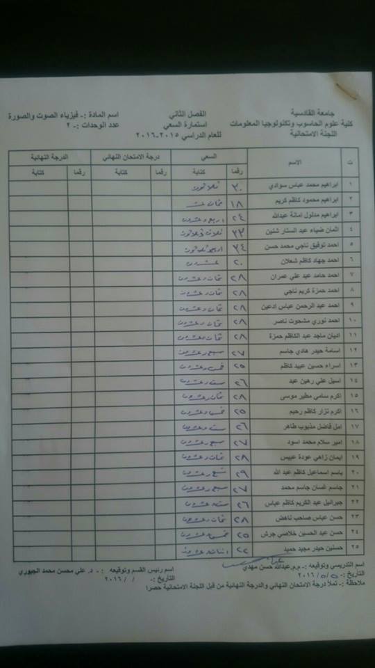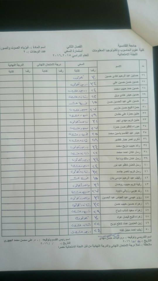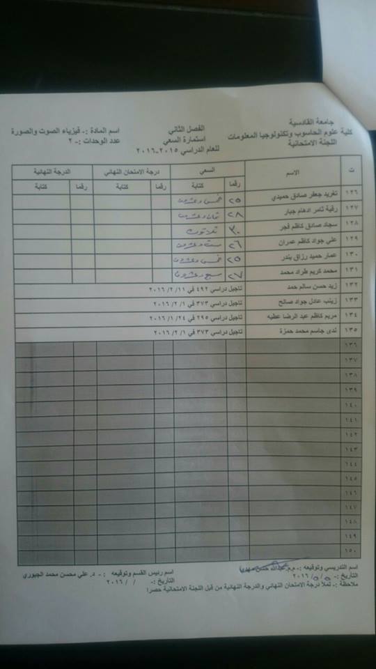 ملاحظة //1- في حالة وجود اي اعتراض في السعي السنوي مراجعة رئاسة القسم وبالسرعة الممكنة