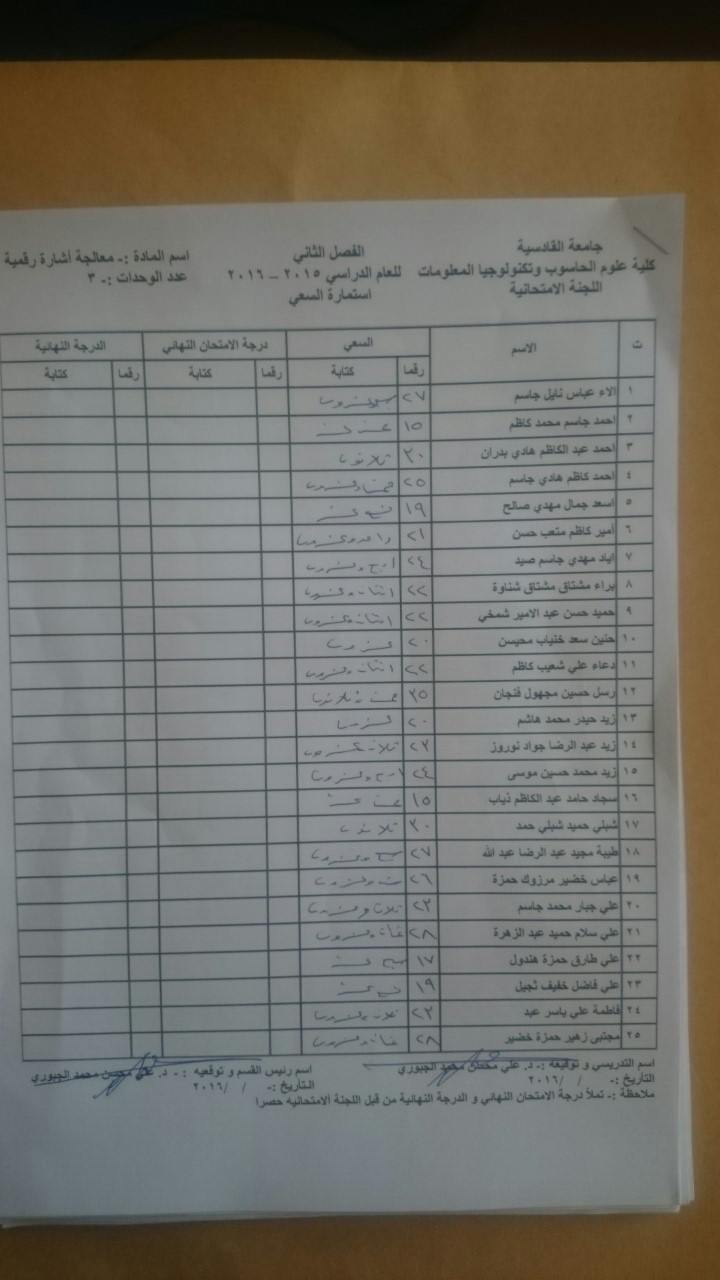 ندرج لكم ادناه سعي جزء من مواد المستوى الاول والثاني لقسم الوسائط المتعددة