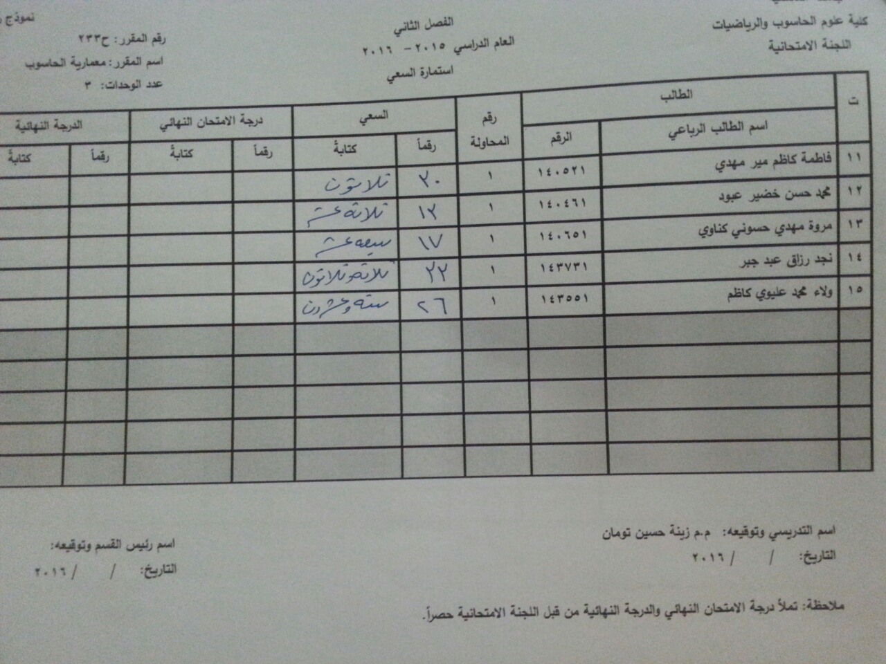 ملاحظة //1- في حالة وجود اي اعتراض في السعي السنوي مراجعة رئاسة القسم وبالسرعة الممكنة
