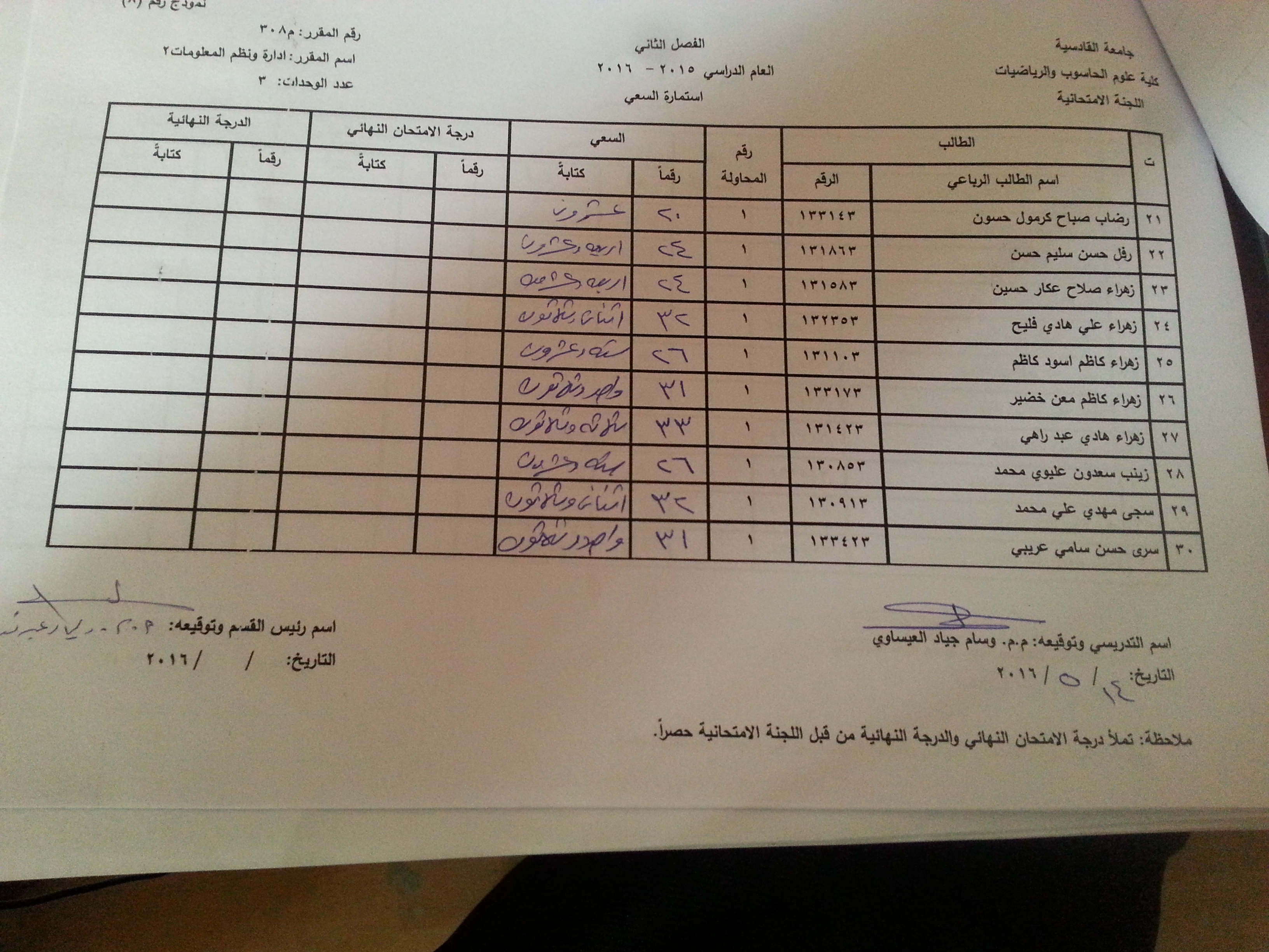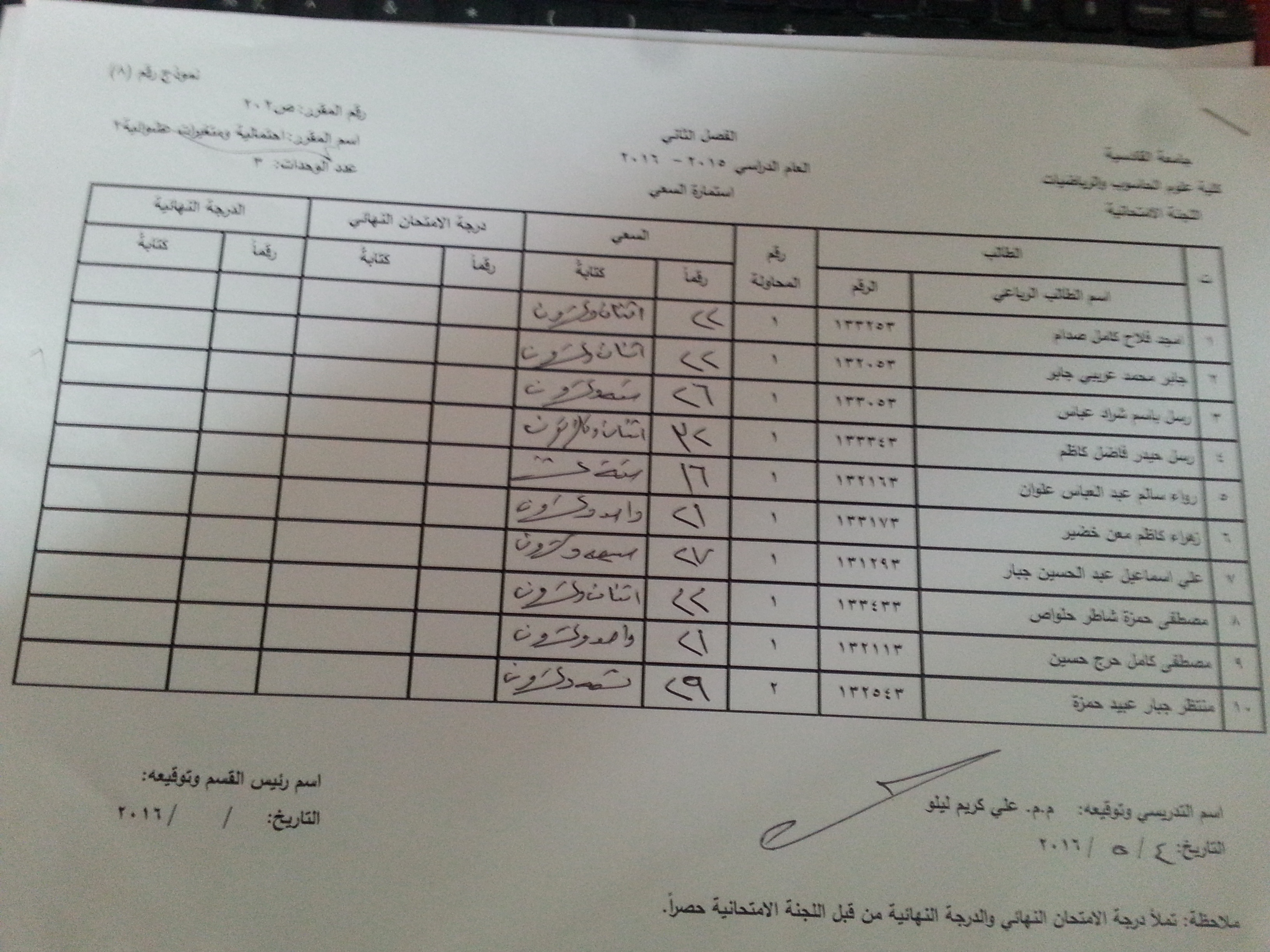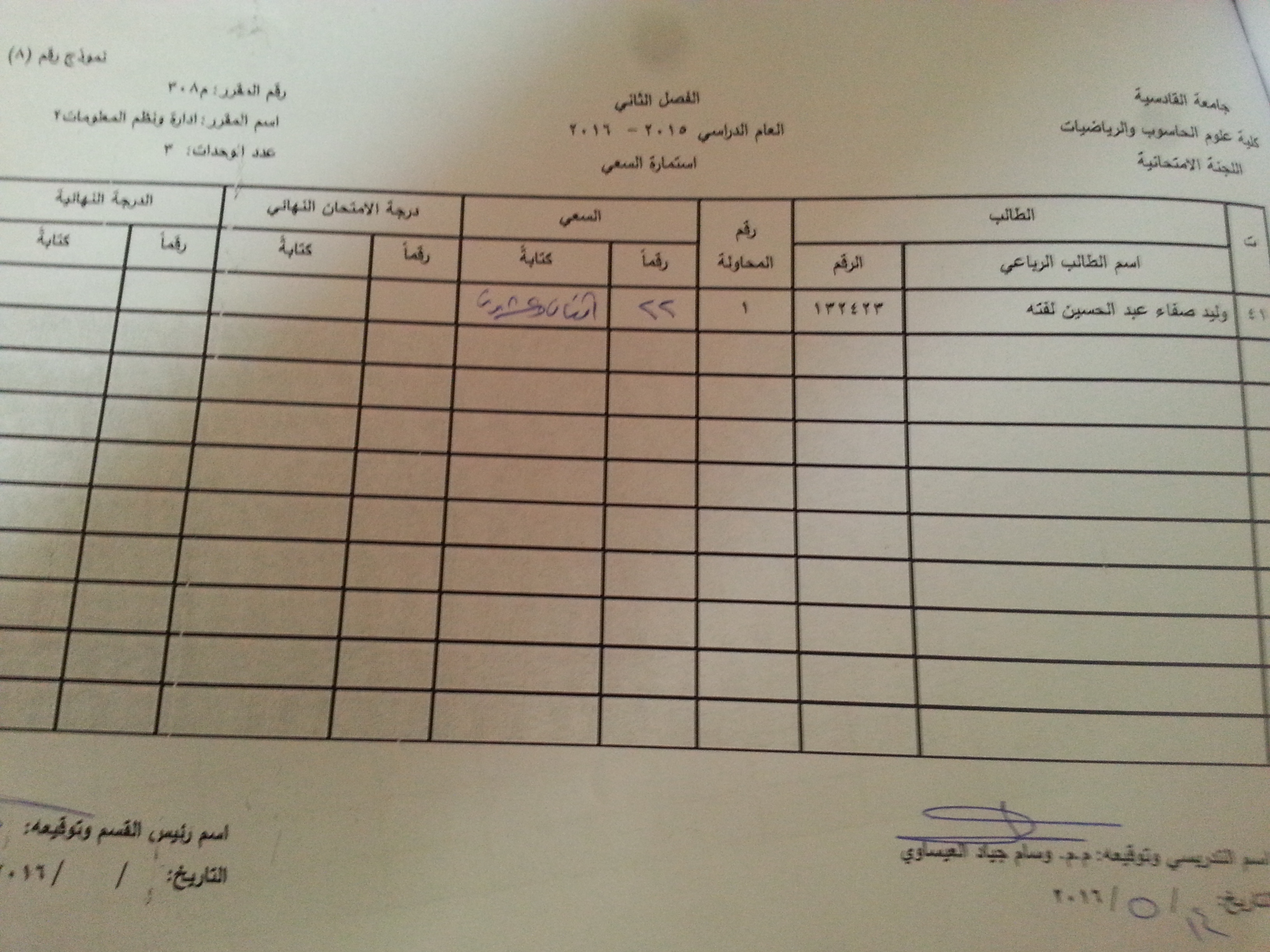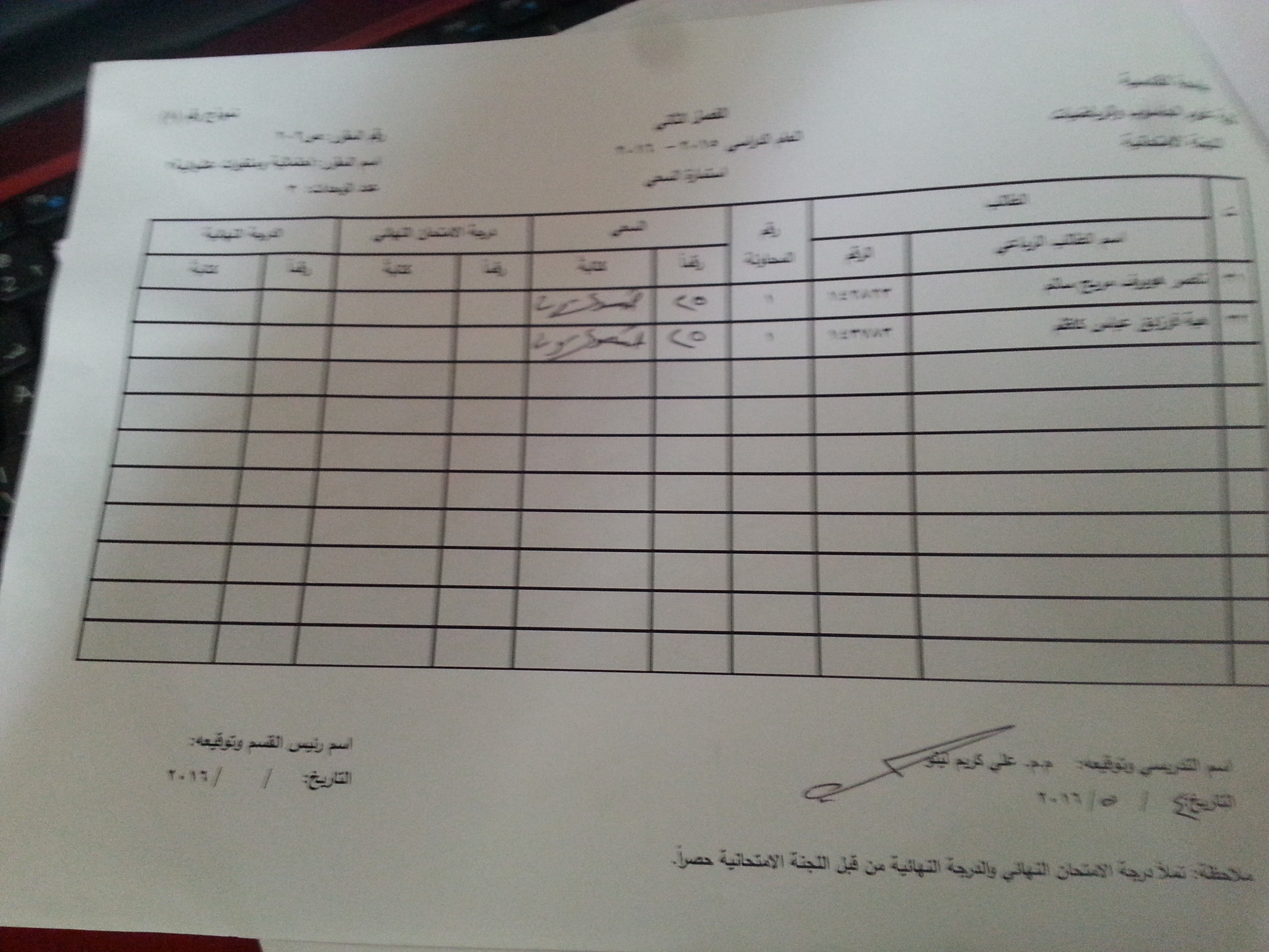 ملاحظة //1- في حالة وجود اي اعتراض في السعي السنوي مراجعة رئاسة القسم وبالسرعة الممكنة
