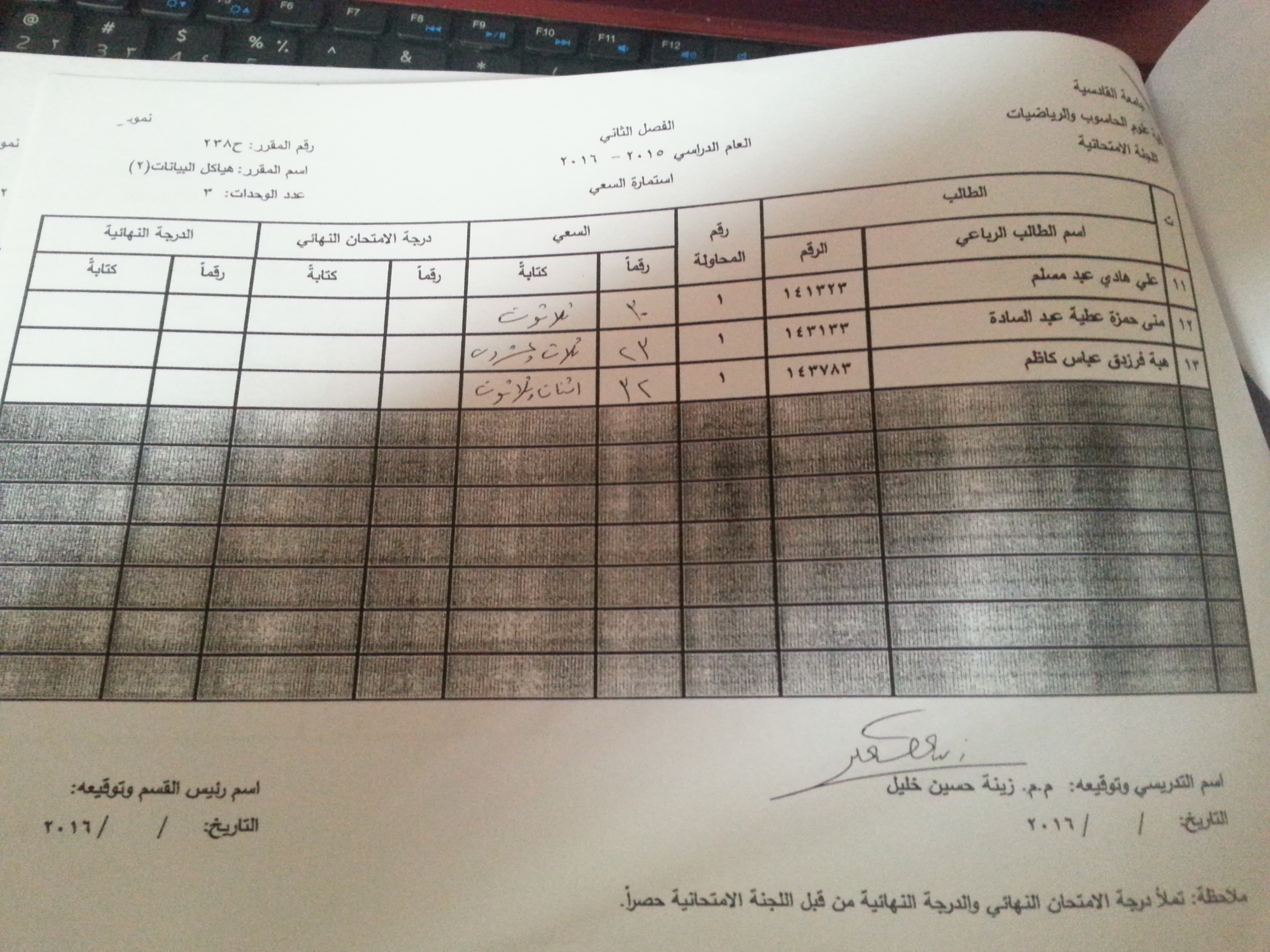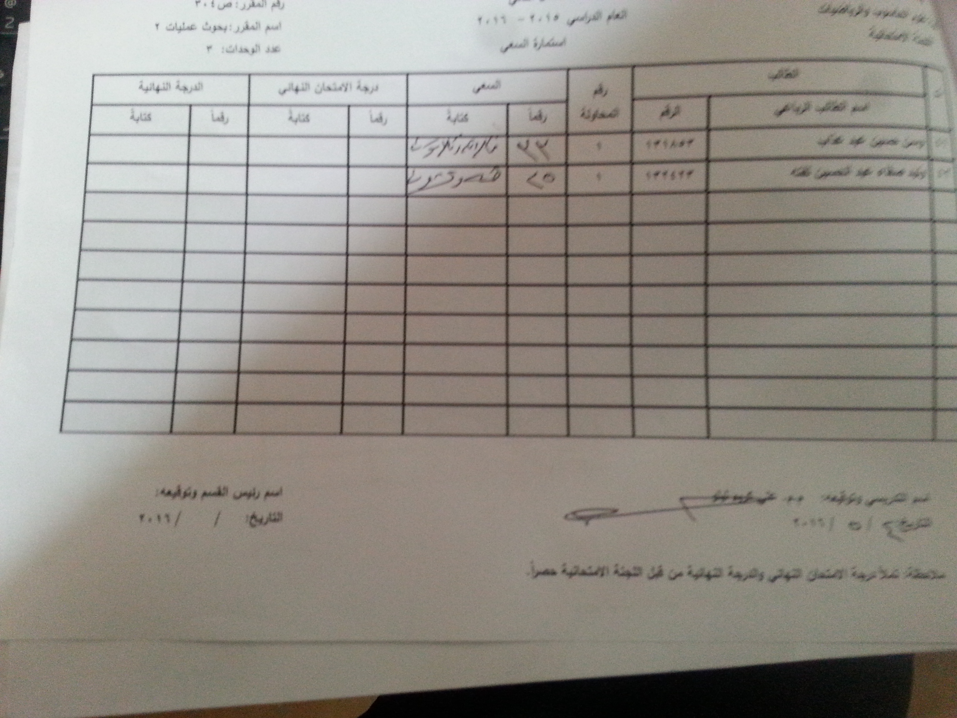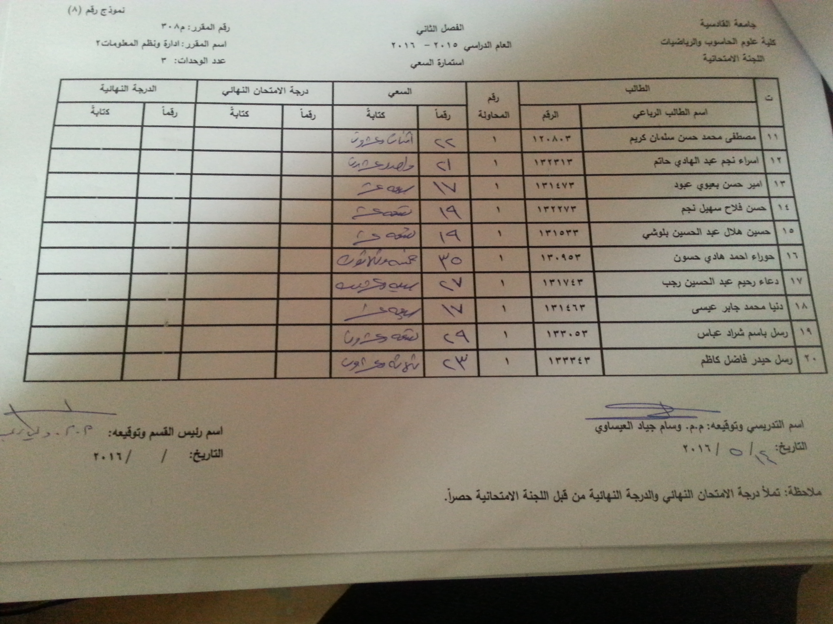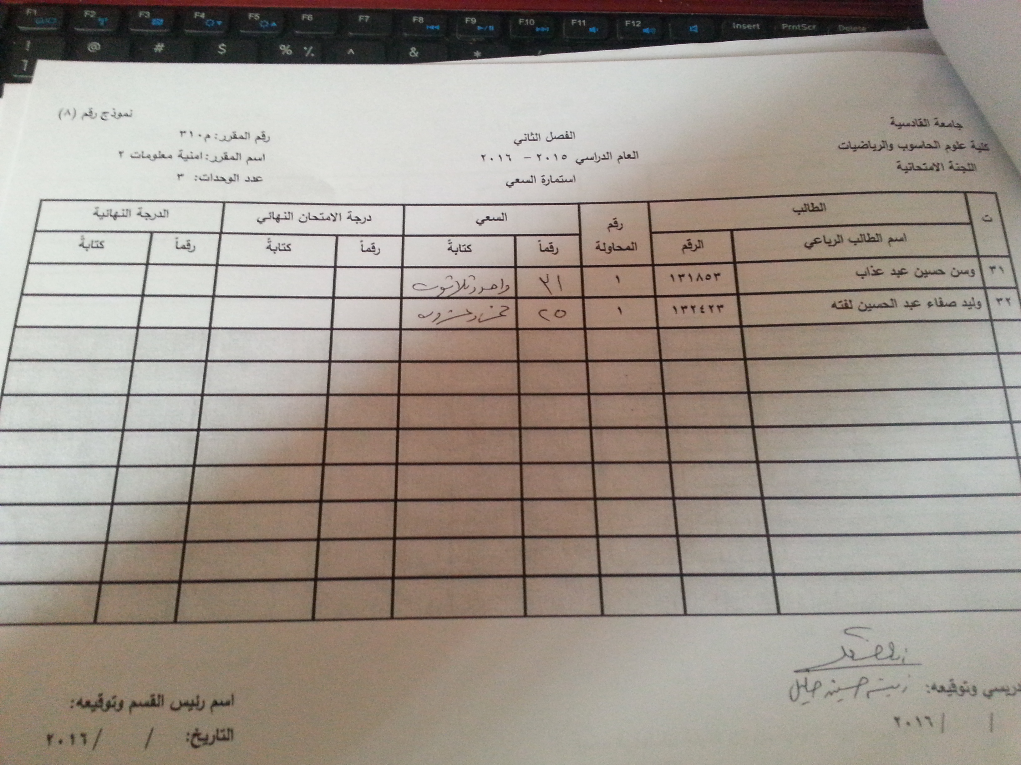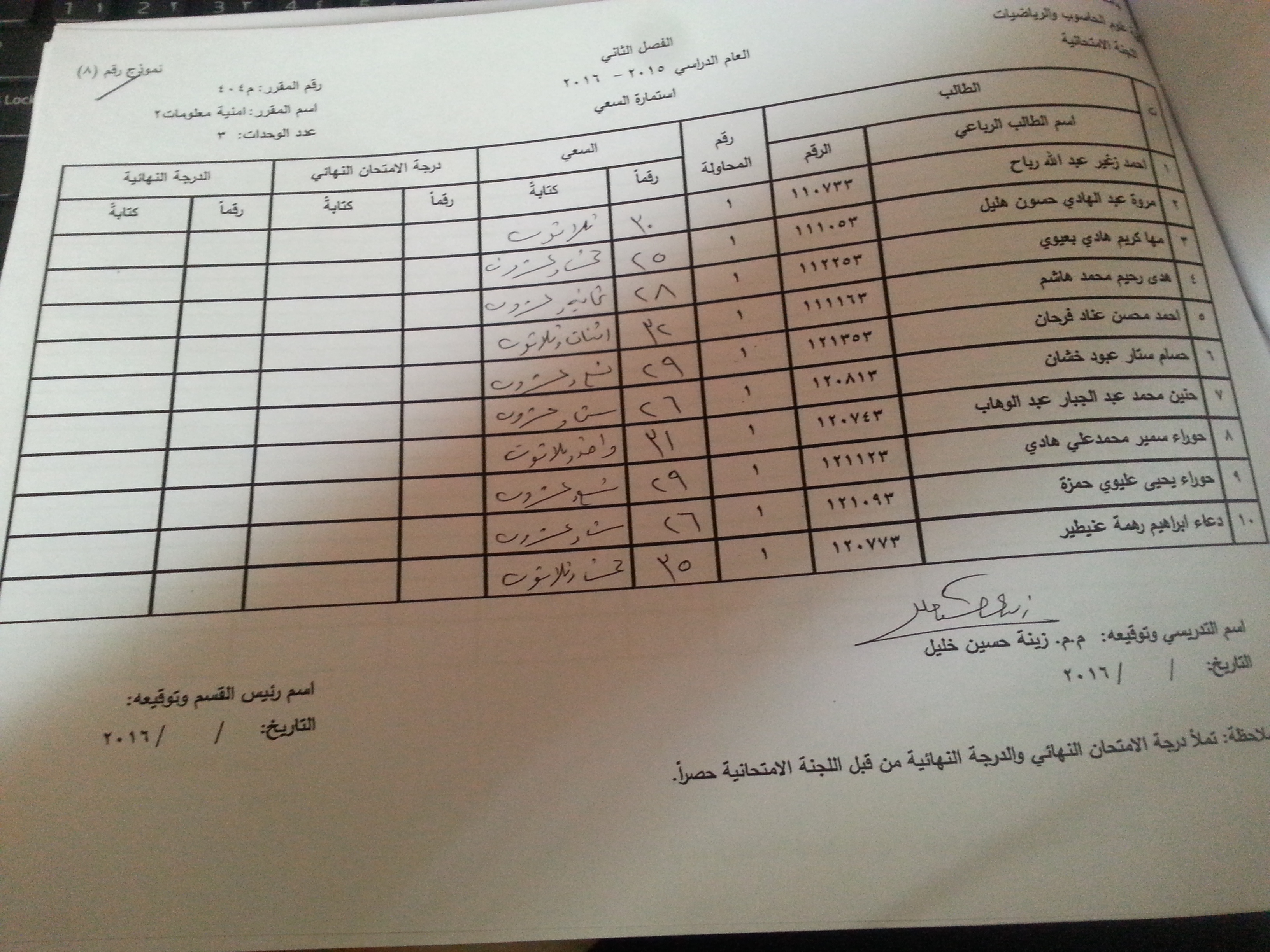 ملاحظة //1- في حالة وجود اي اعتراض في السعي السنوي مراجعة رئاسة القسم وبالسرعة الممكنة