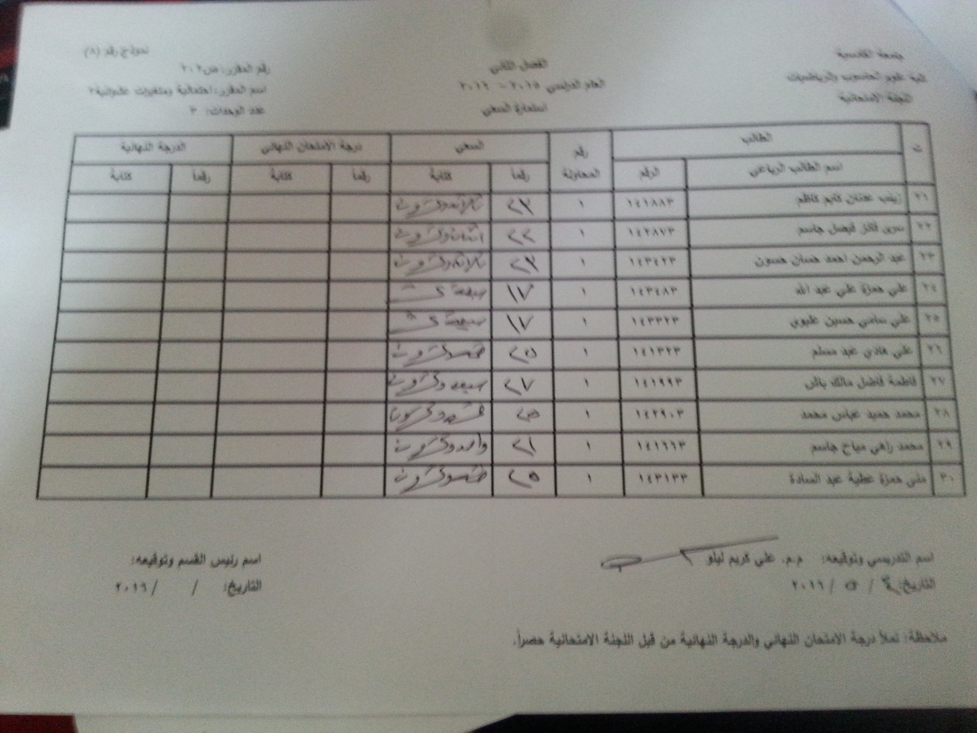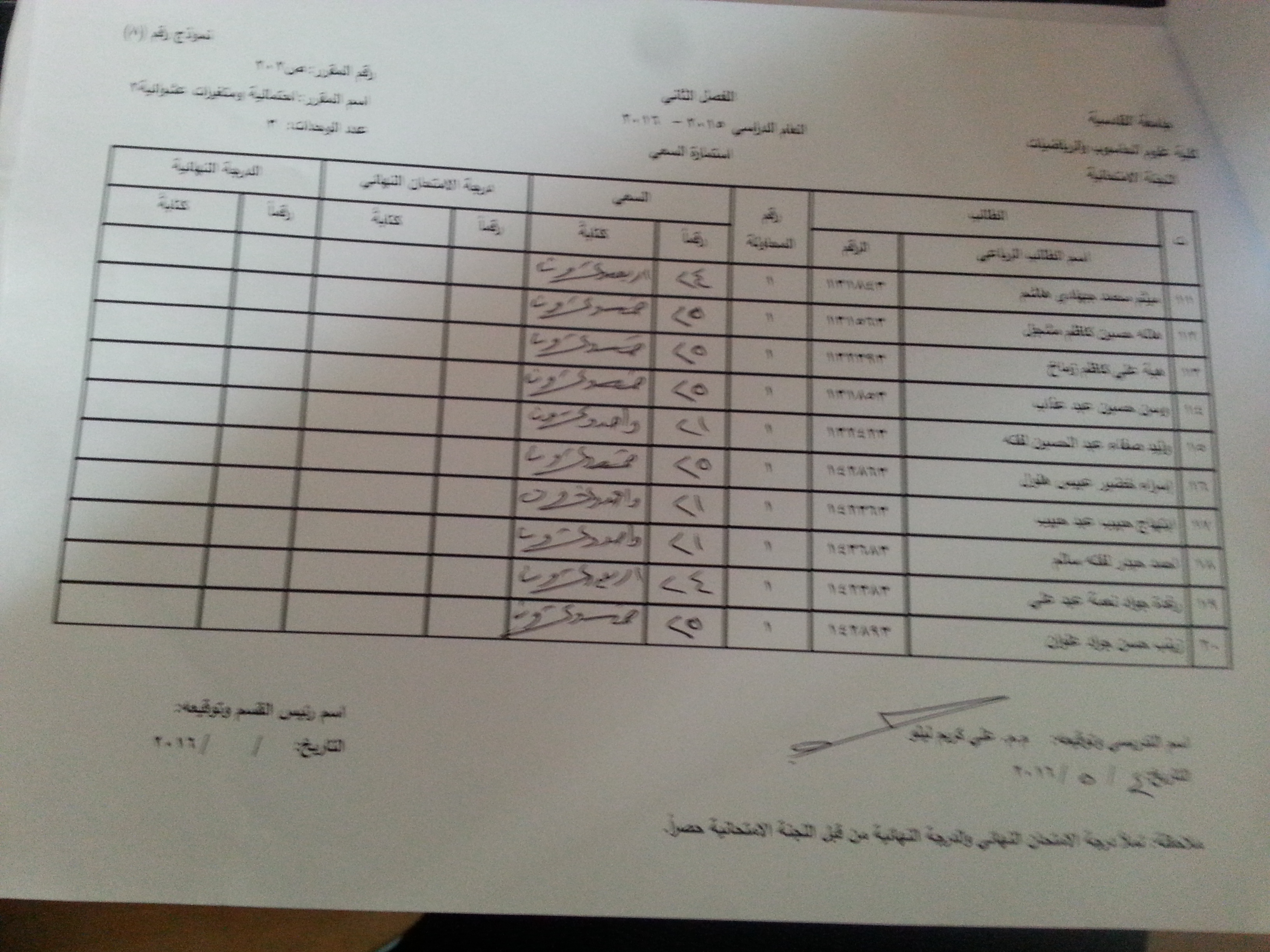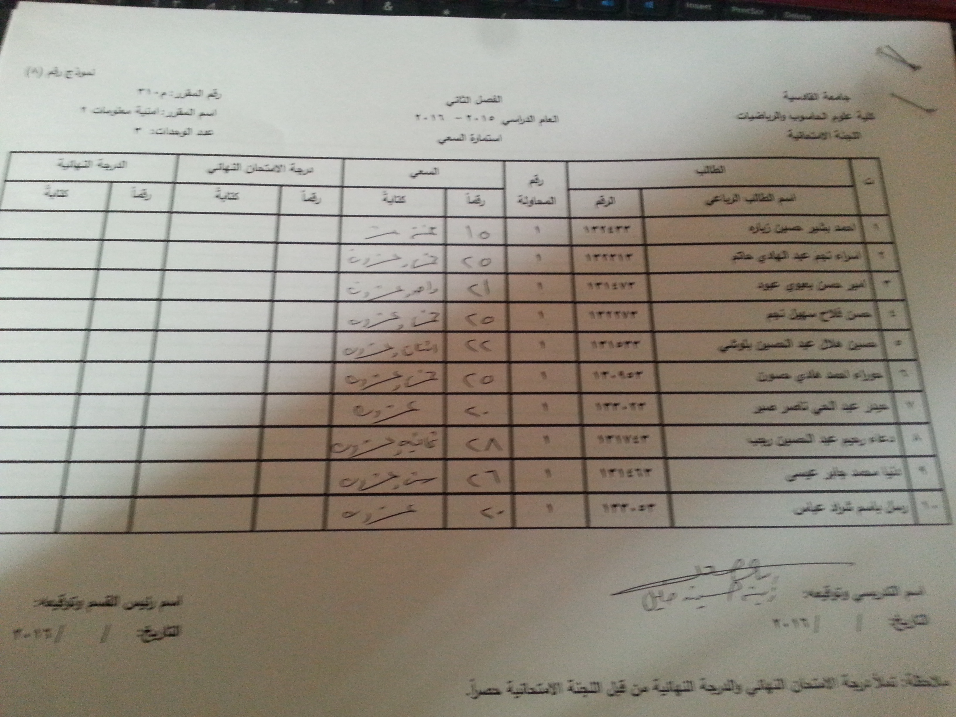 2- سيتم نشر سعي المواد المتبقية خلال الساعات القادمة من خلال موقع الكلية حصرا
