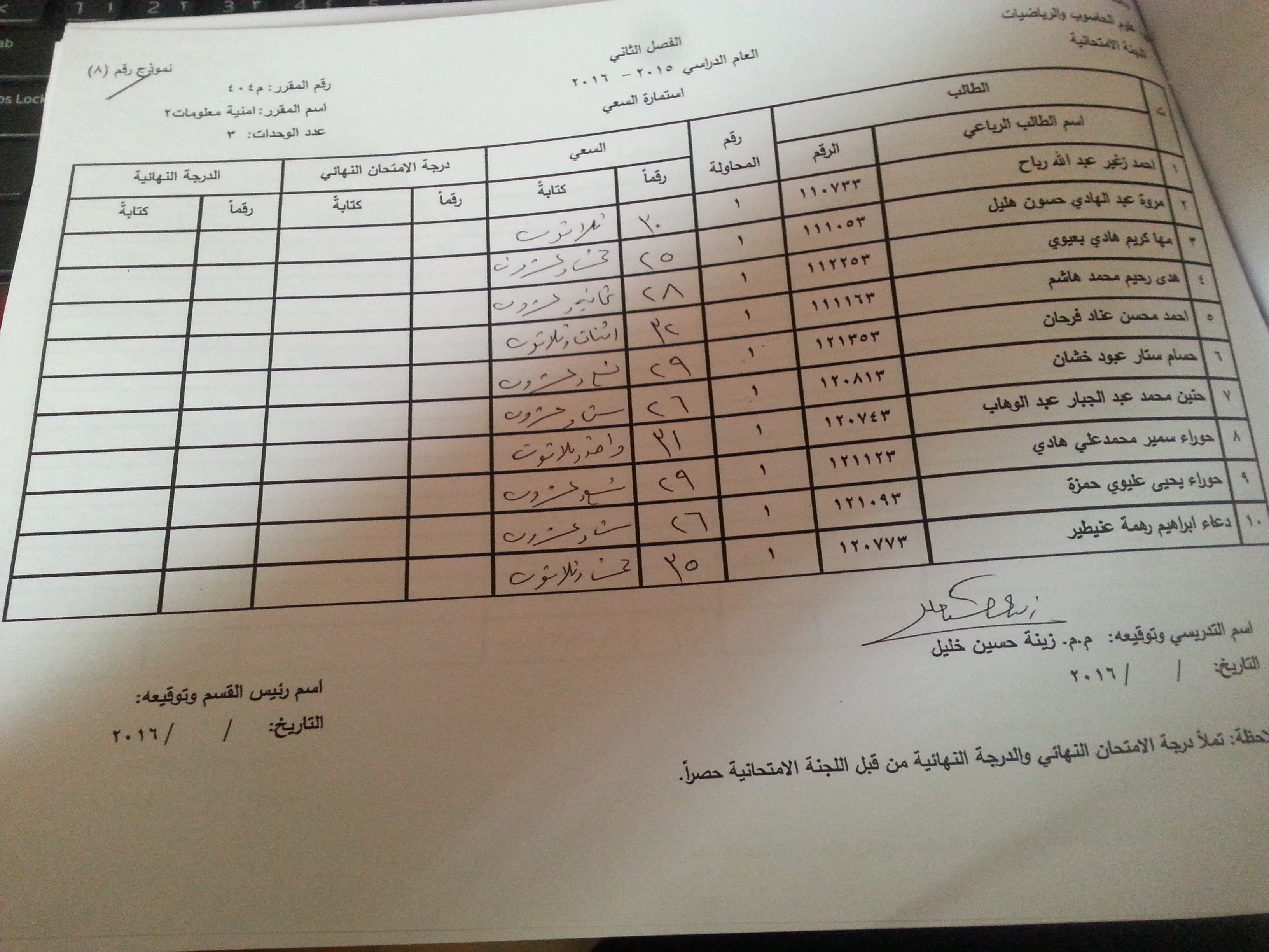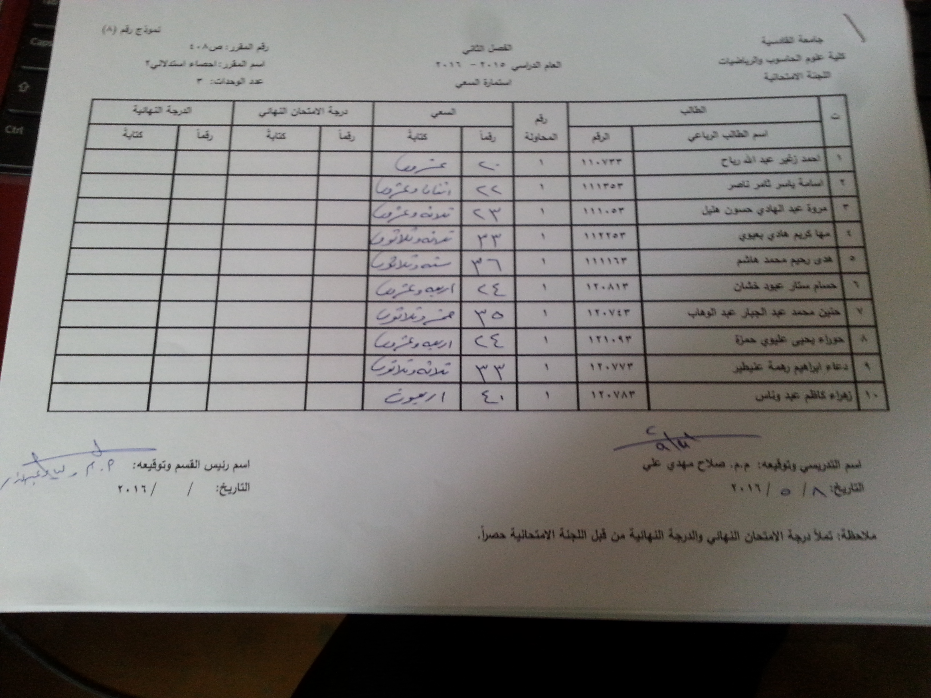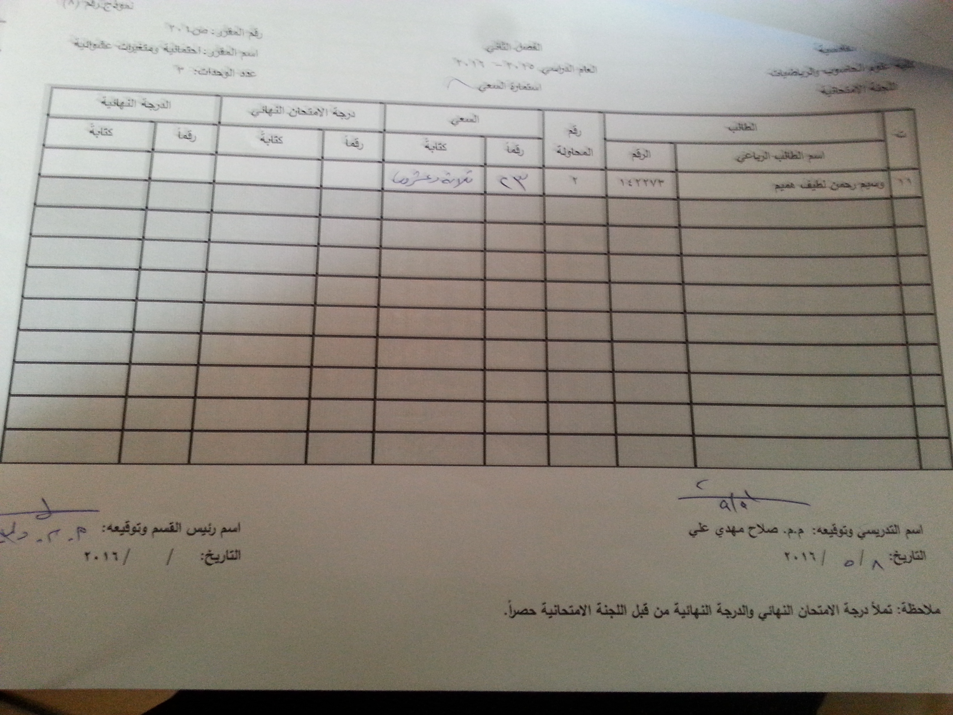 ملاحظة //1- في حالة وجود اي اعتراض في السعي السنوي مراجعة رئاسة القسم وبالسرعة الممكنة