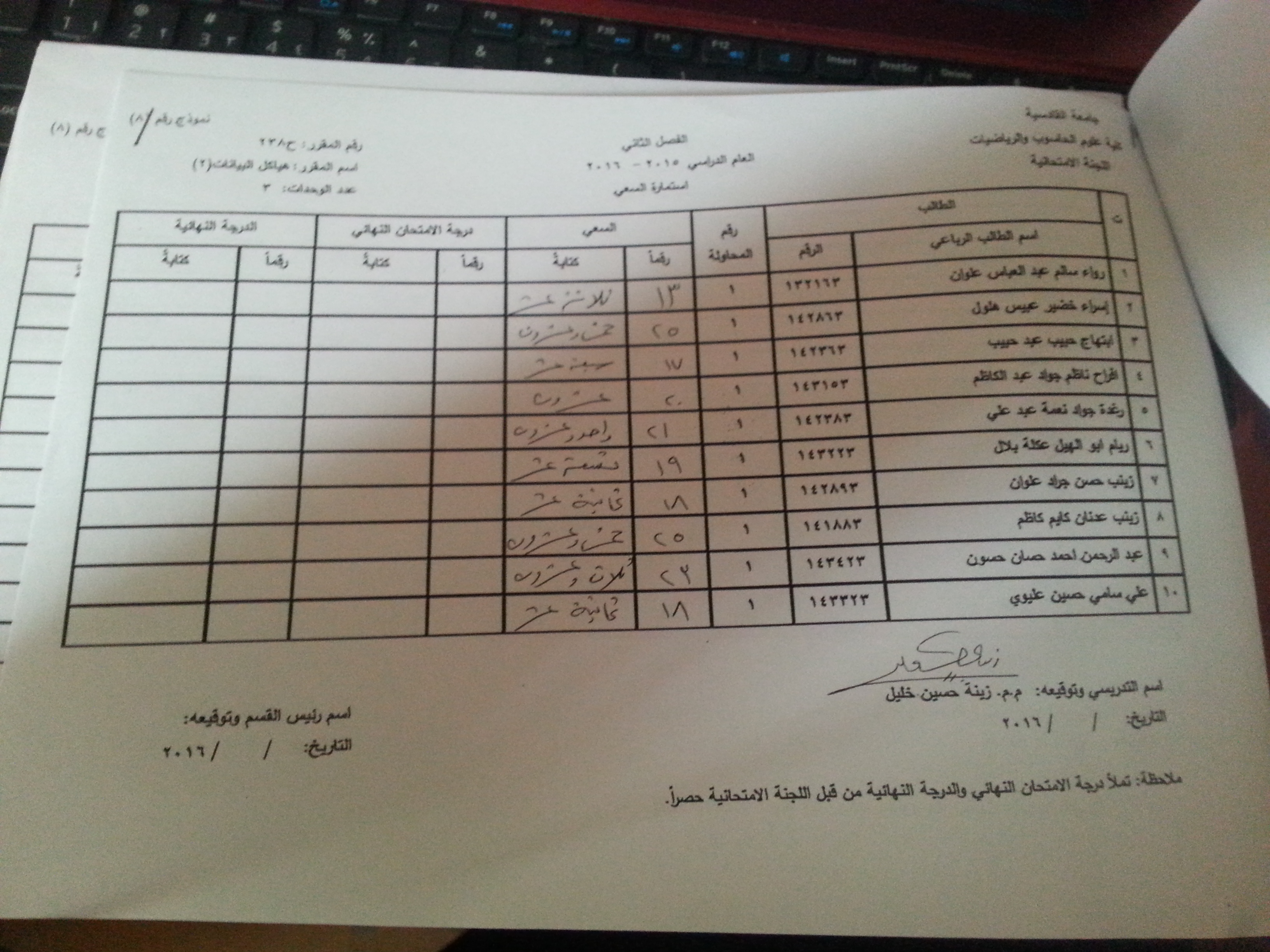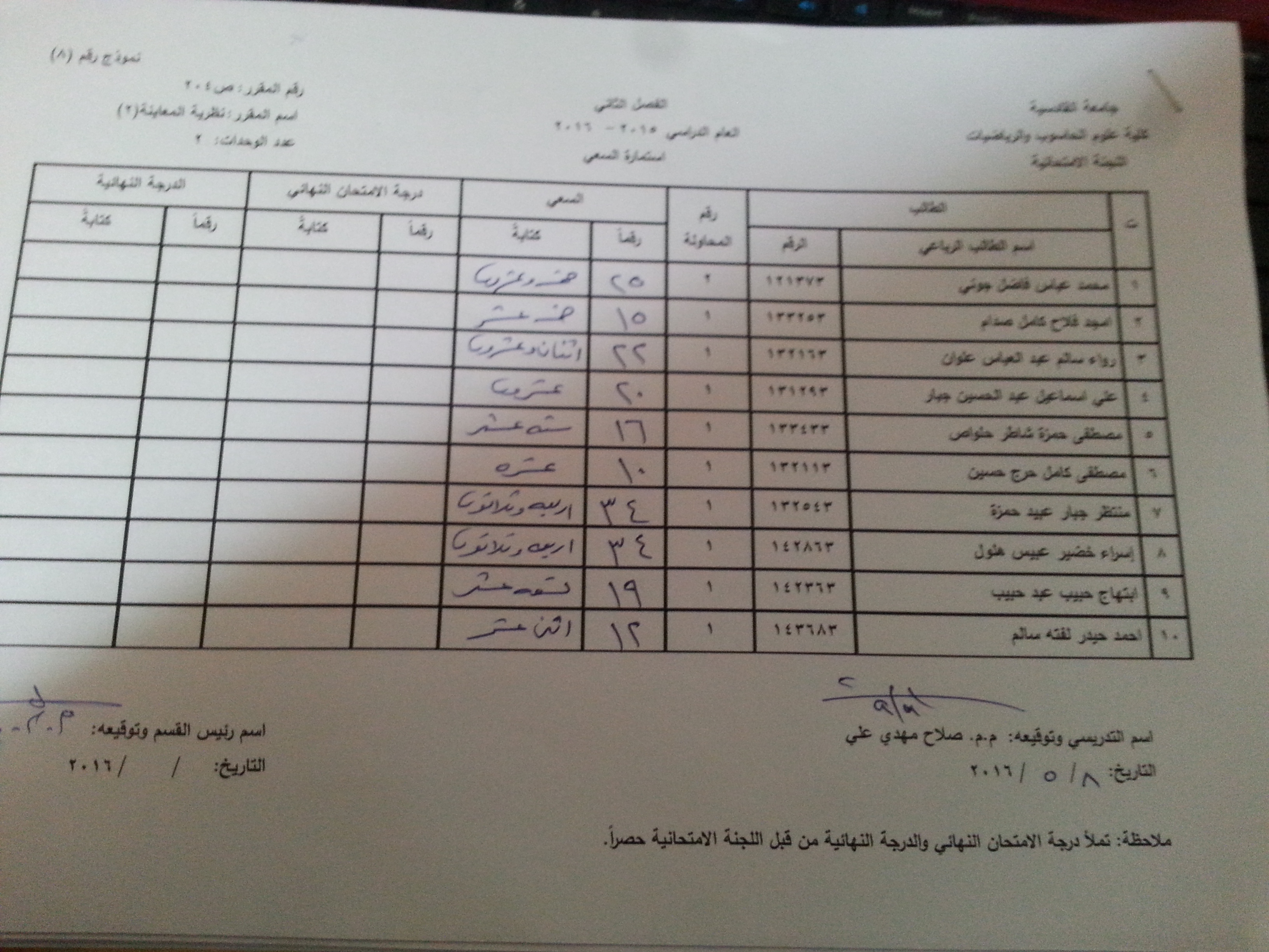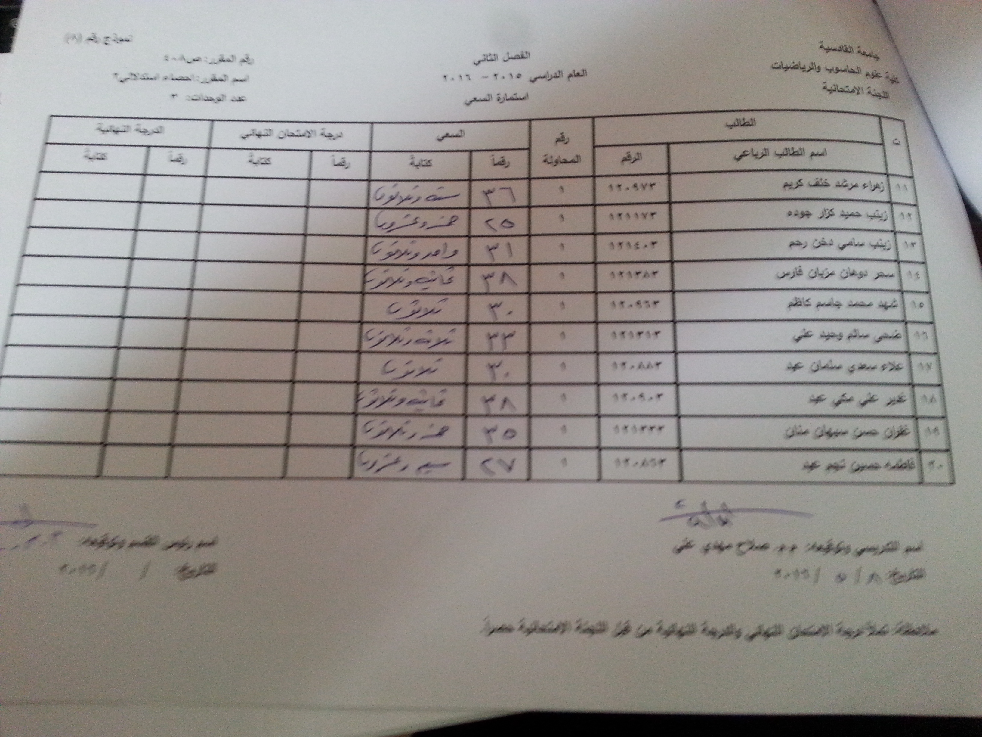 ملاحظة //1- في حالة وجود اي اعتراض في السعي السنوي مراجعة رئاسة القسم وبالسرعة الممكنة