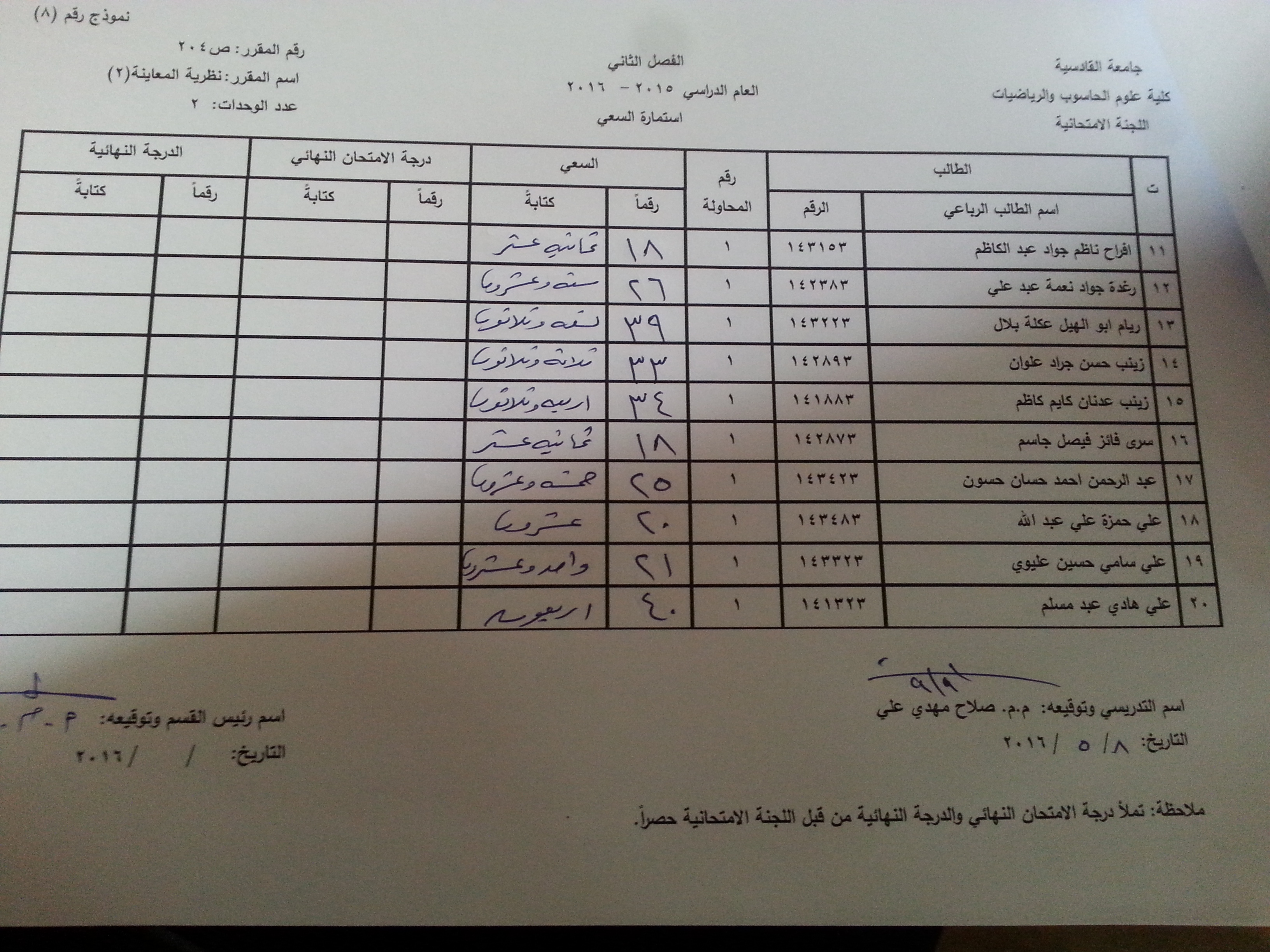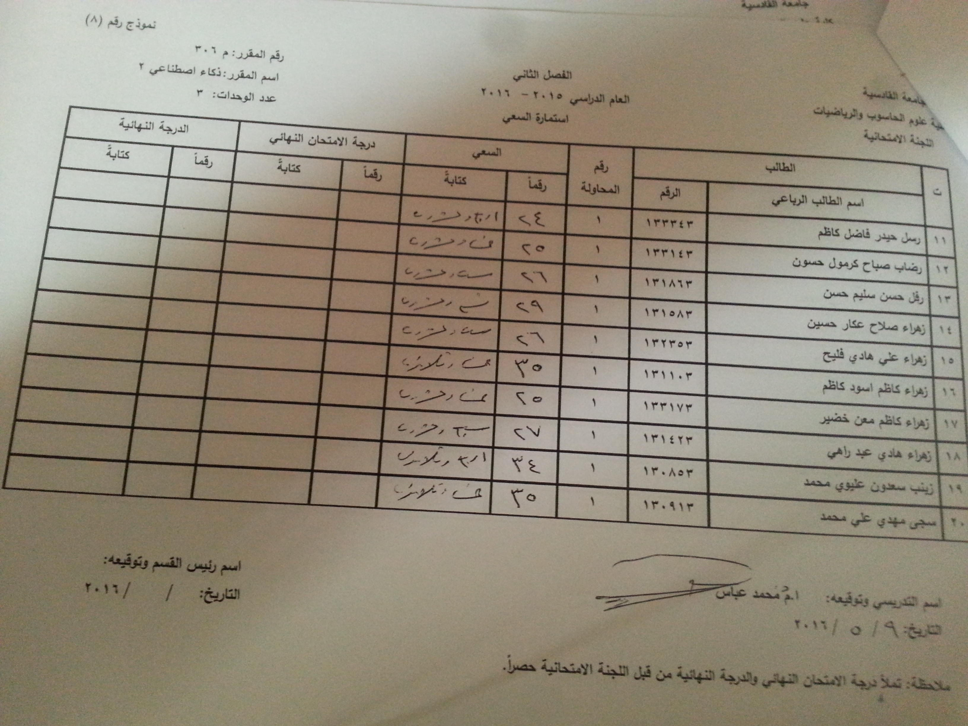 2- سيتم نشر سعي المواد المتبقية خلال الساعات القادمة من خلال موقع الكلية حصرا