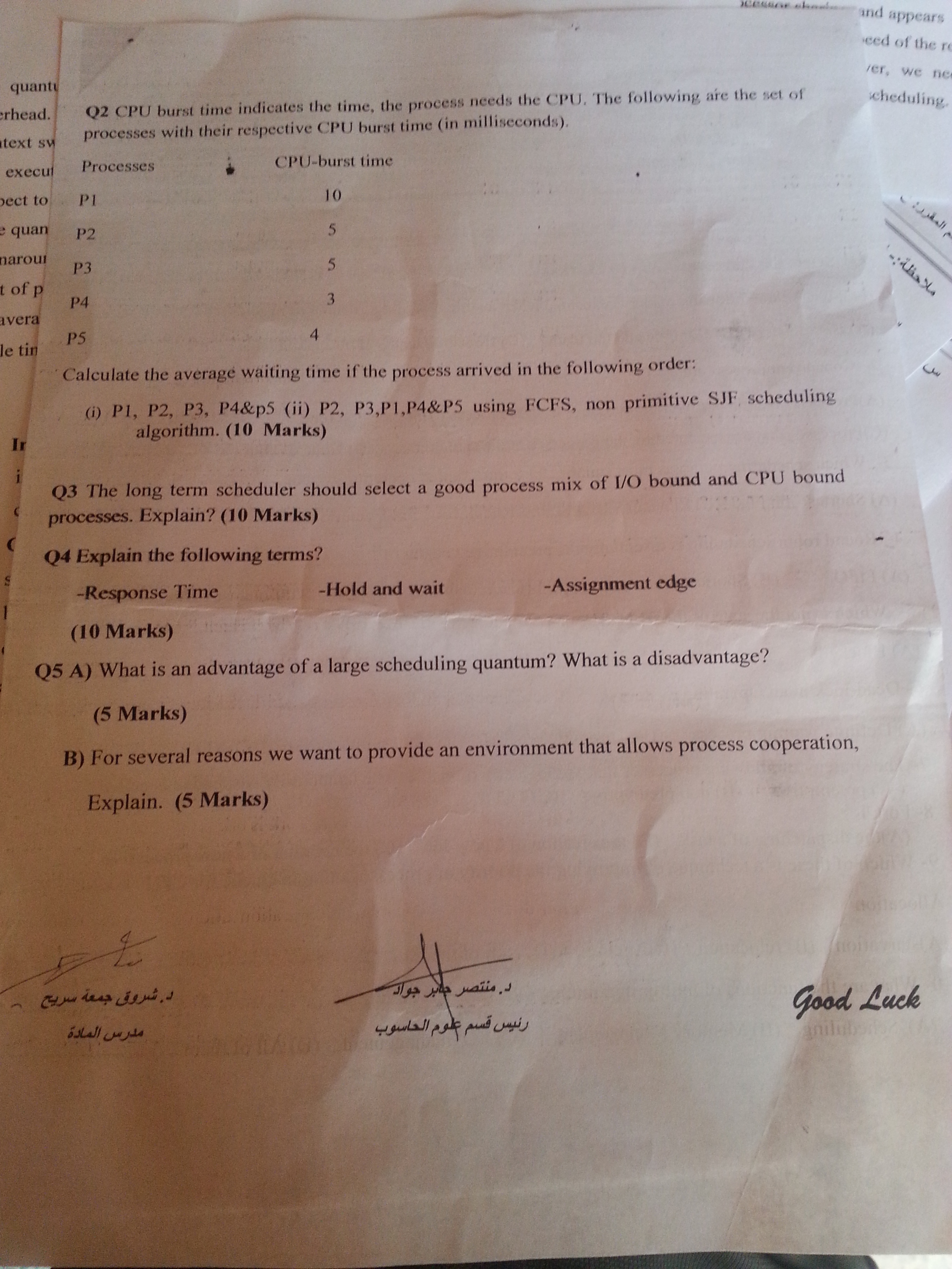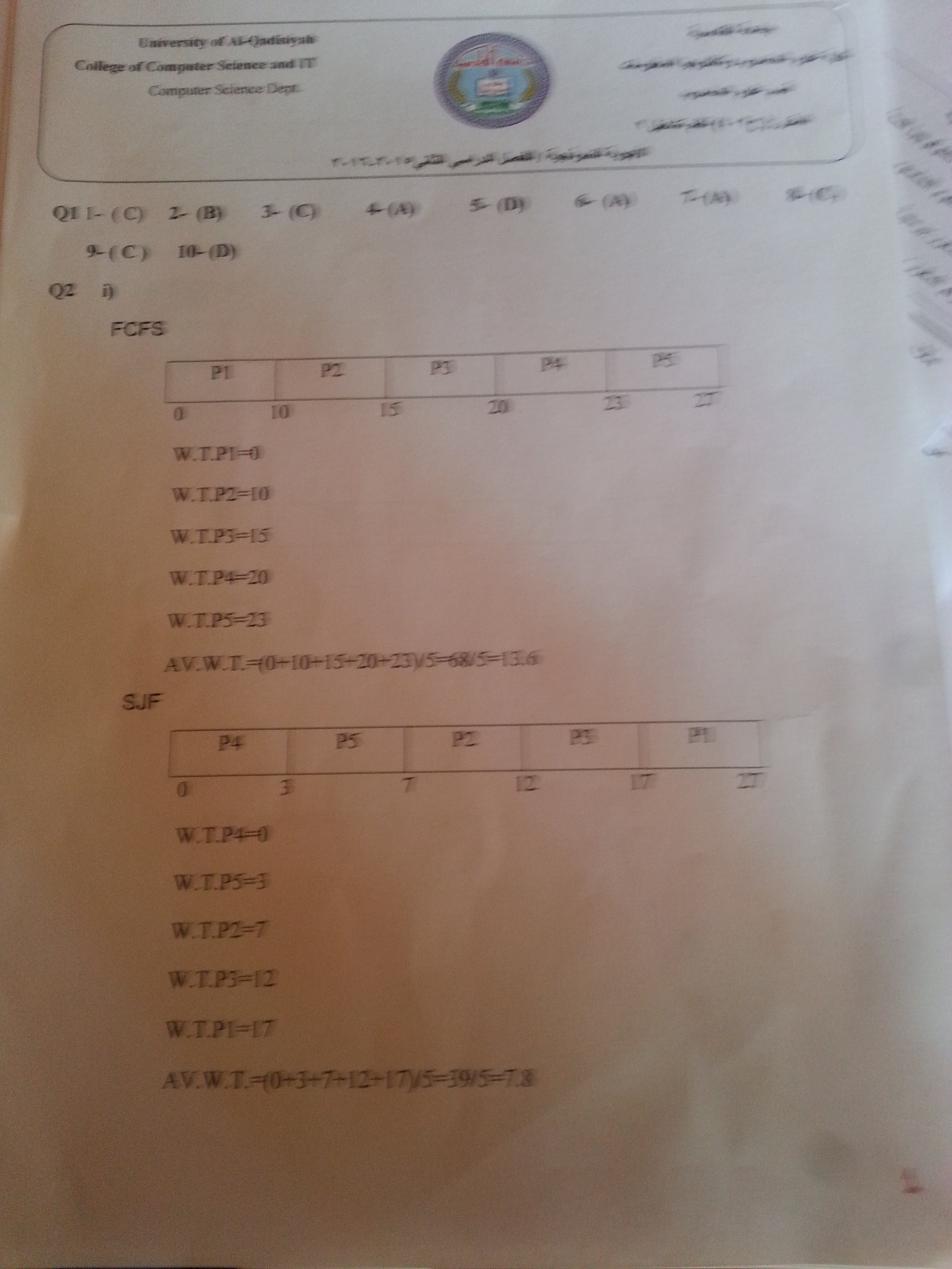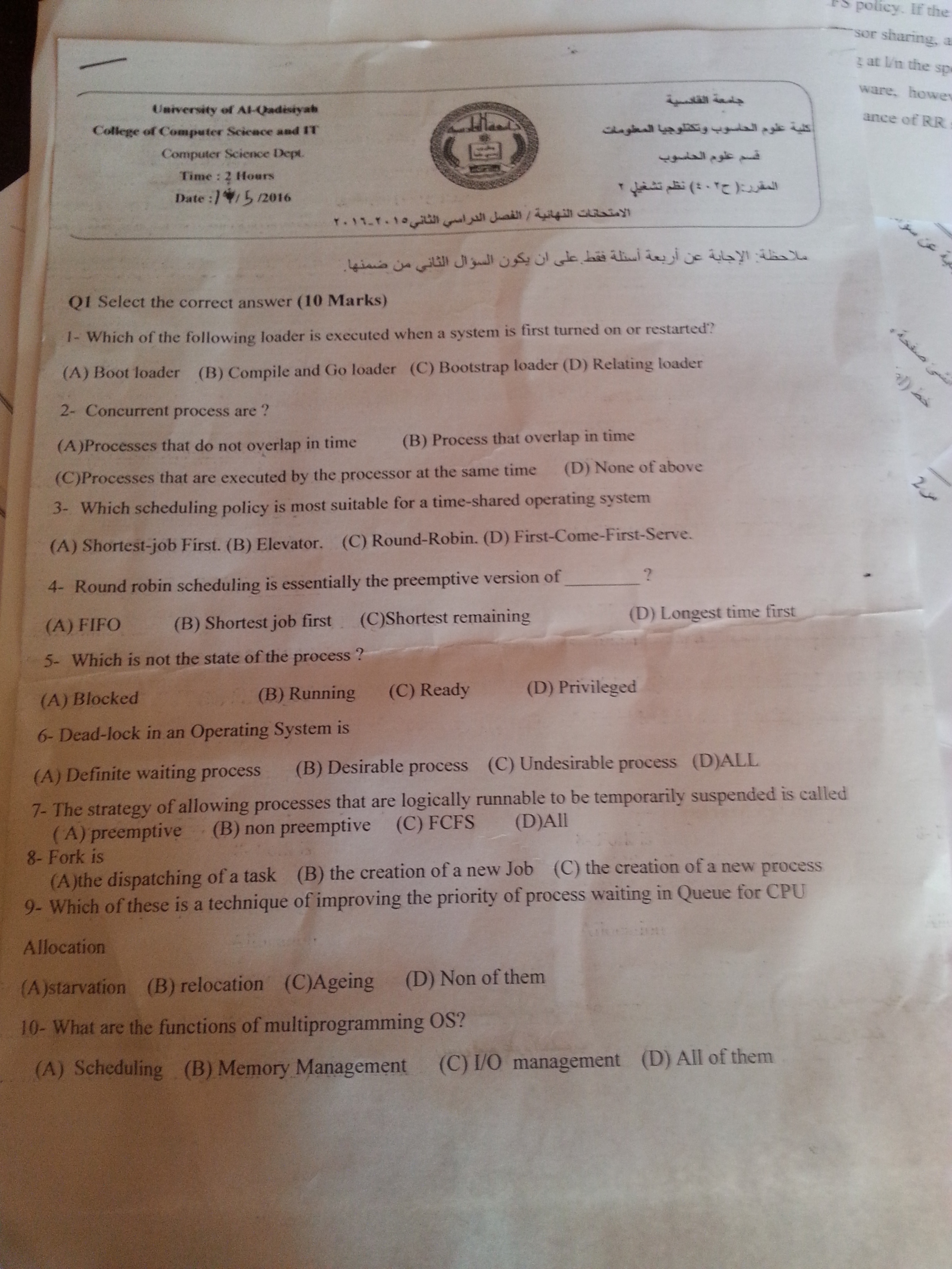 اسئلة نظم تشغيل (2) مع الحلول النموذجية