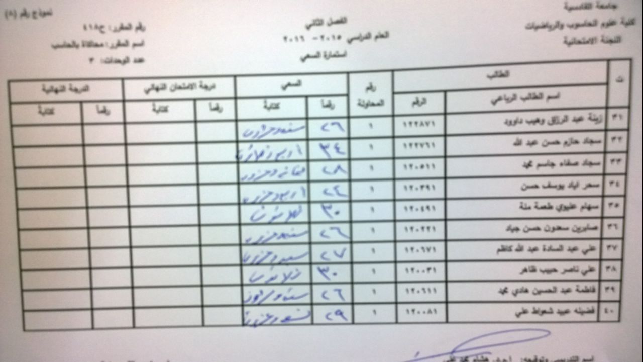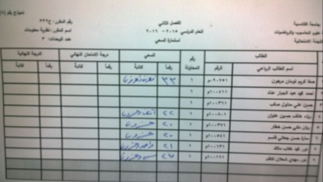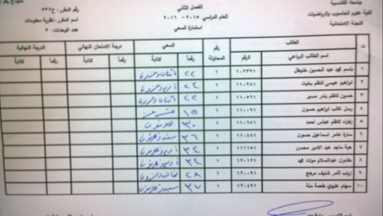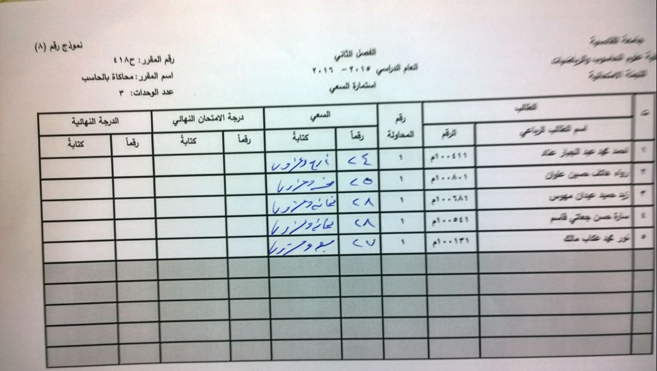 ندرج لكم ادناه سعي مادة المحاكاة (صباحي , مسائي ) ومادة نظرية المعلومات لقسم الحاسوب