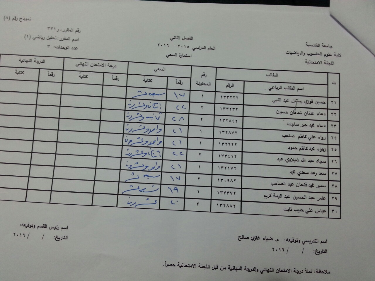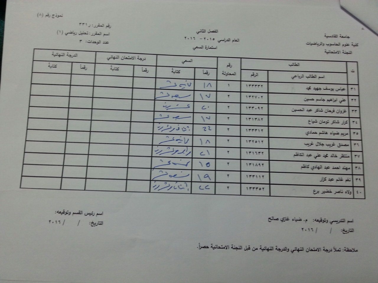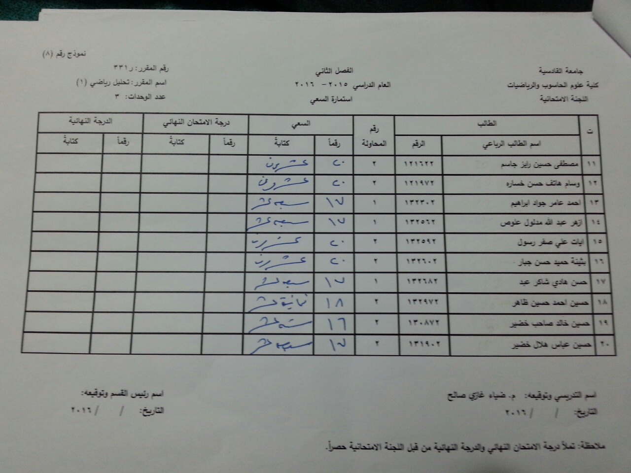 ندرج لكم ادناه سعي مادة تحليل رياضي (2) ومادة تبلوجيا ضبابية ومادة تفاضل وتكامل متقدم ومادة تحليل رياضي (1) لطلبة قسم الرياضيات