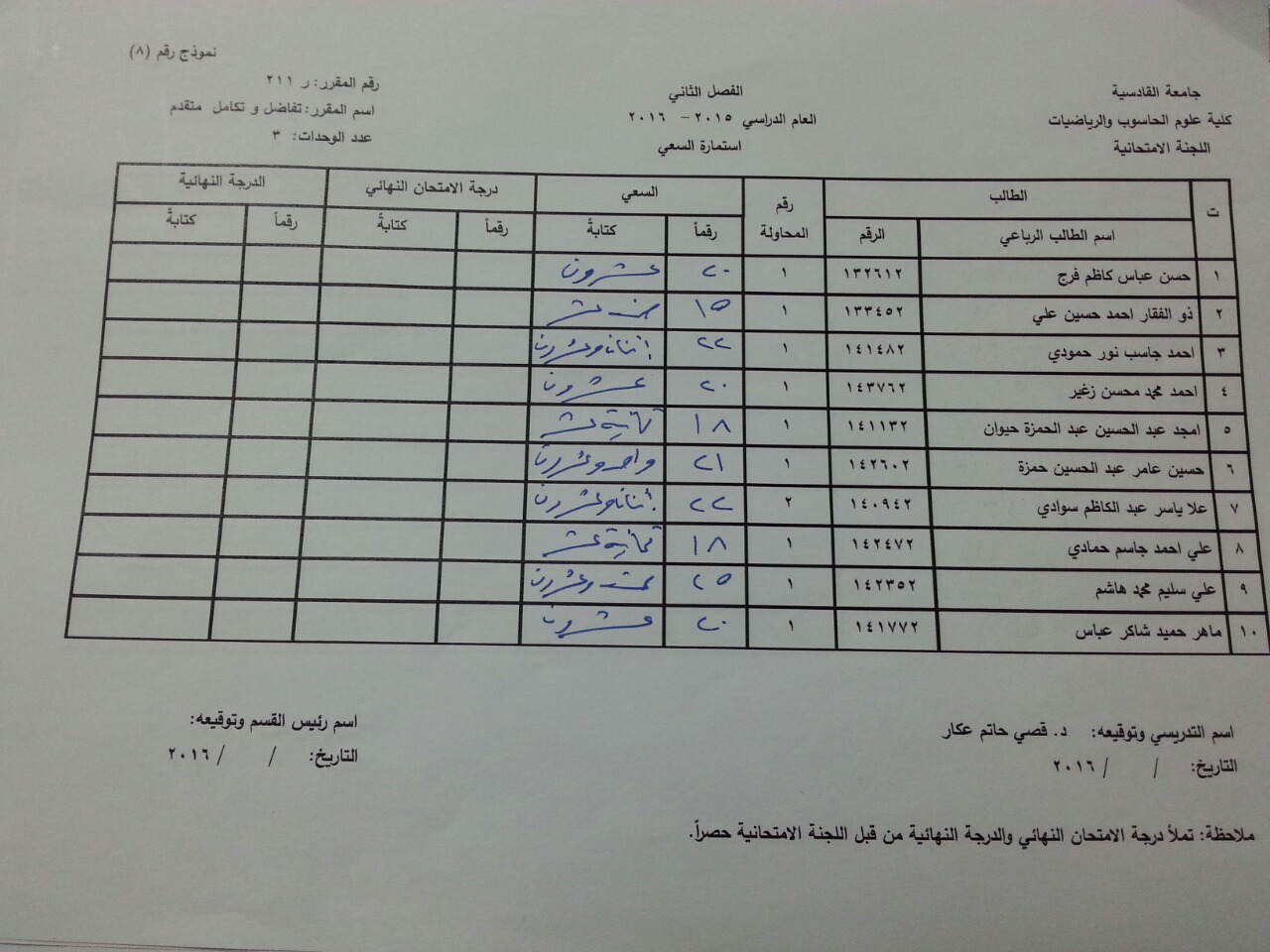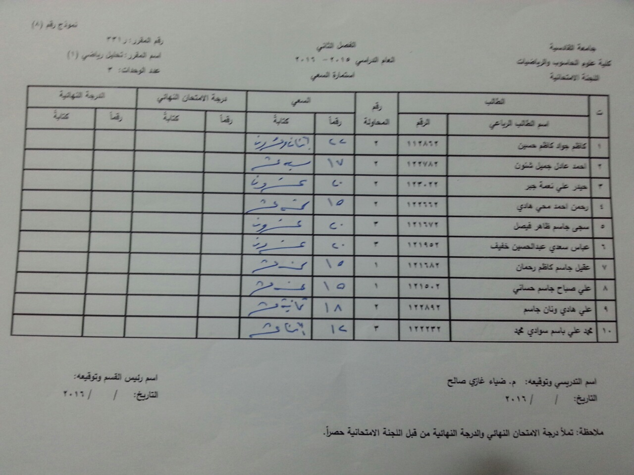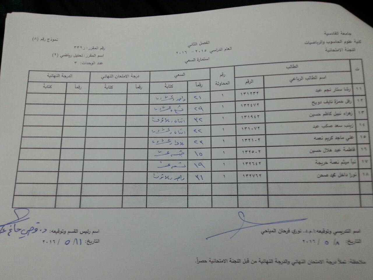 ندرج لكم ادناه سعي مادة تحليل رياضي (2) ومادة تبلوجيا ضبابية ومادة تفاضل وتكامل متقدم ومادة تحليل رياضي (1) لطلبة قسم الرياضيات
