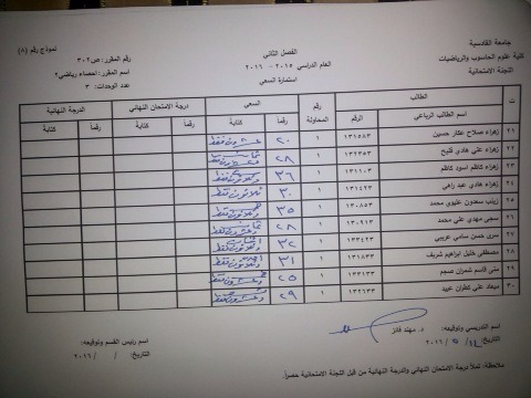 ندرج لكم في ادناه سعي مواد قسم الاحصاء والمعلوماتية (الجزء الثالث)