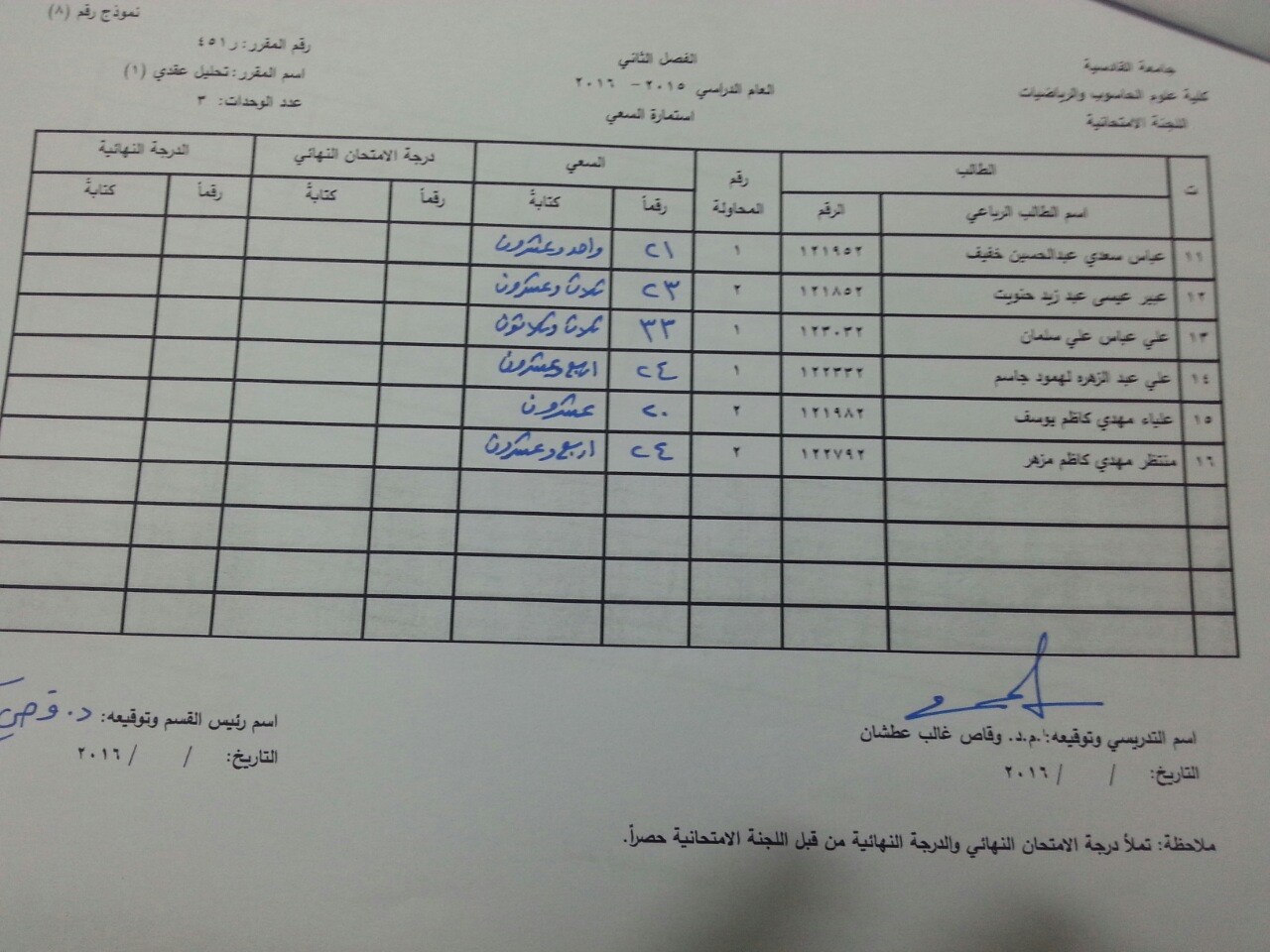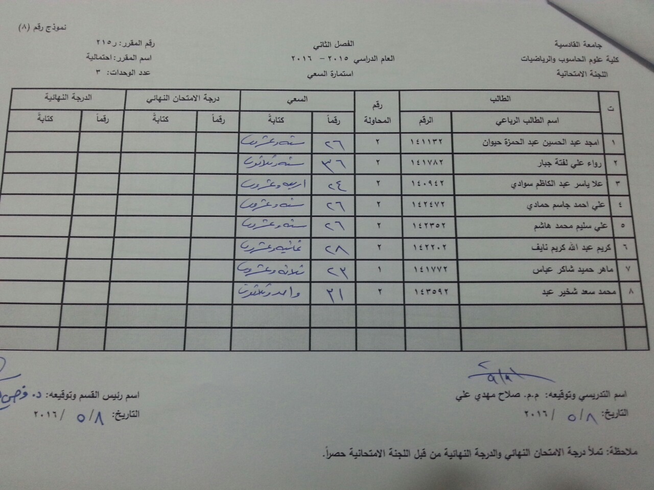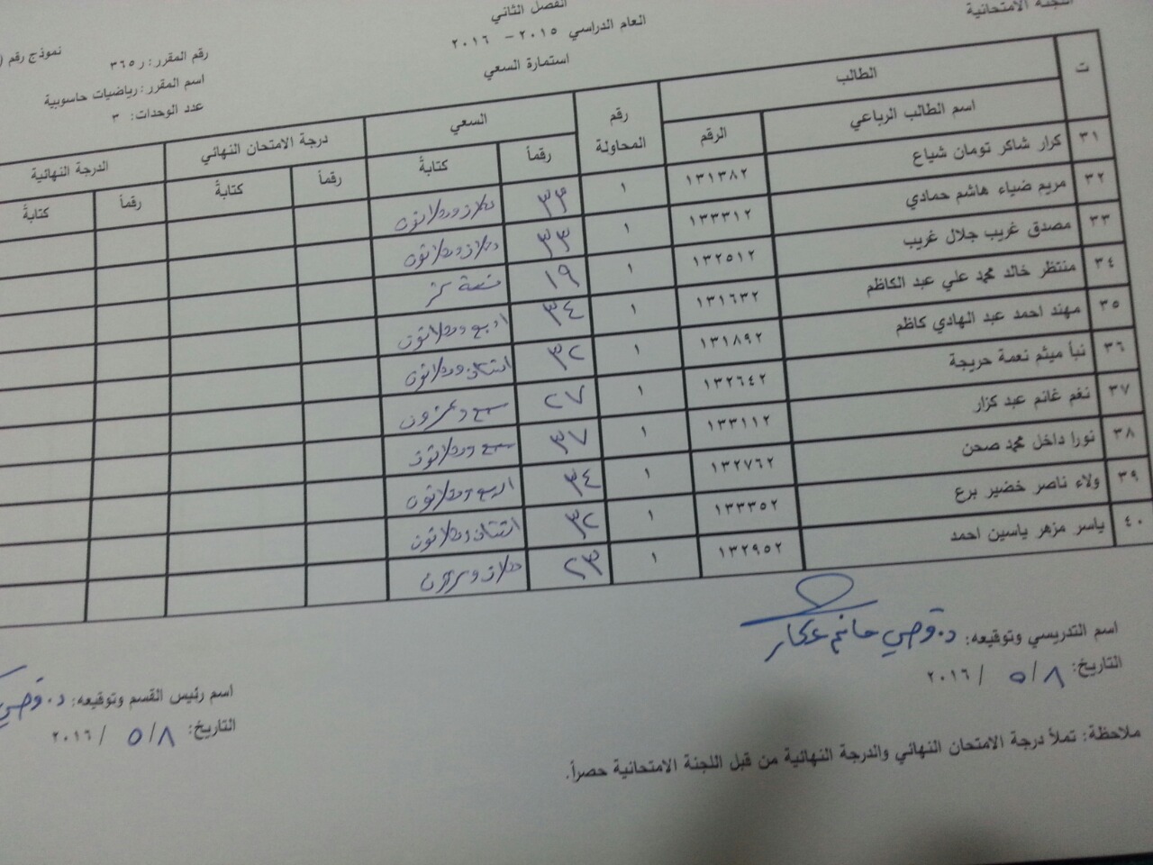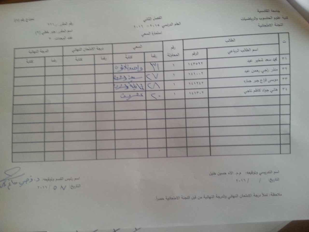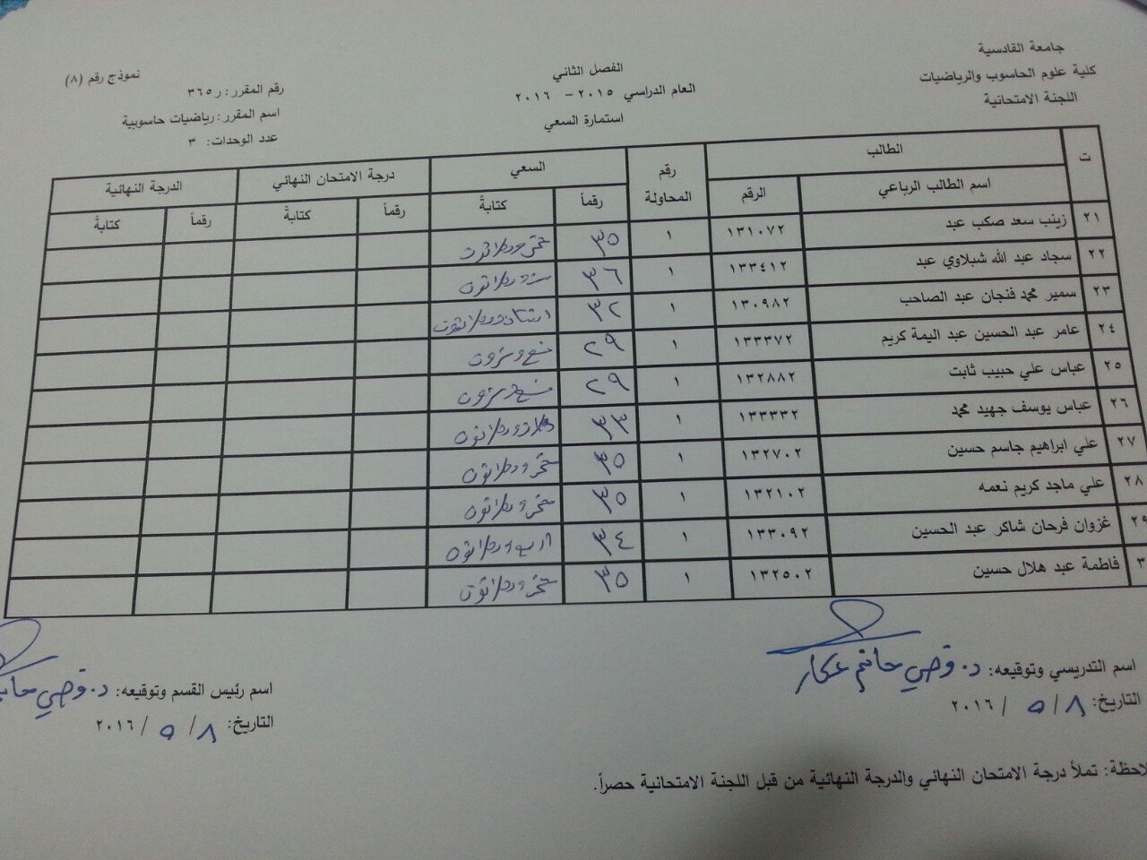 سعي مواد قسم الرياضيات (رياضيات حاسوبية -تحليل عقدي 2-تحليل عقدي 1-نظرية التقريب -احتمالية -انترنت وانترانيت -مبادئ ادارة -تحليل دالي 2 -تحليل دالي 1 -نظرية القياس -تبلوجيا – جبر خطي – نمذجة رياضية – نظرية الفوظى – رياضيات مالية )