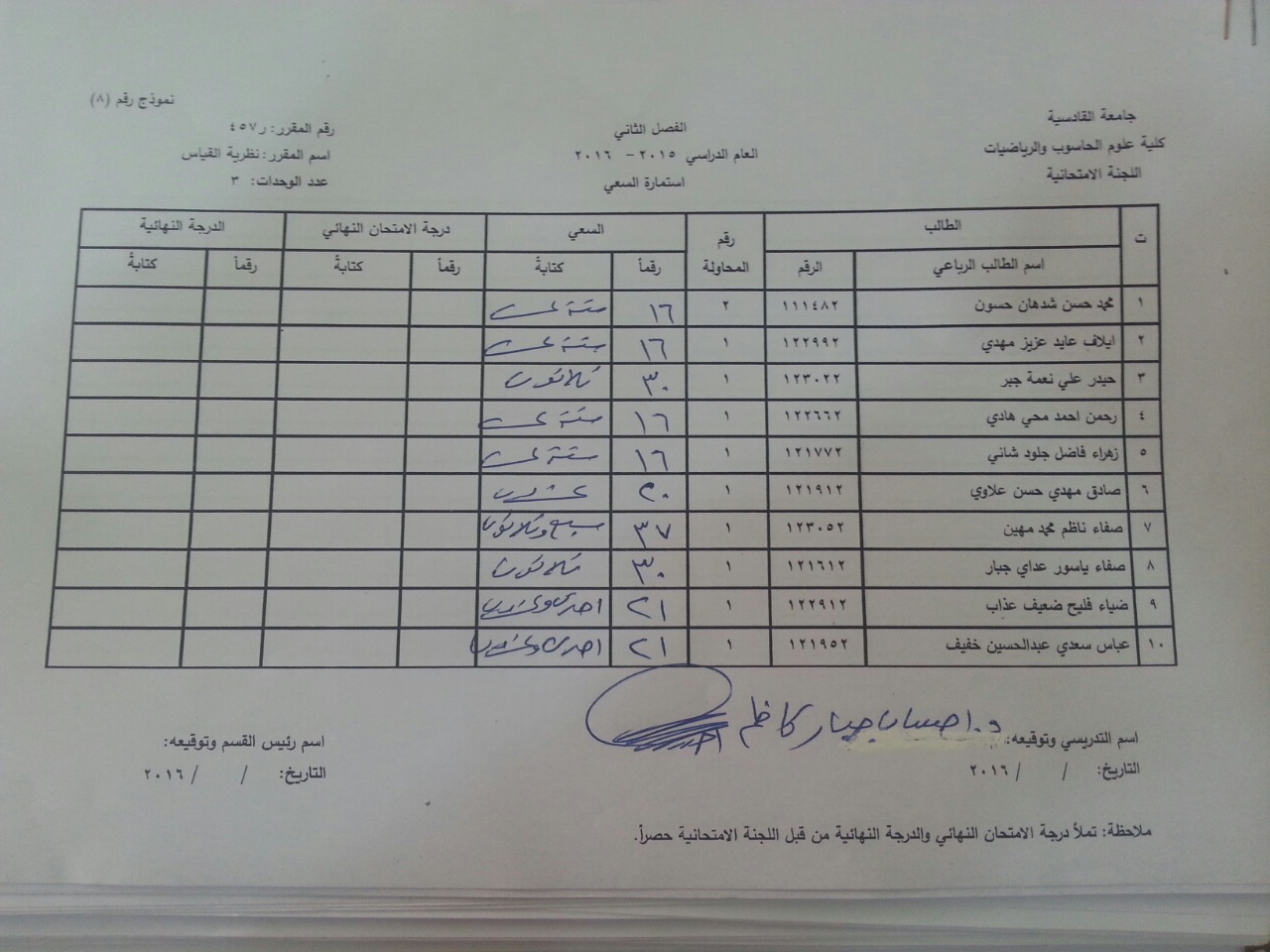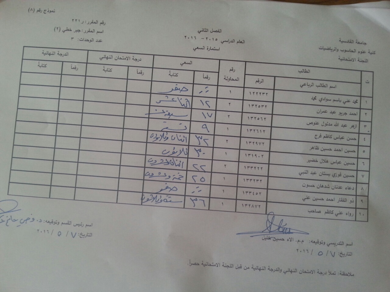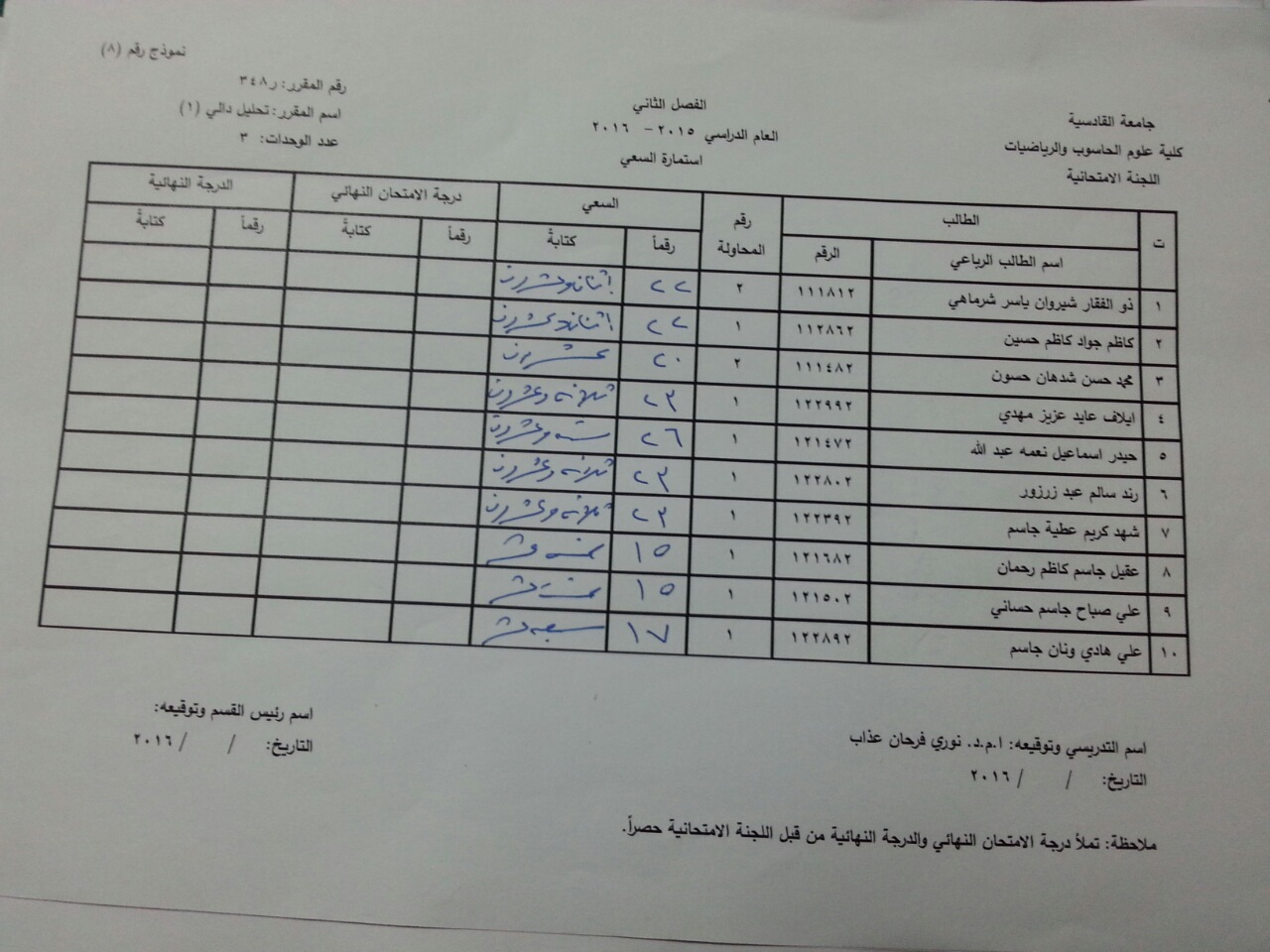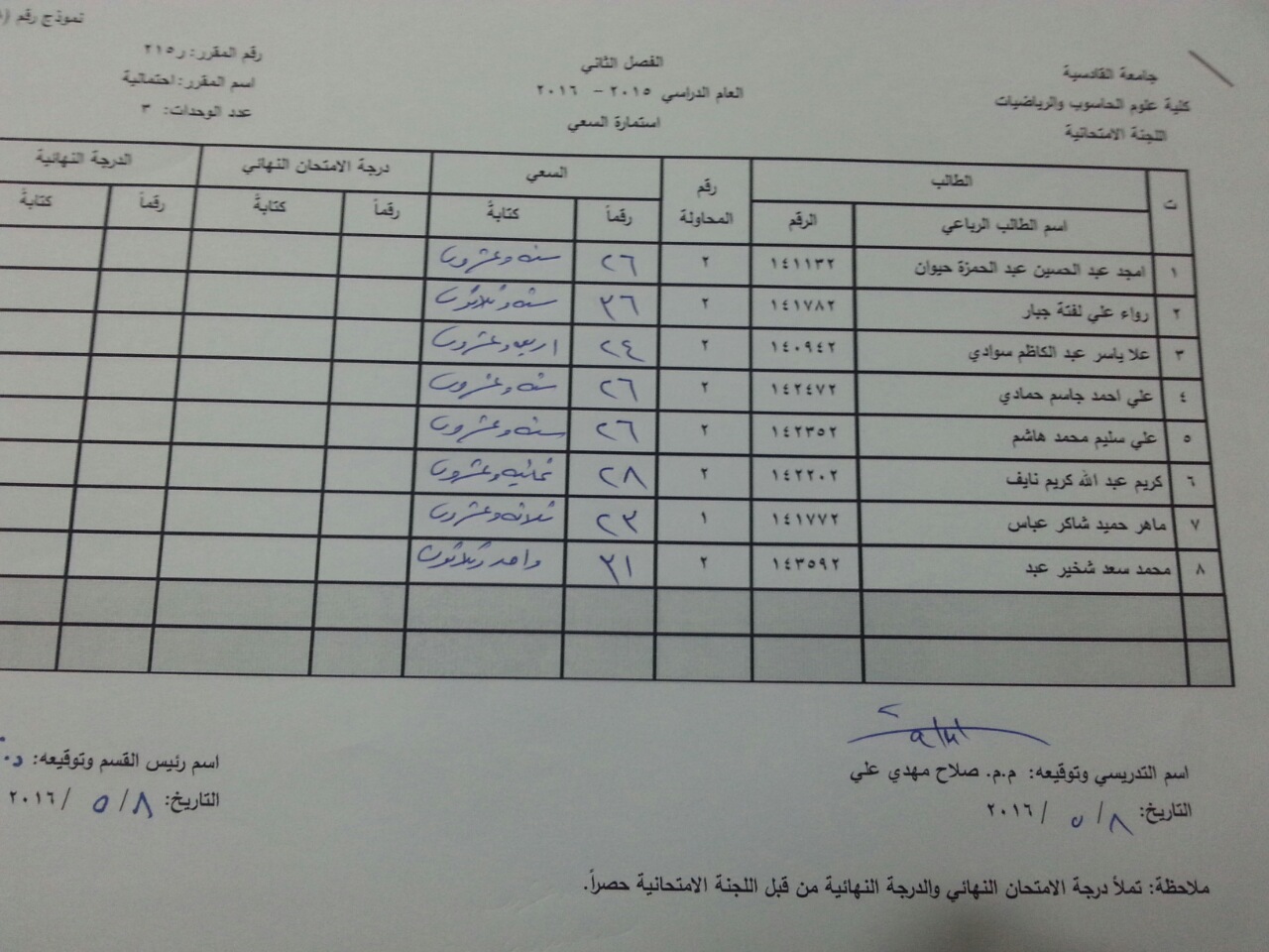 سعي مواد قسم الرياضيات (رياضيات حاسوبية -تحليل عقدي 2-تحليل عقدي 1-نظرية التقريب -احتمالية -انترنت وانترانيت -مبادئ ادارة -تحليل دالي 2 -تحليل دالي 1 -نظرية القياس -تبلوجيا – جبر خطي – نمذجة رياضية – نظرية الفوظى – رياضيات مالية )