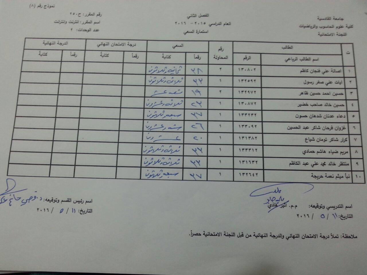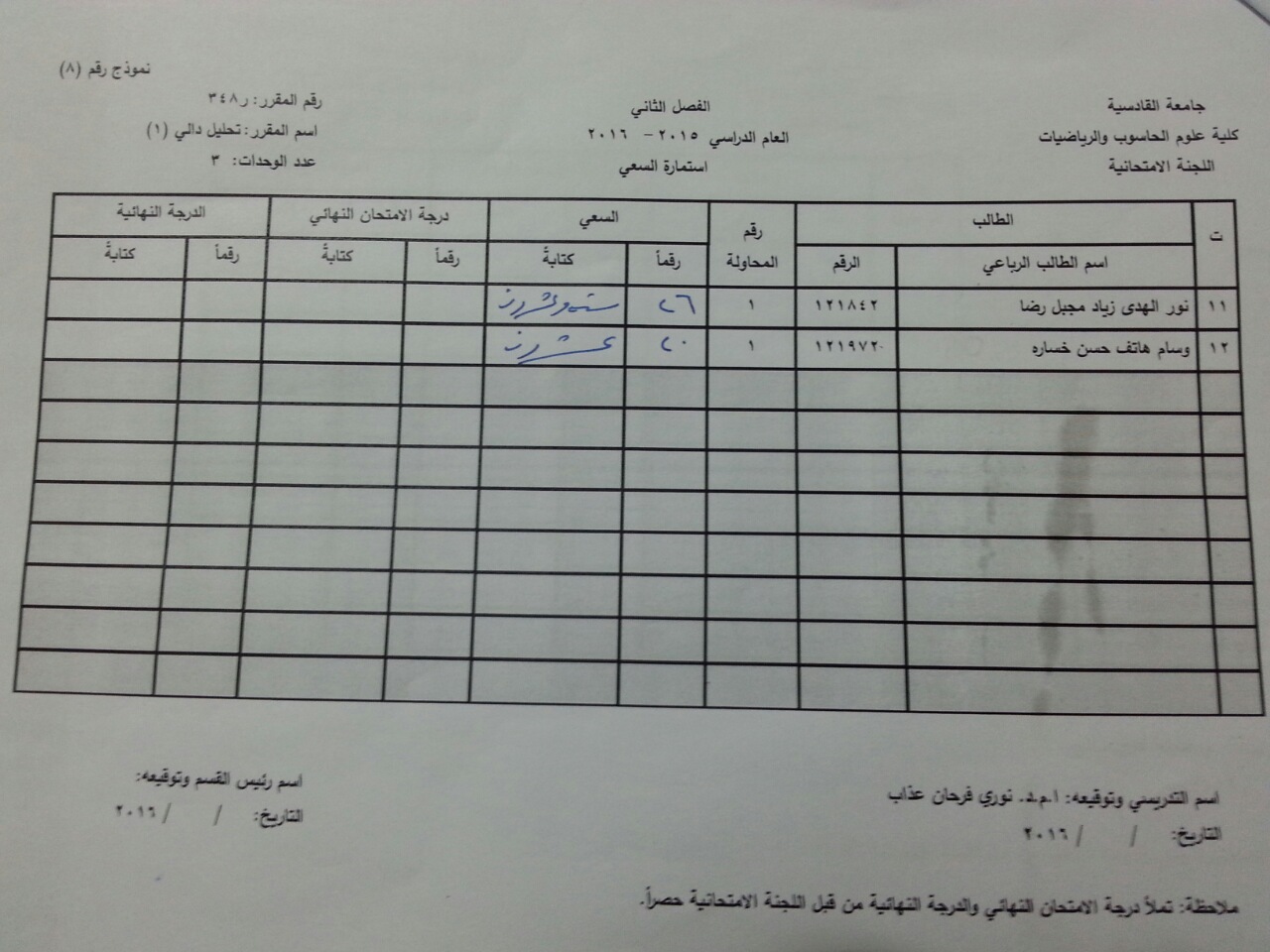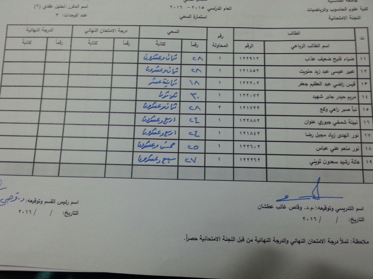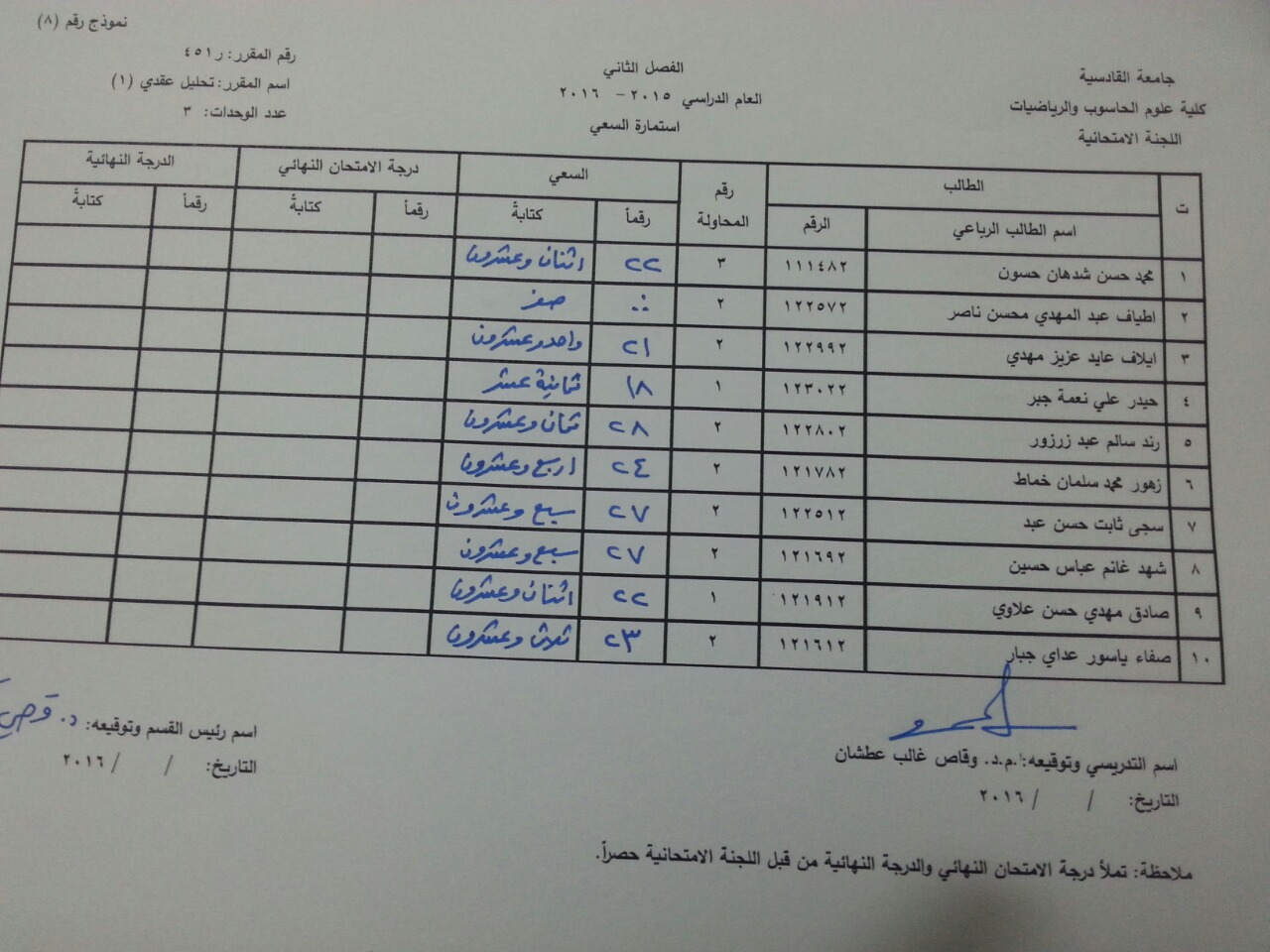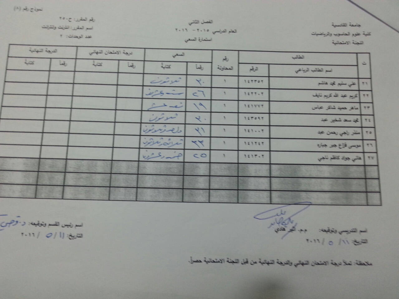سعي مواد قسم الرياضيات (رياضيات حاسوبية -تحليل عقدي 2-تحليل عقدي 1-نظرية التقريب -احتمالية -انترنت وانترانيت -مبادئ ادارة -تحليل دالي 2 -تحليل دالي 1 -نظرية القياس -تبلوجيا – جبر خطي – نمذجة رياضية – نظرية الفوظى – رياضيات مالية )