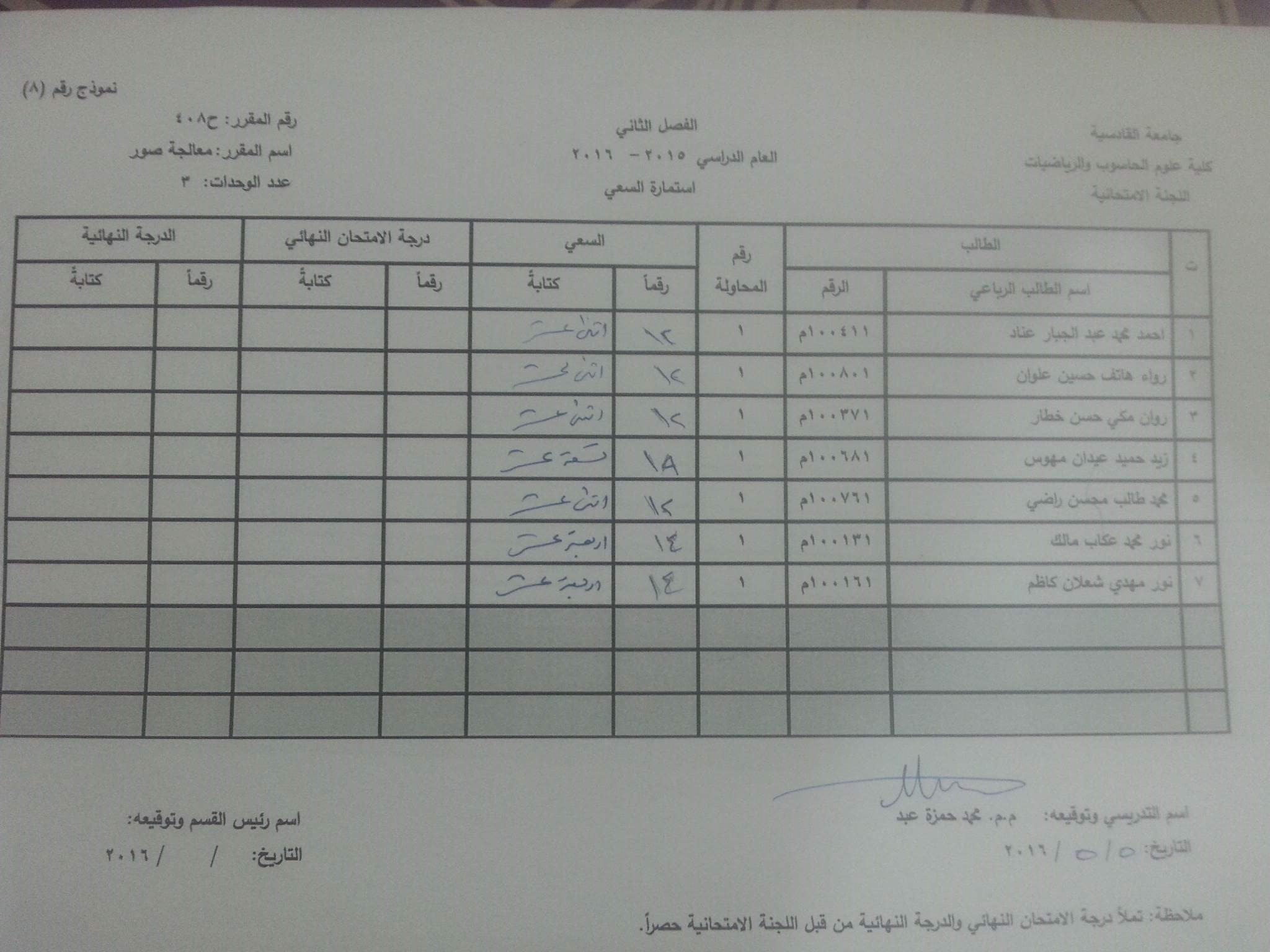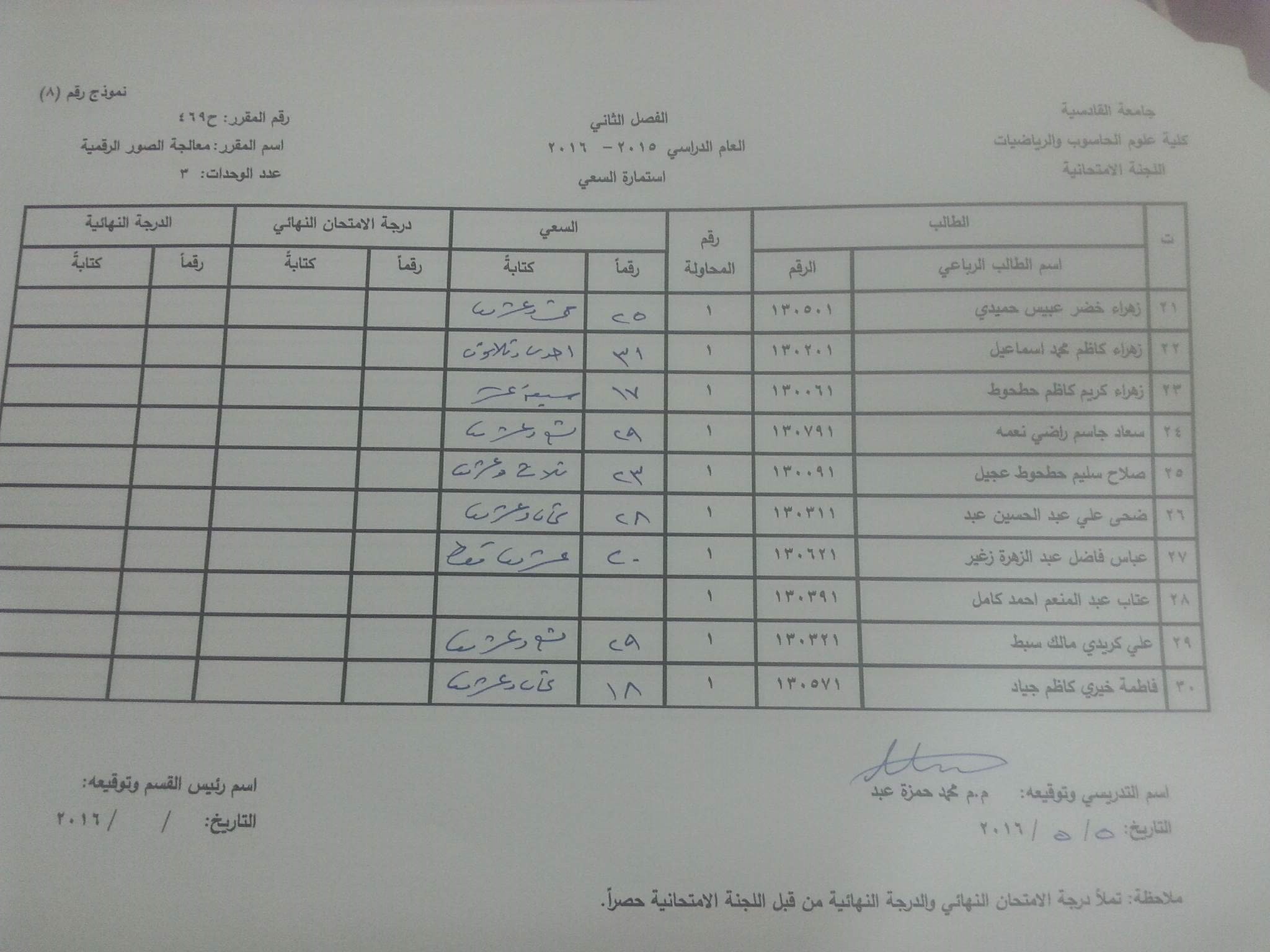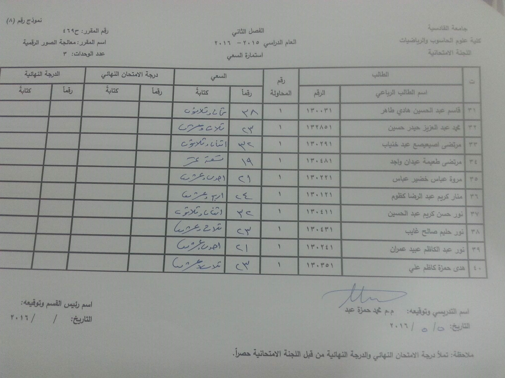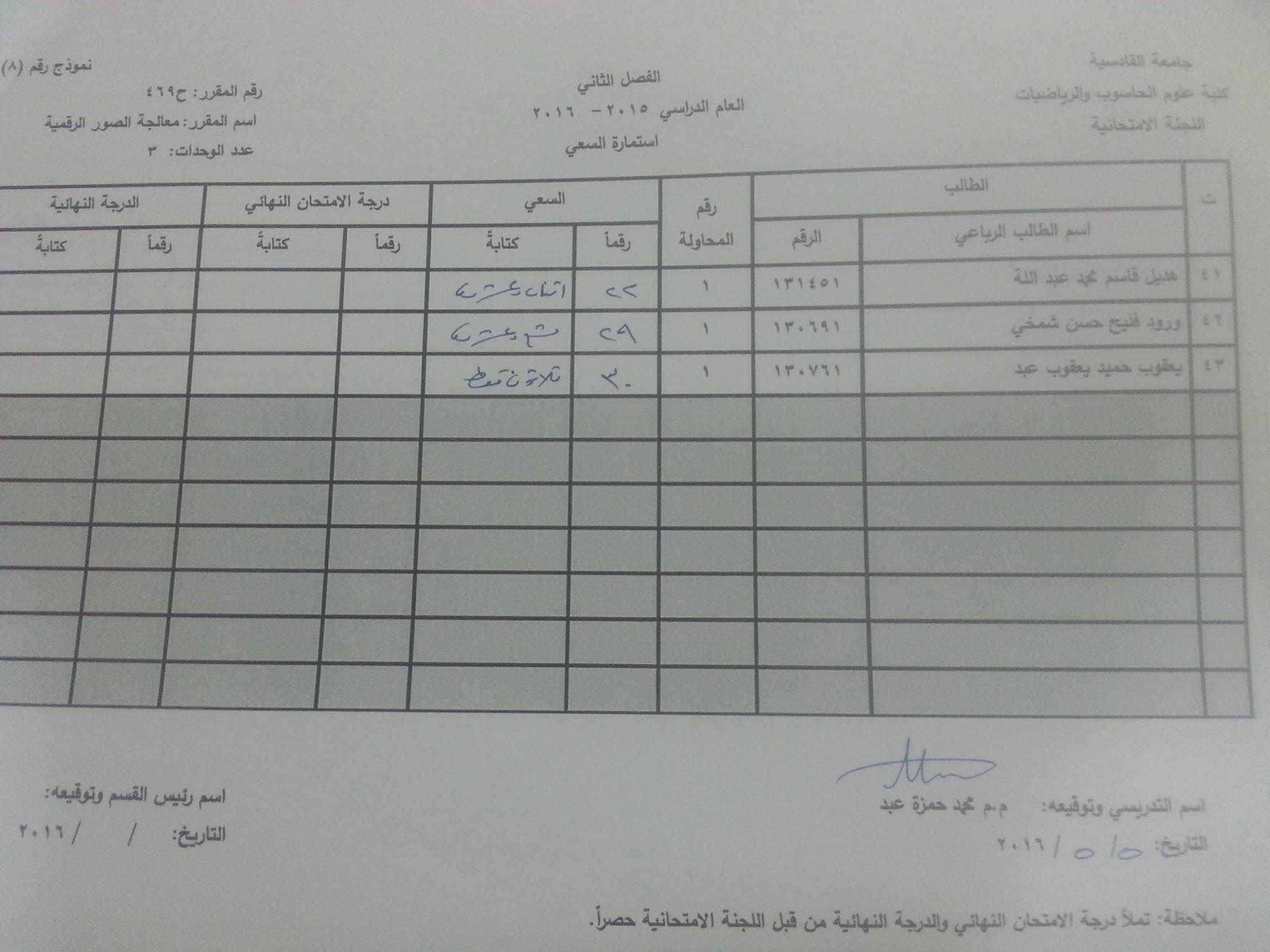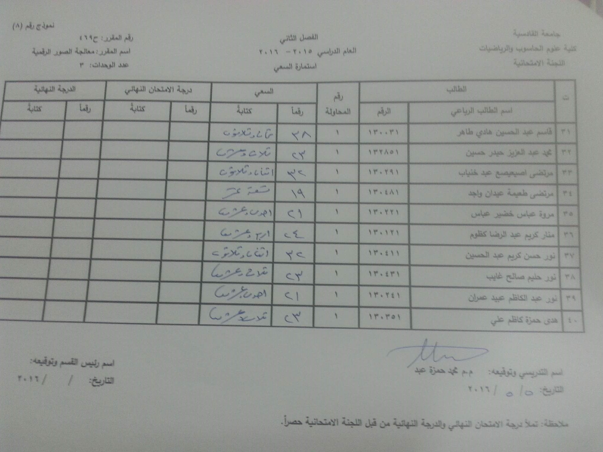 ندرج لكم ادناه سعي مادة ( تحليل وتصميم النظام – معالجة الصور- معالجة الصور الرقمية ) قسم الحاسوب