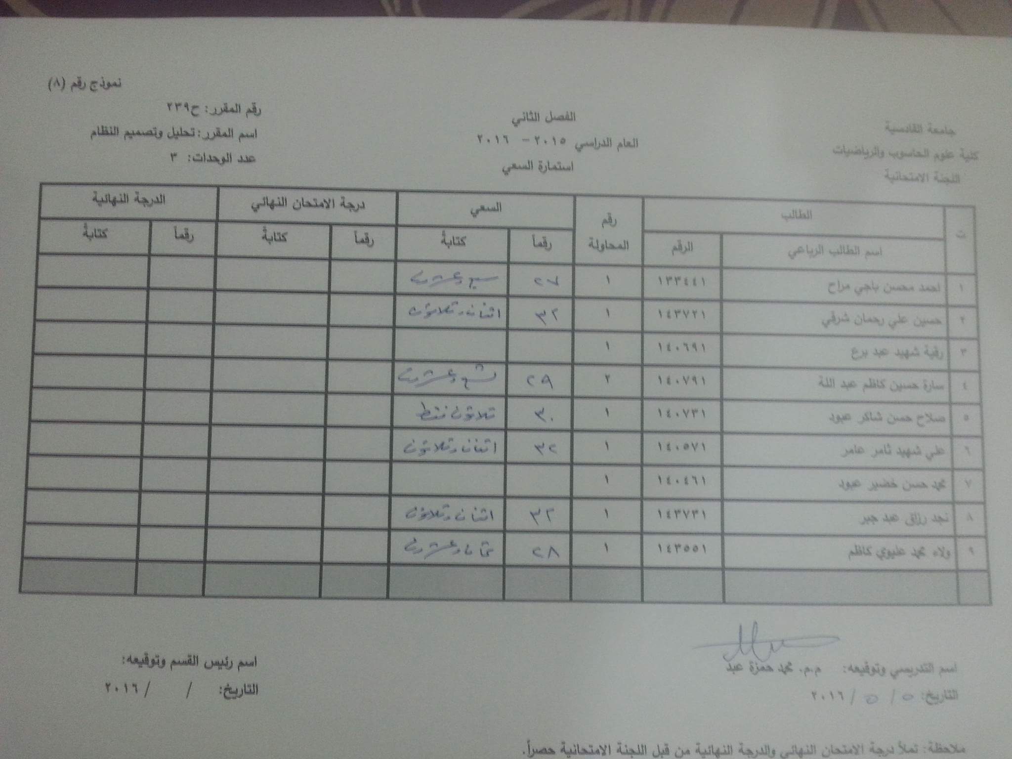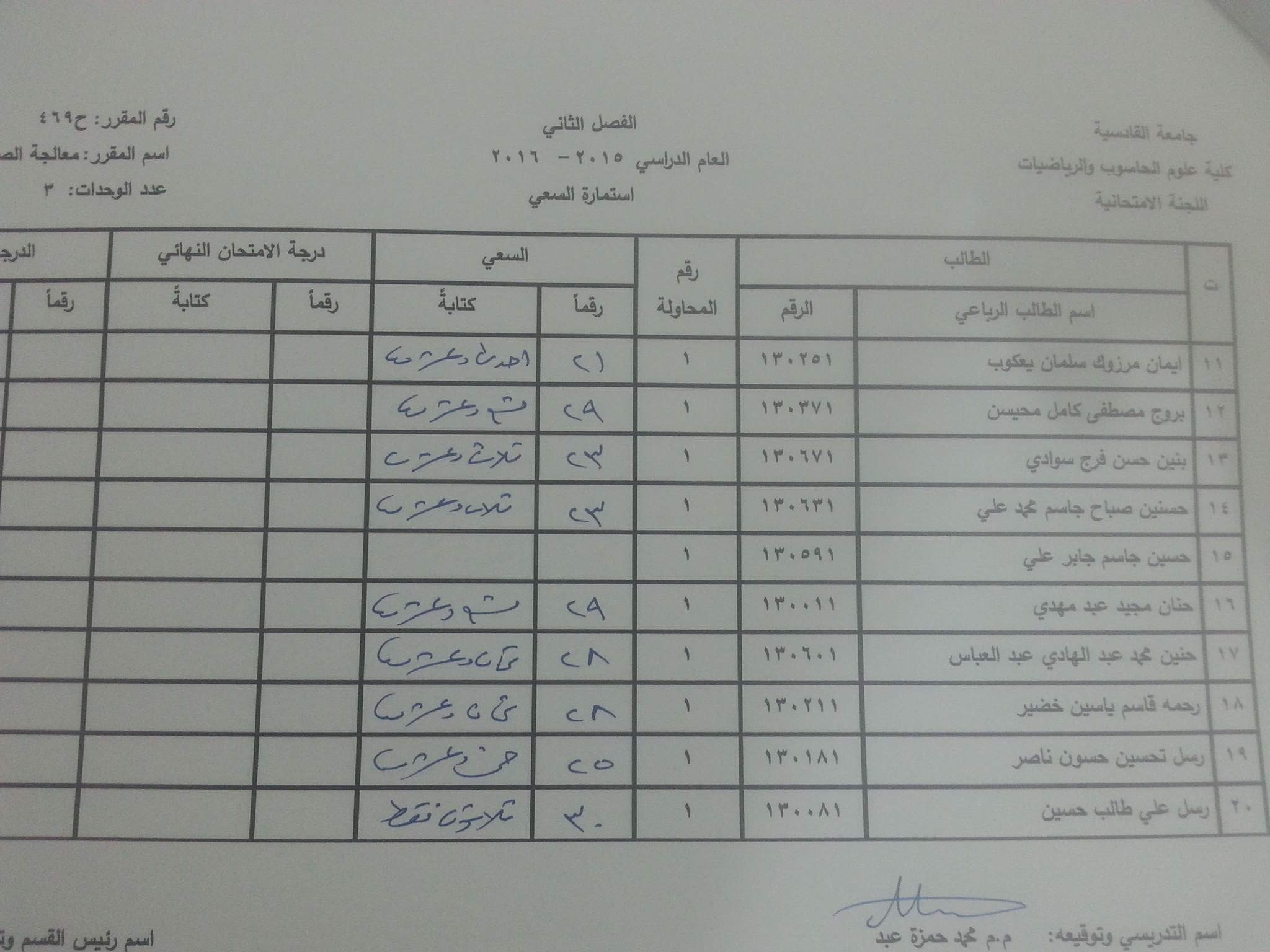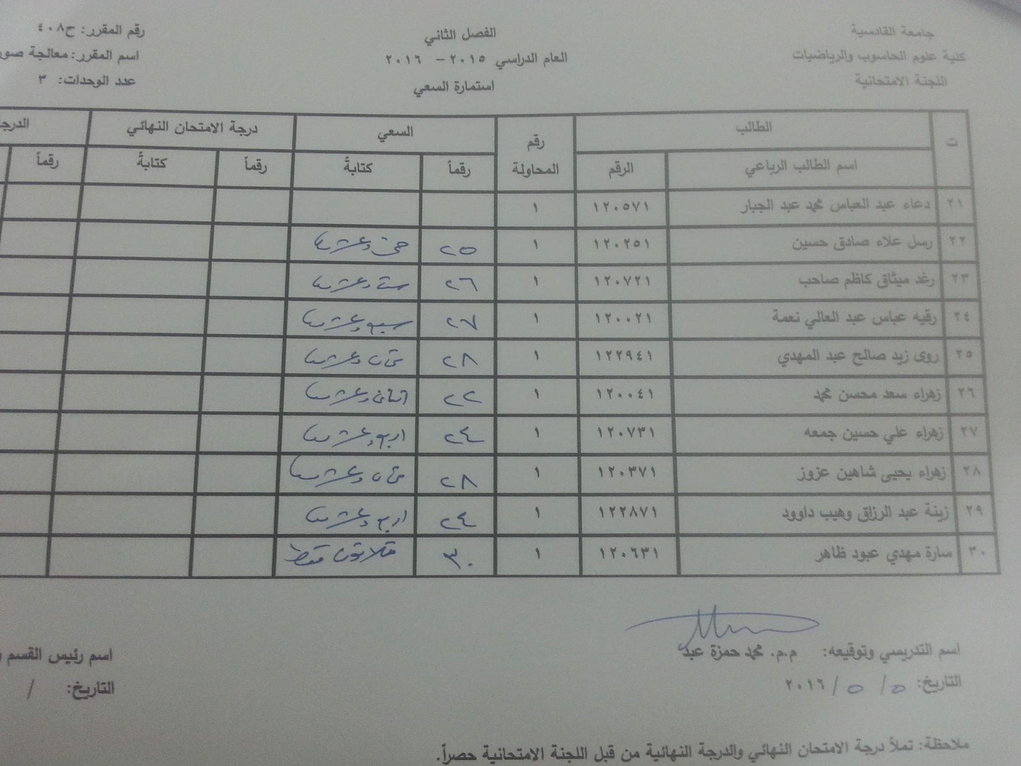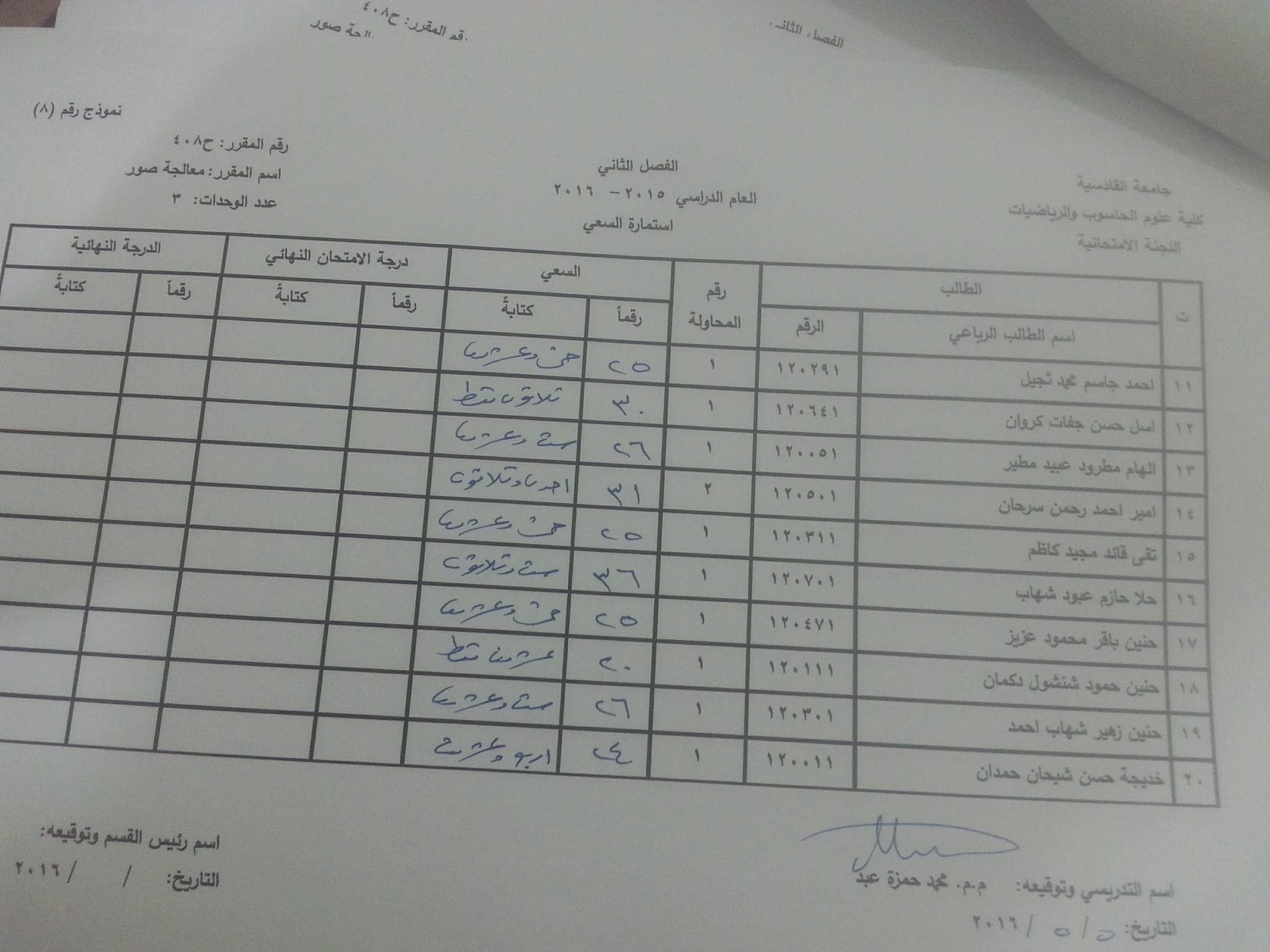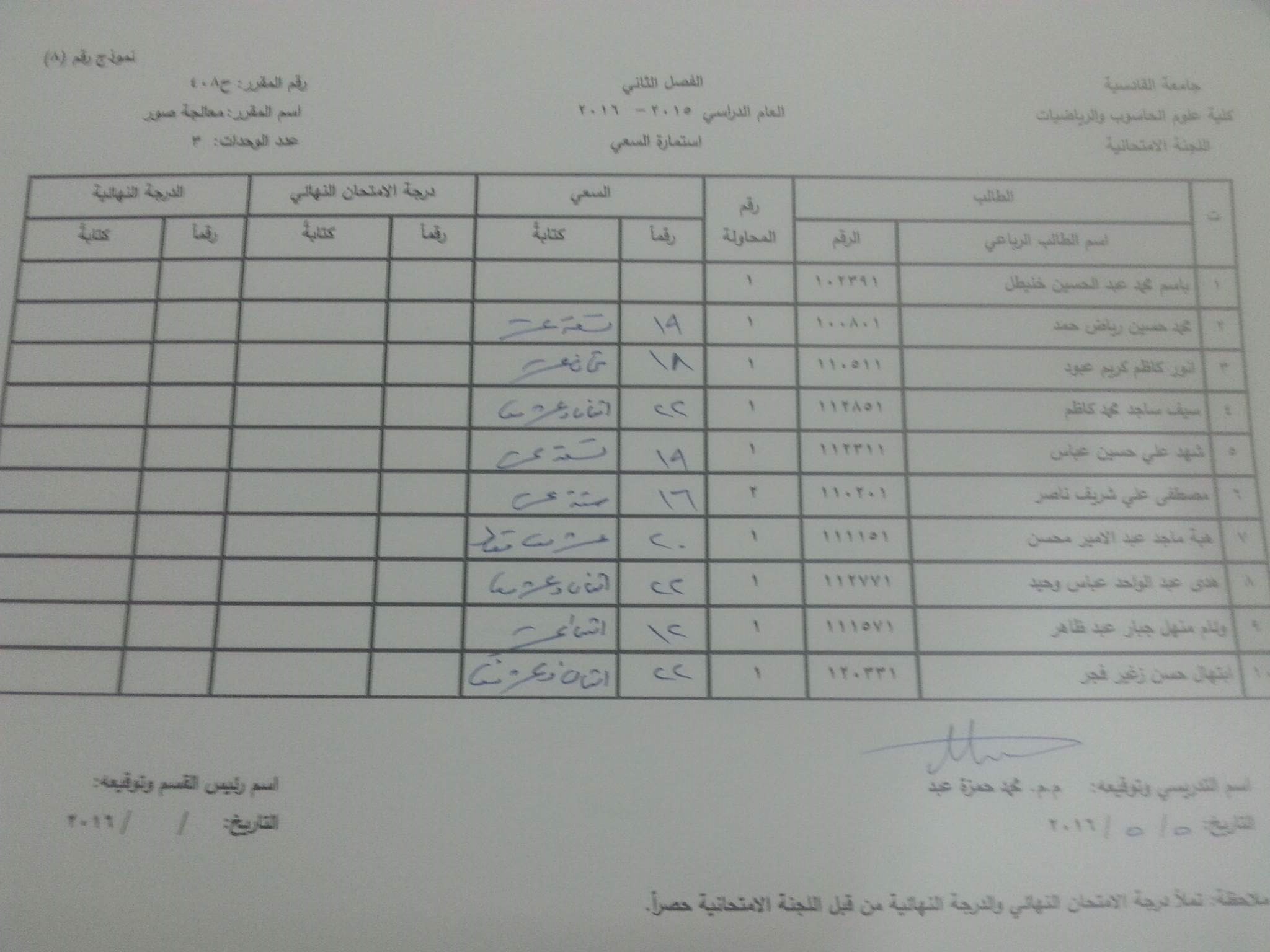 ندرج لكم ادناه سعي مادة ( تحليل وتصميم النظام – معالجة الصور- معالجة الصور الرقمية ) قسم الحاسوب
