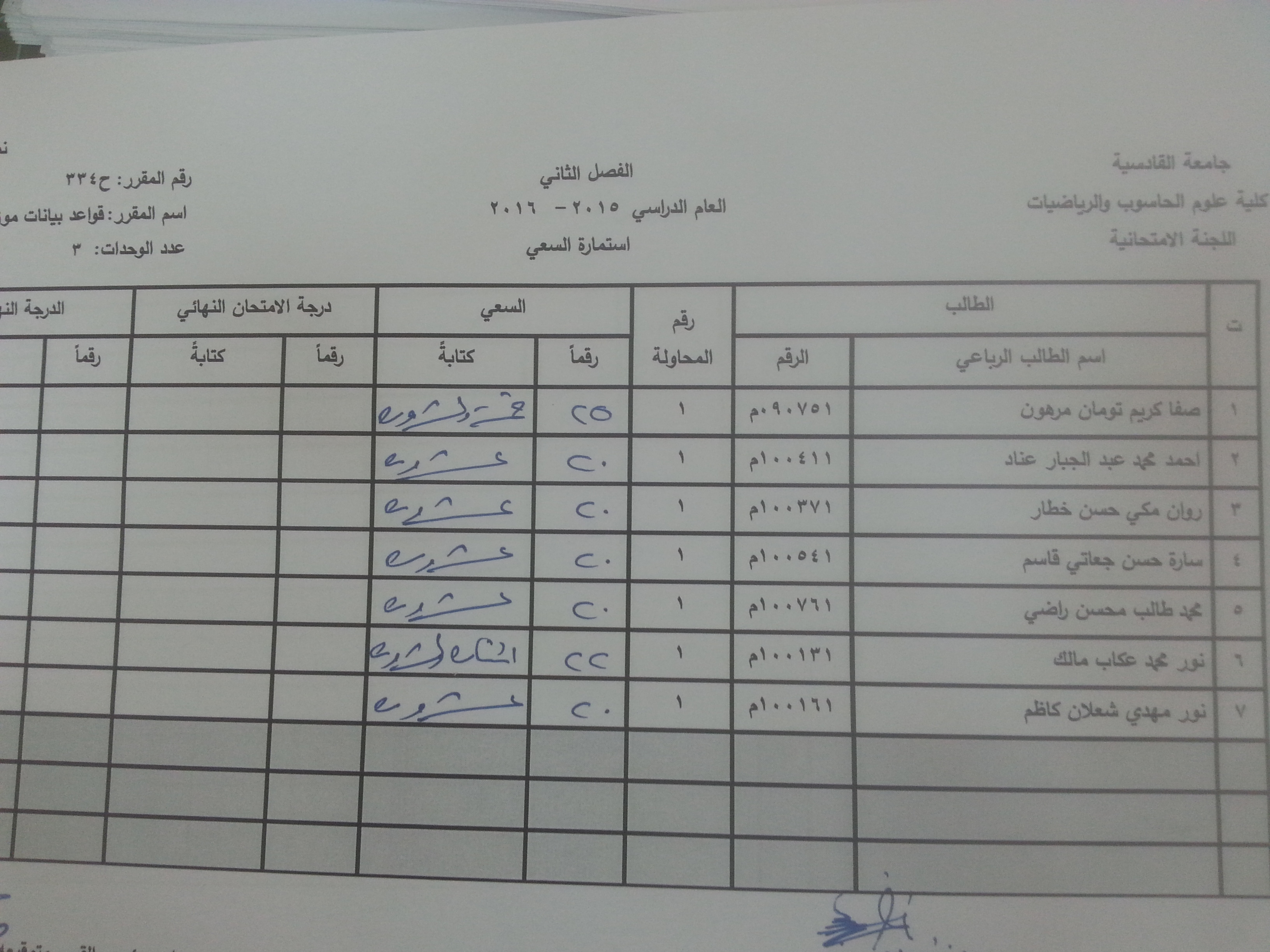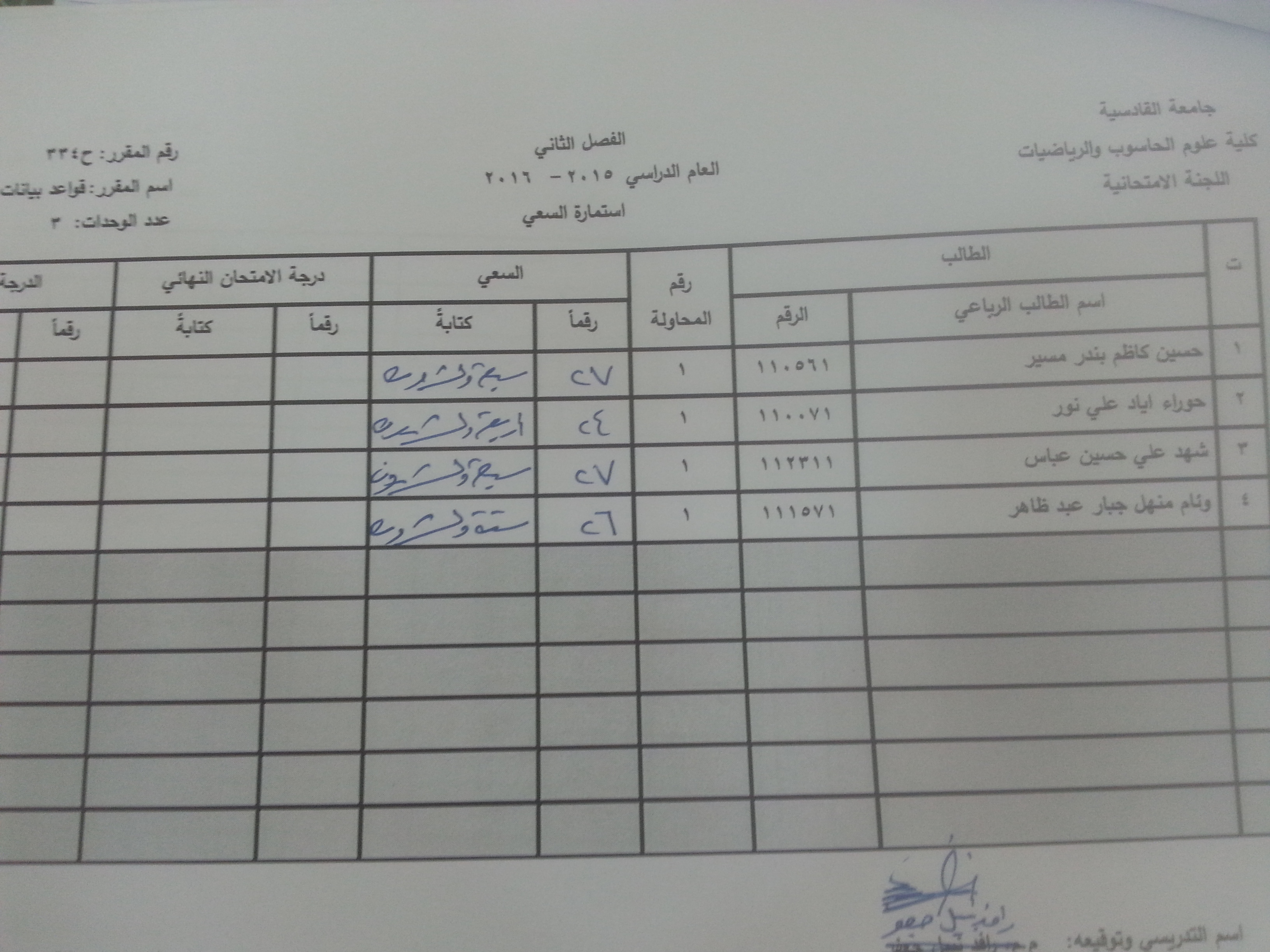 ندرج لكم سعي مادة قواعد بيانات موزعة /قسم الحاسوب