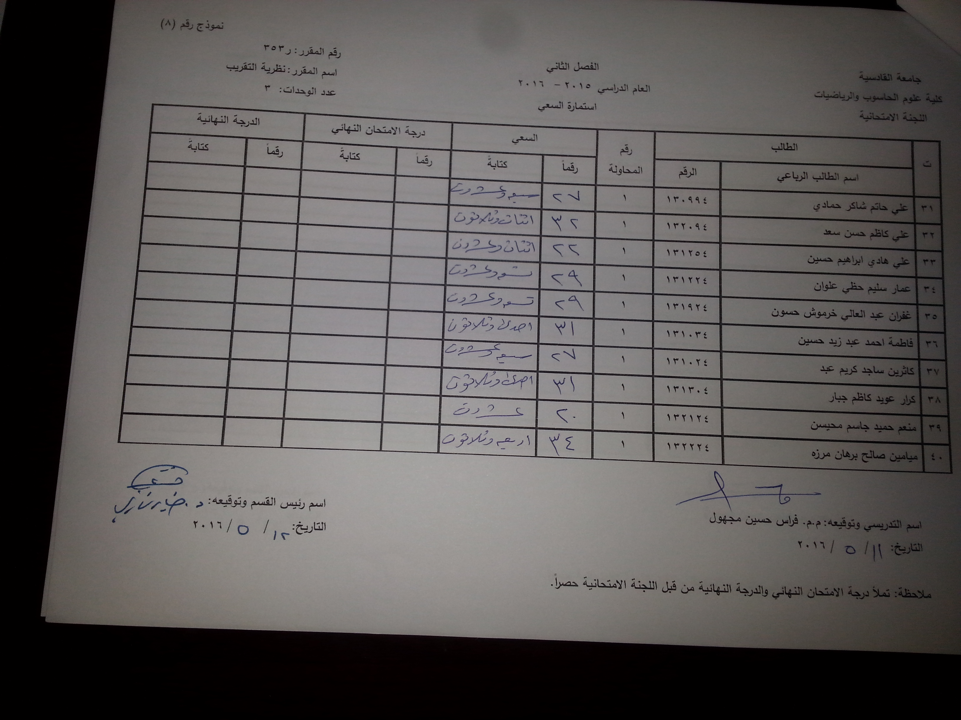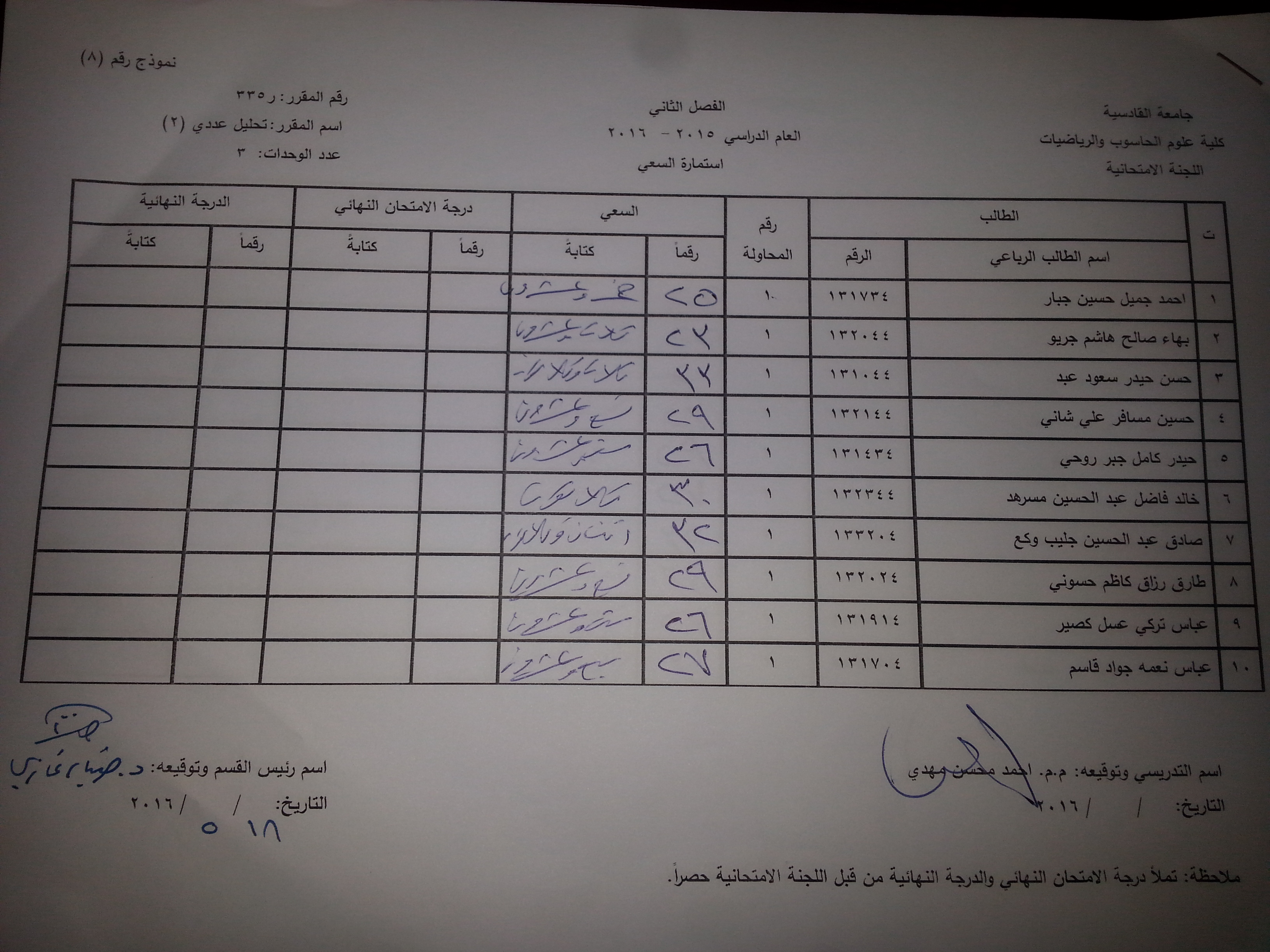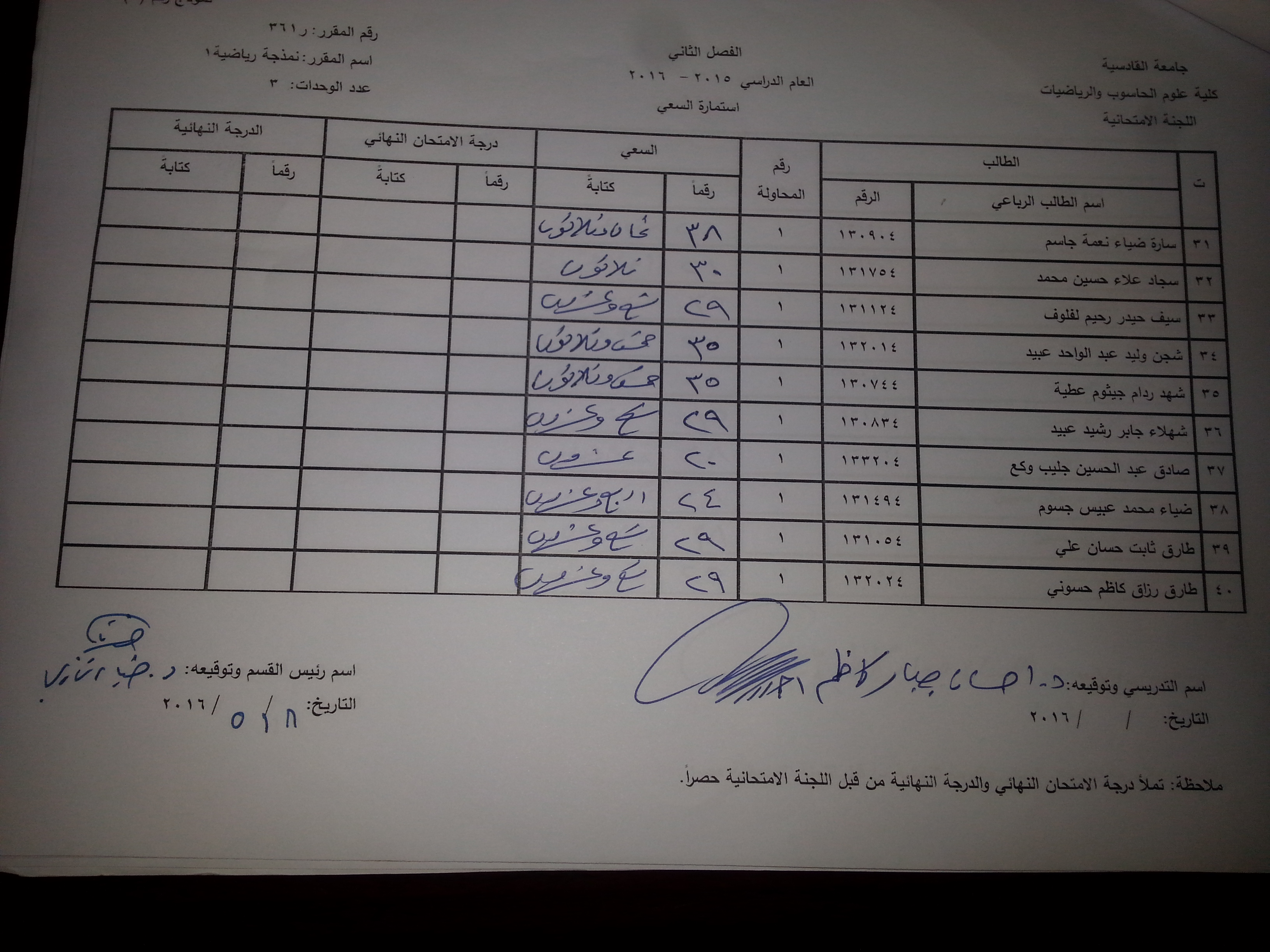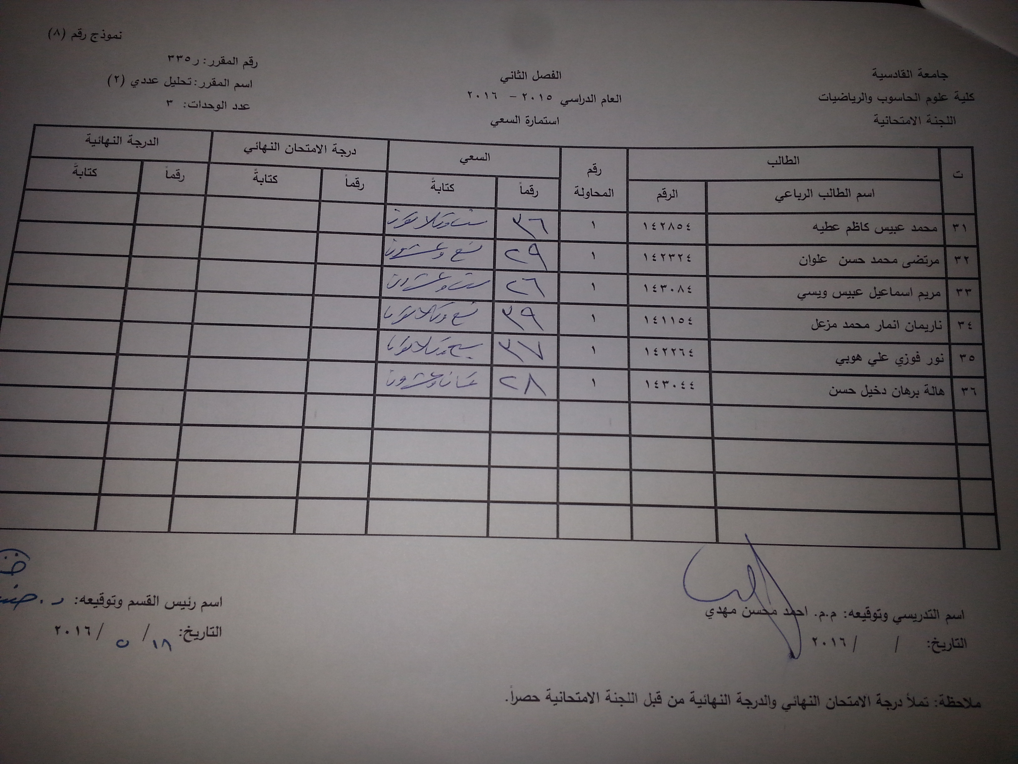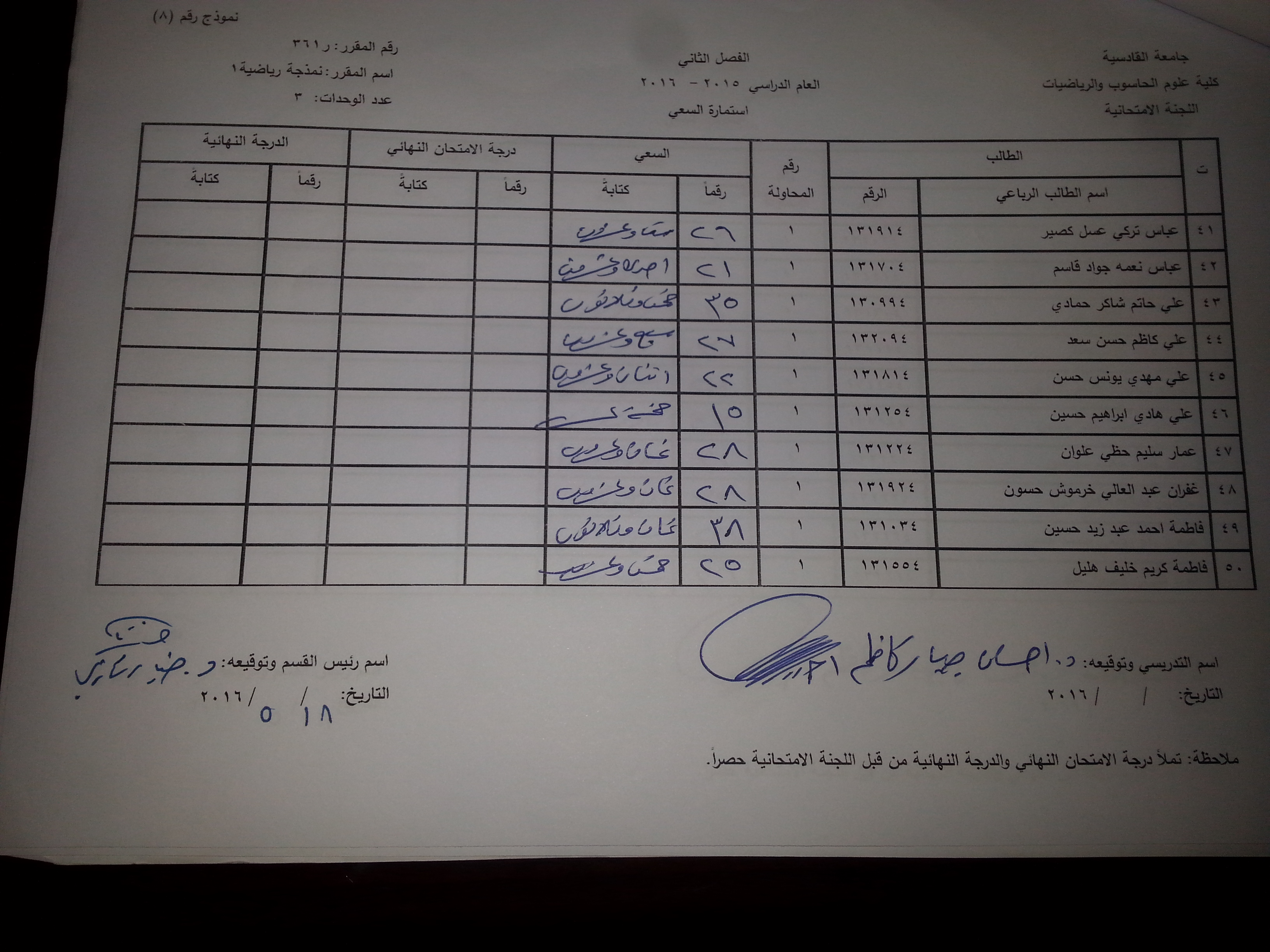ندر لكم ادنا سعي مواد قسم الرياضيات الطبية (تحليل عددي (1)/تحليل عددي (2) / نمذجة رياضية(1)/ نظرية التقريب / نظرية المعادلات التفاضلية /احتمالي ومتغيرات عشوائية )