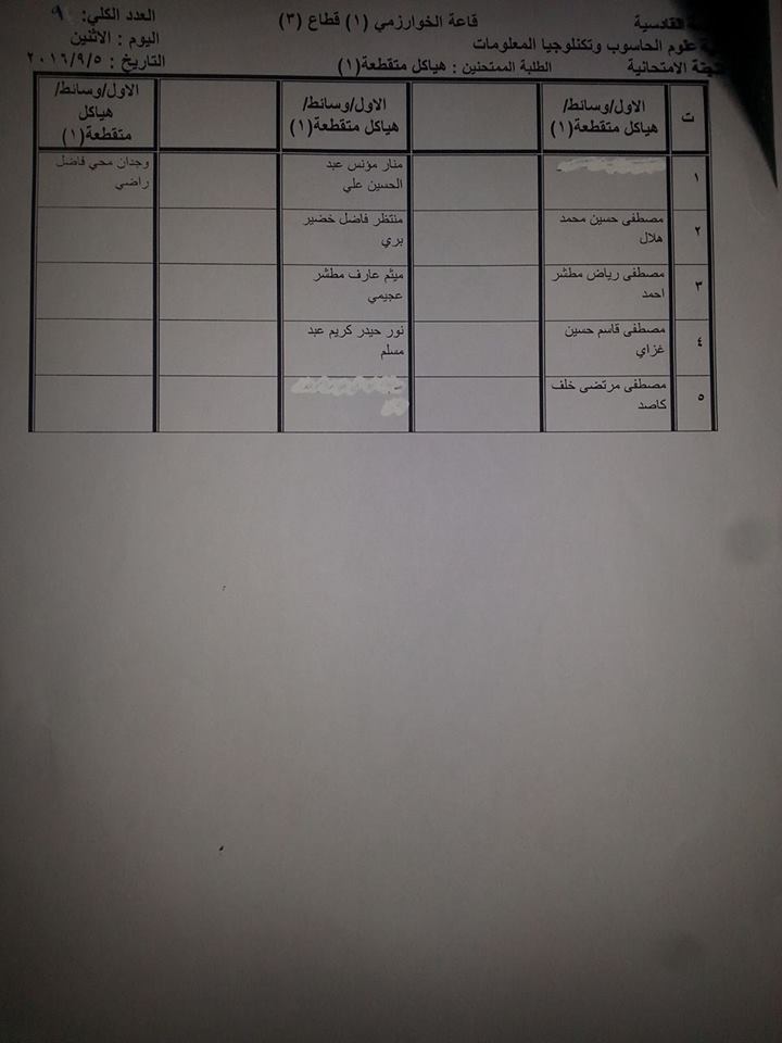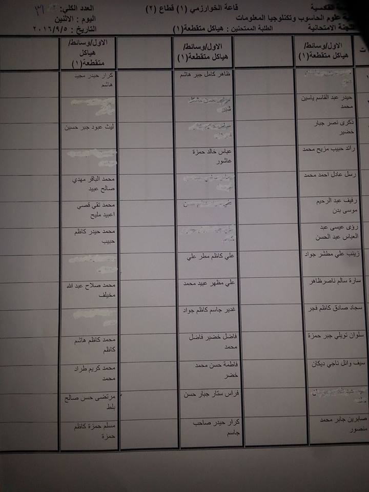 ندرج لكم ادناه خرائط اماكن جلوس الطلبة في القاعات الامتحانية للامتحان النظري والعملي ليوم الاثنين الموافق 5/9/2016 لقسمي الحاسوب والوسائط المتعددة (امتحان الدور الثاني)
