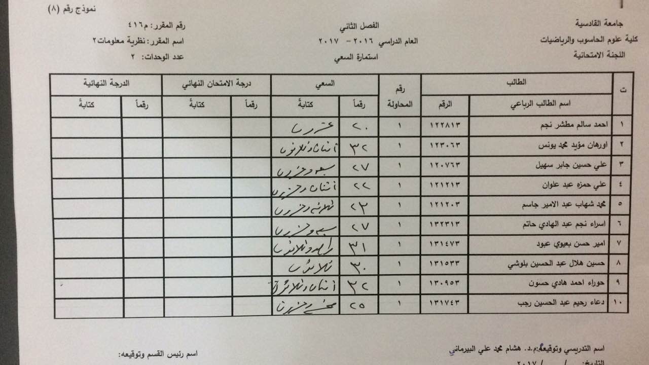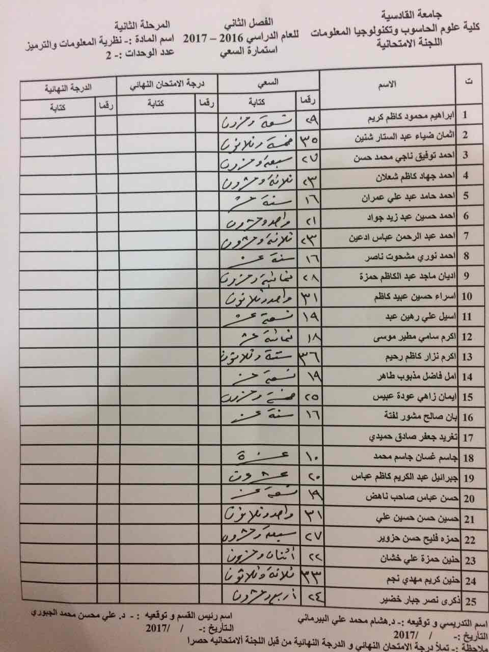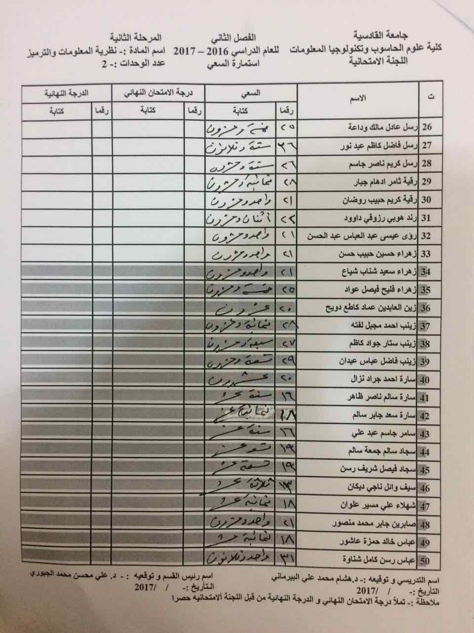 سعي مادة نظرية المعلومات والترميز قسم الوسائط المتعددة  وقسم الاحصاء والمعلوماتية