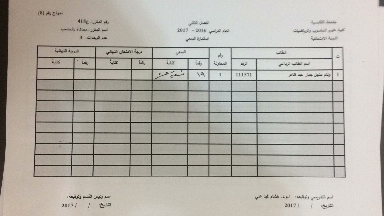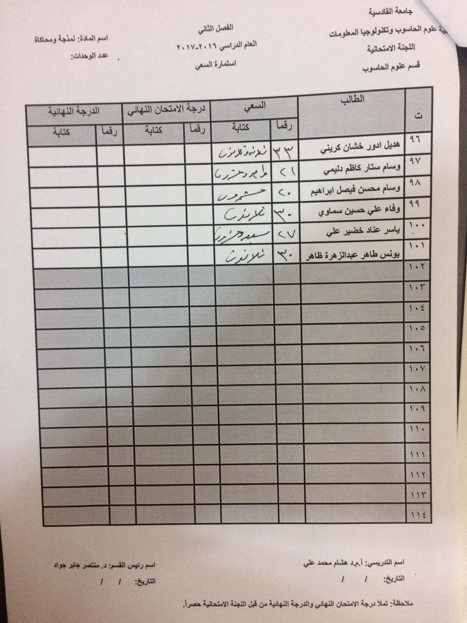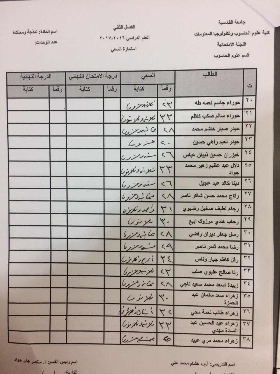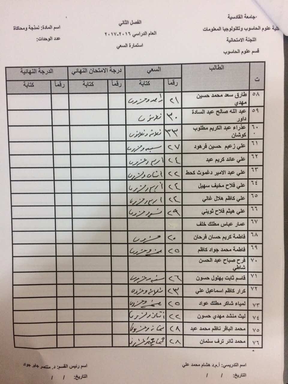 سعي مادة النمذجة والمحاكاة قسم الحاسوب