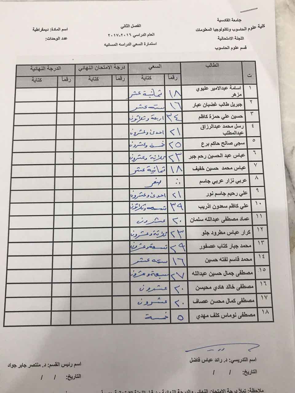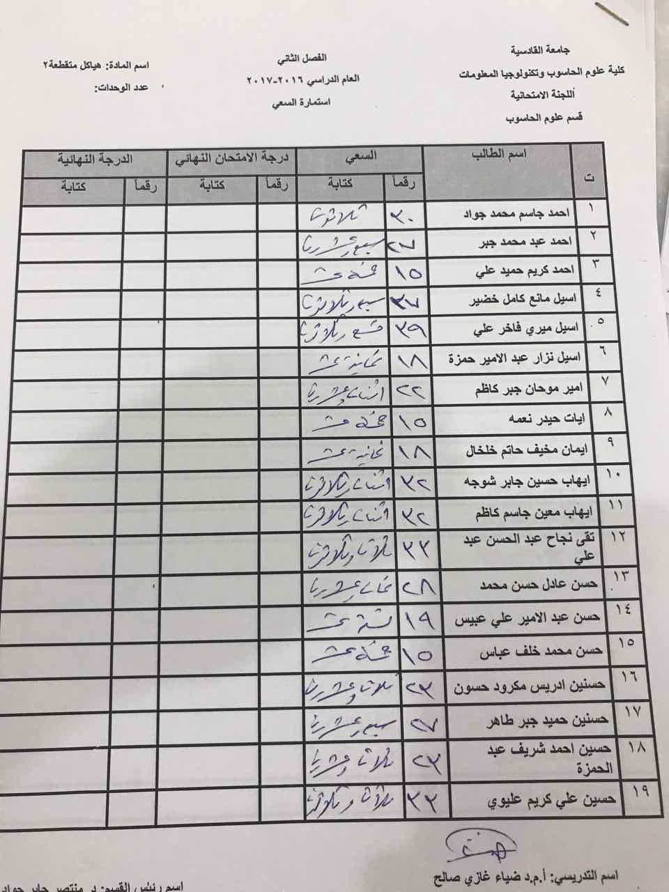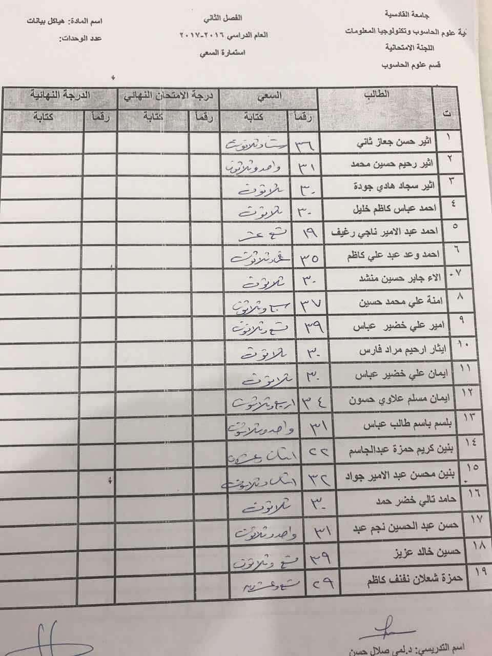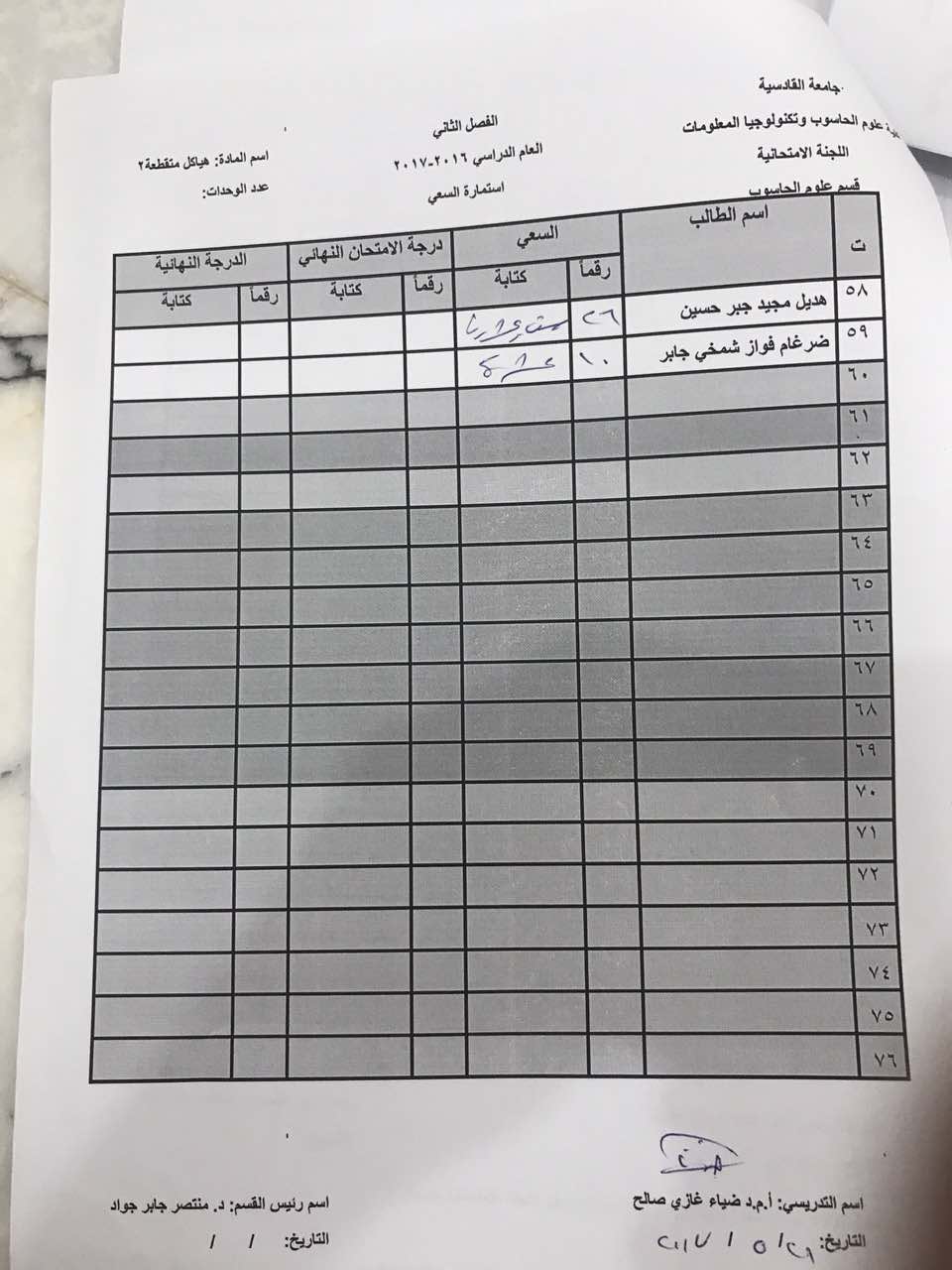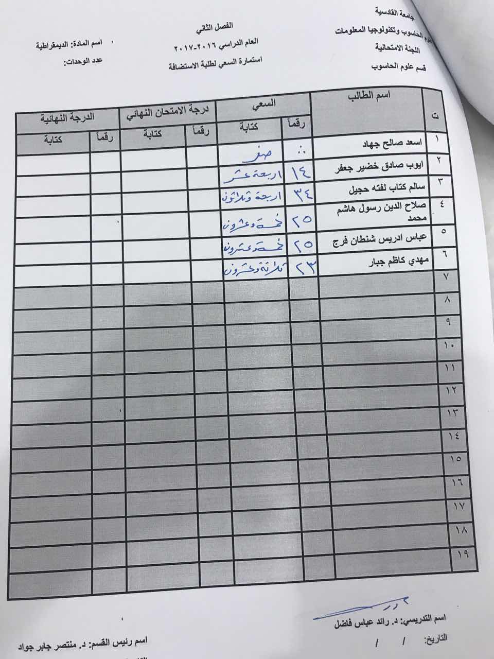 سعي مادة ( الديمقراطية ، تنظيم الحاسوب ، احصاء، برمجة 2،مترجمات 2، ذكاء اصطناعي ،معمارية الحاسب، نمذجة ومحاكاة، هياكل بيانات 2،احتمالية ومتغيرات عشوئية 2، هياكل بيانات ، تشفير،هياكل متقطعة ،