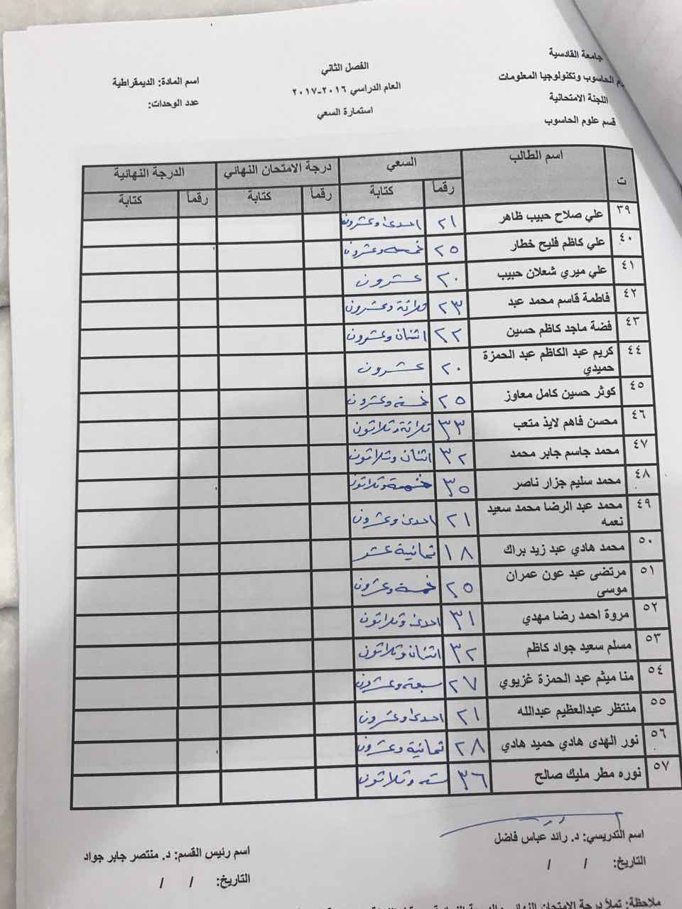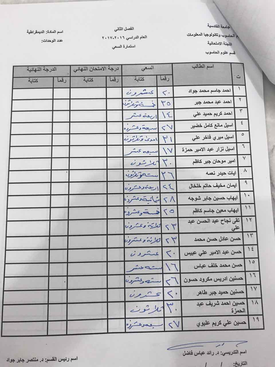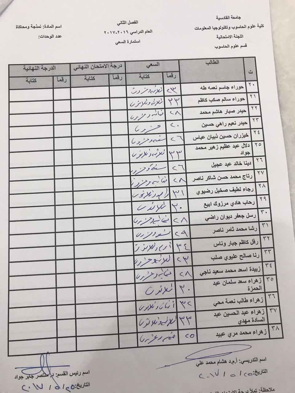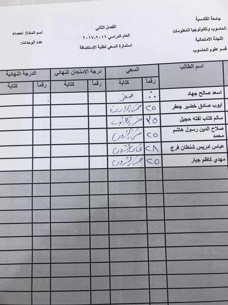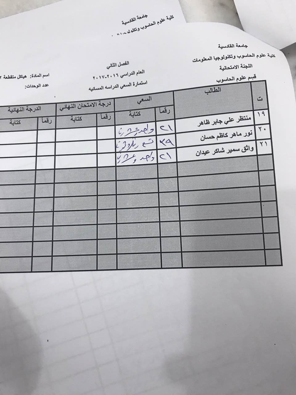 سعي مادة ( الديمقراطية ، تنظيم الحاسوب ، احصاء، برمجة 2،مترجمات 2، ذكاء اصطناعي ،معمارية الحاسب، نمذجة ومحاكاة، هياكل بيانات 2،احتمالية ومتغيرات عشوئية 2، هياكل بيانات ، تشفير،هياكل متقطعة ،