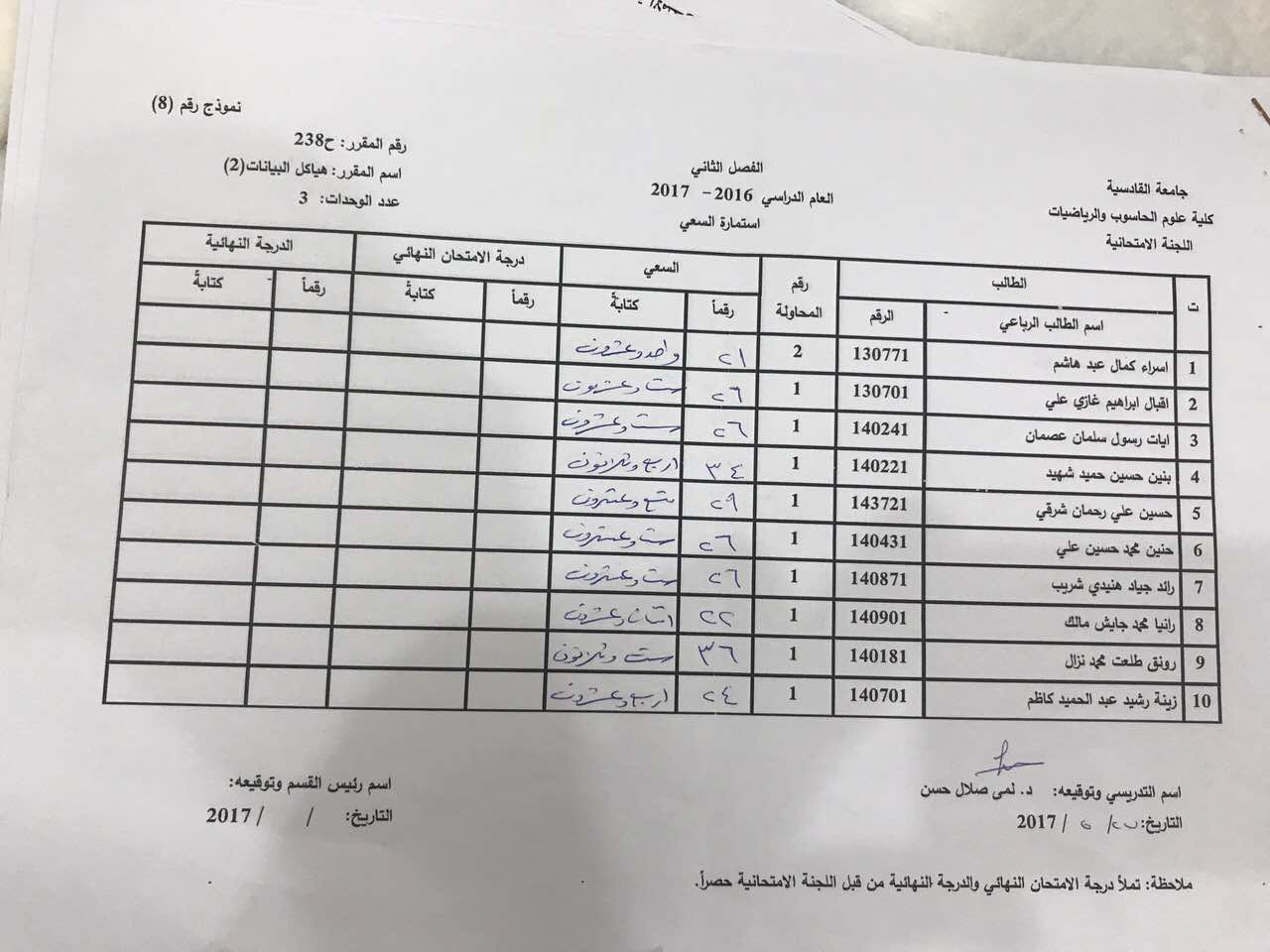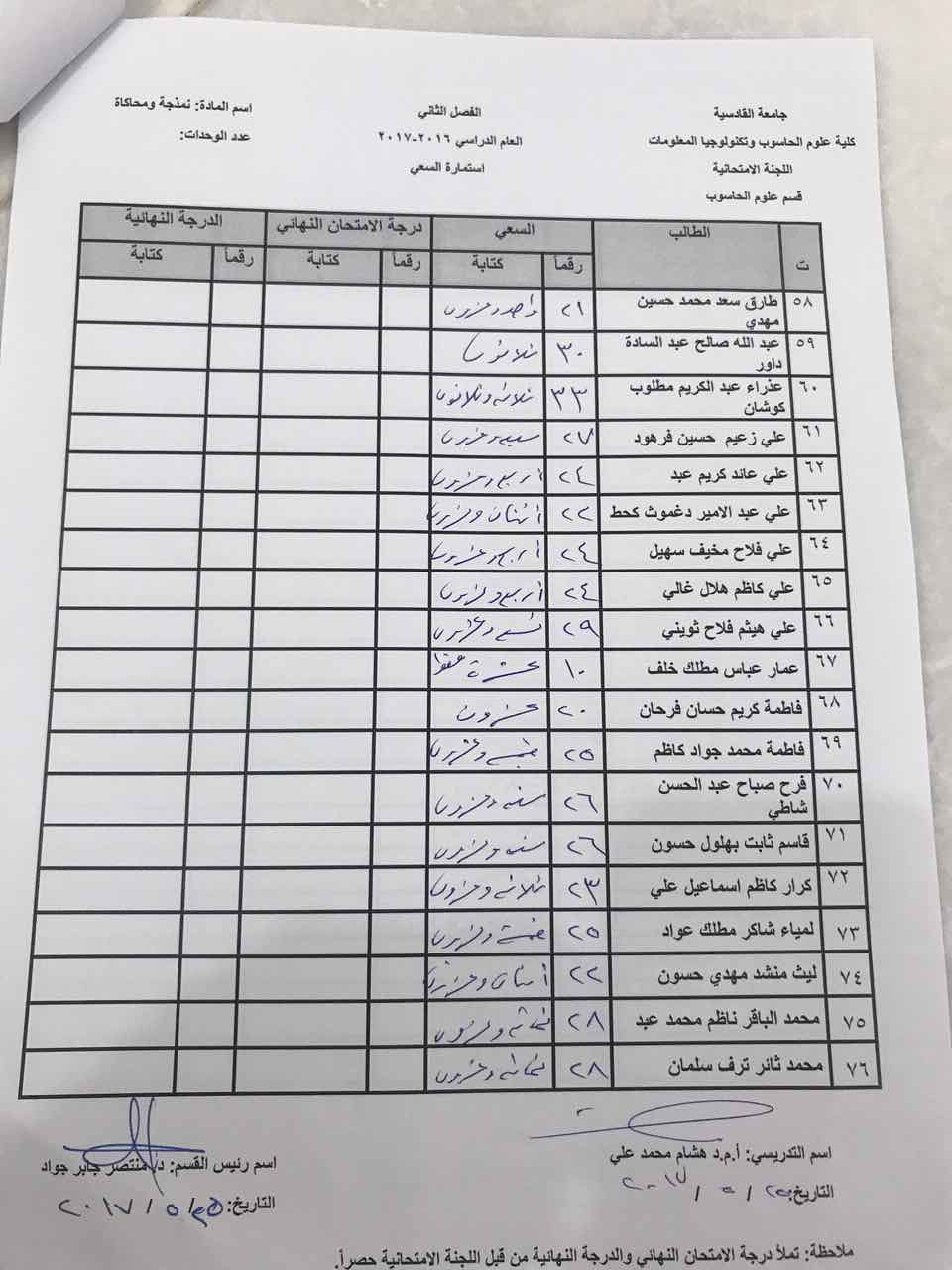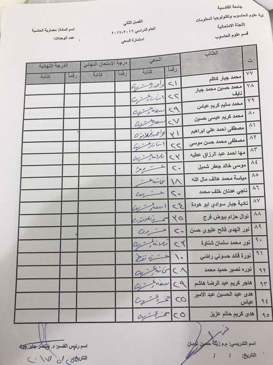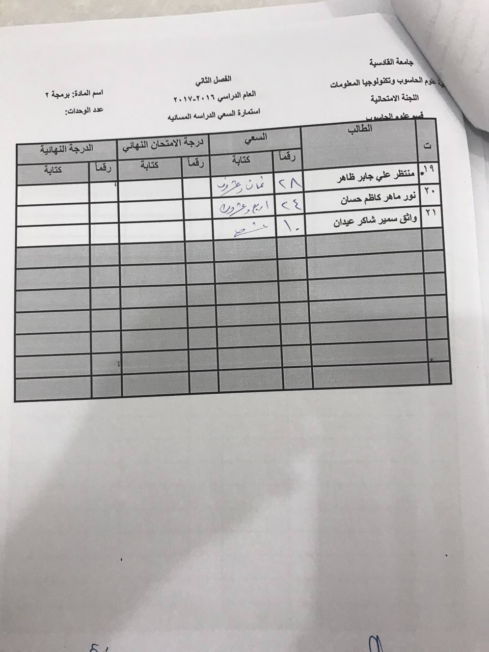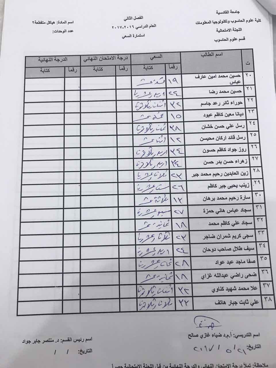 سعي مادة ( الديمقراطية ، تنظيم الحاسوب ، احصاء، برمجة 2،مترجمات 2، ذكاء اصطناعي ،معمارية الحاسب، نمذجة ومحاكاة، هياكل بيانات 2،احتمالية ومتغيرات عشوئية 2، هياكل بيانات ، تشفير،هياكل متقطعة ،