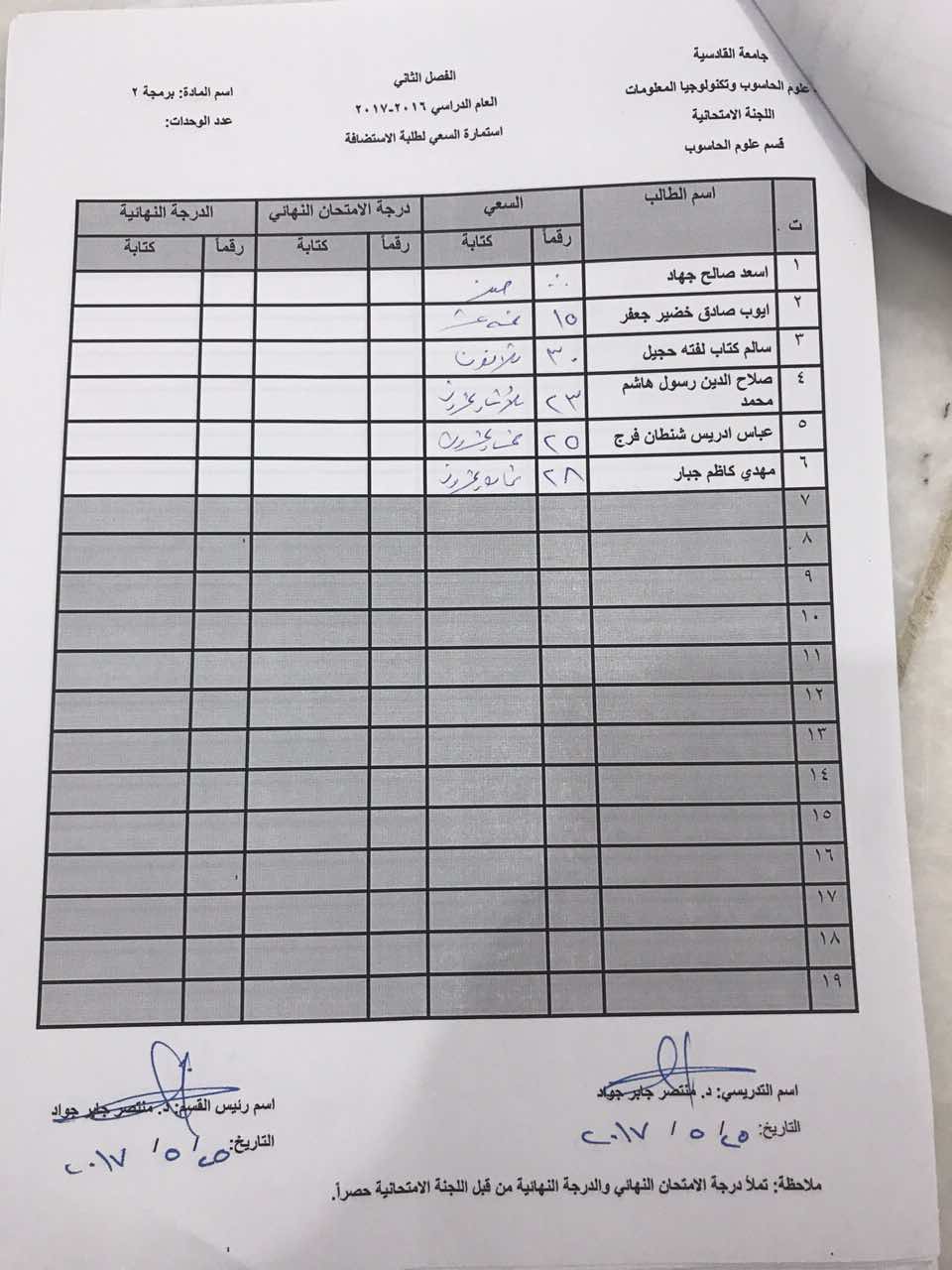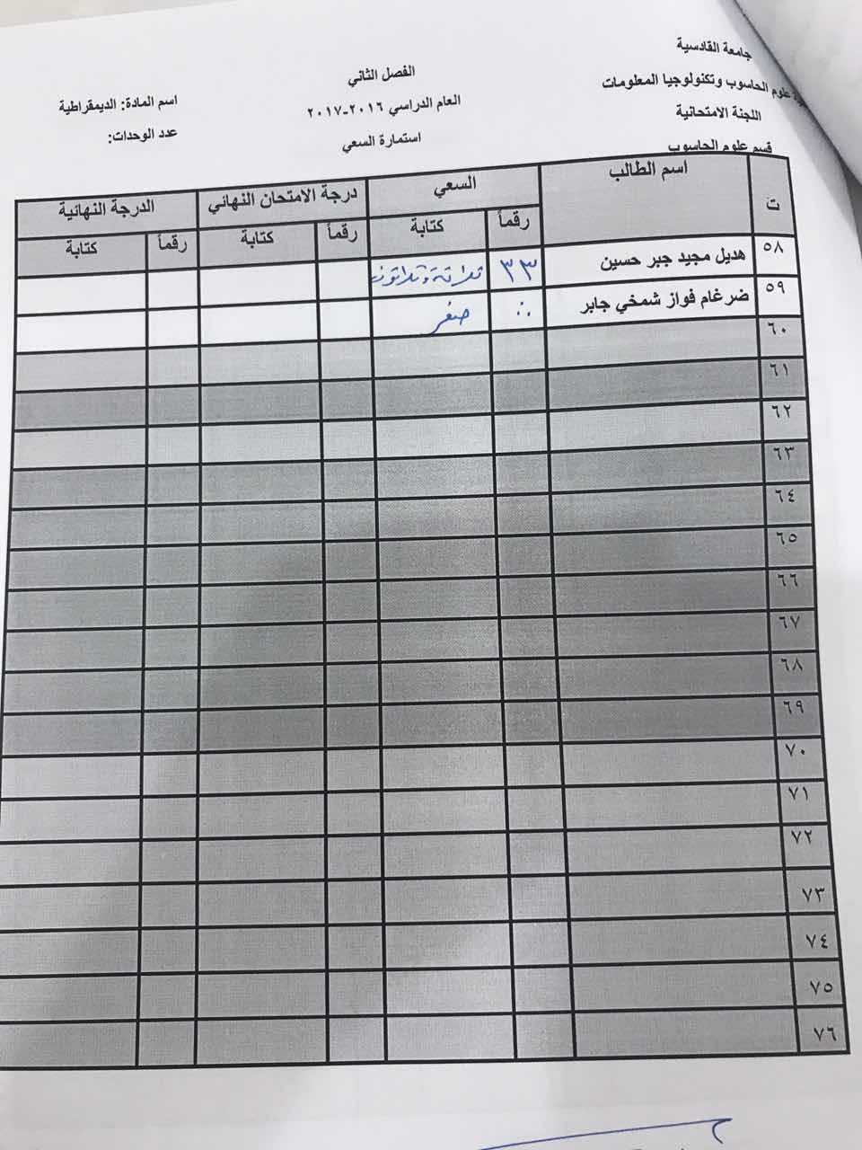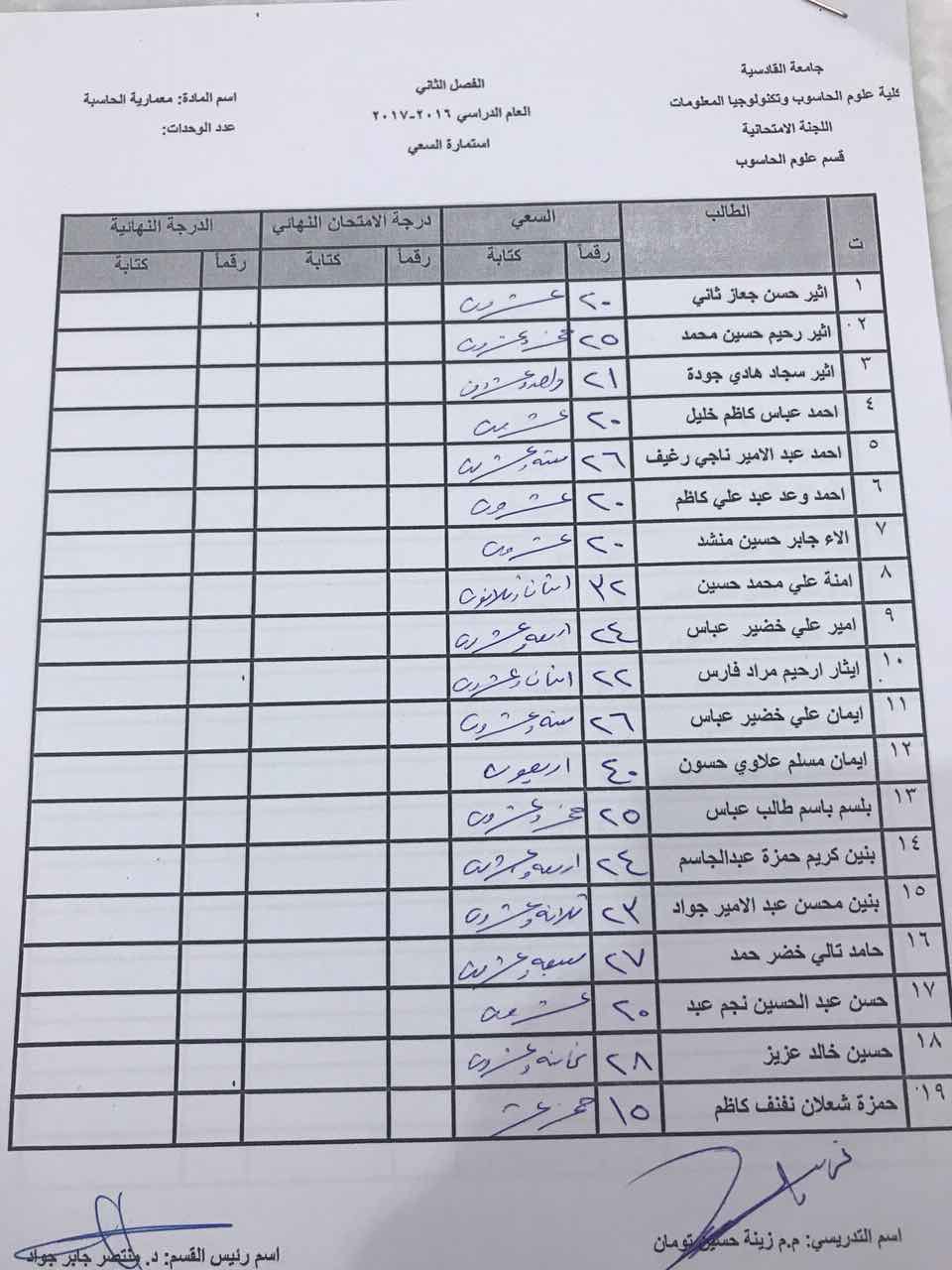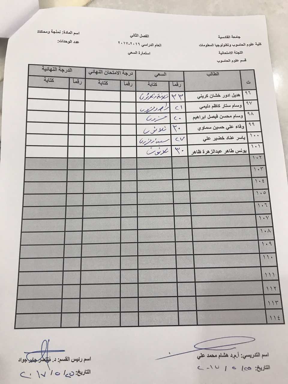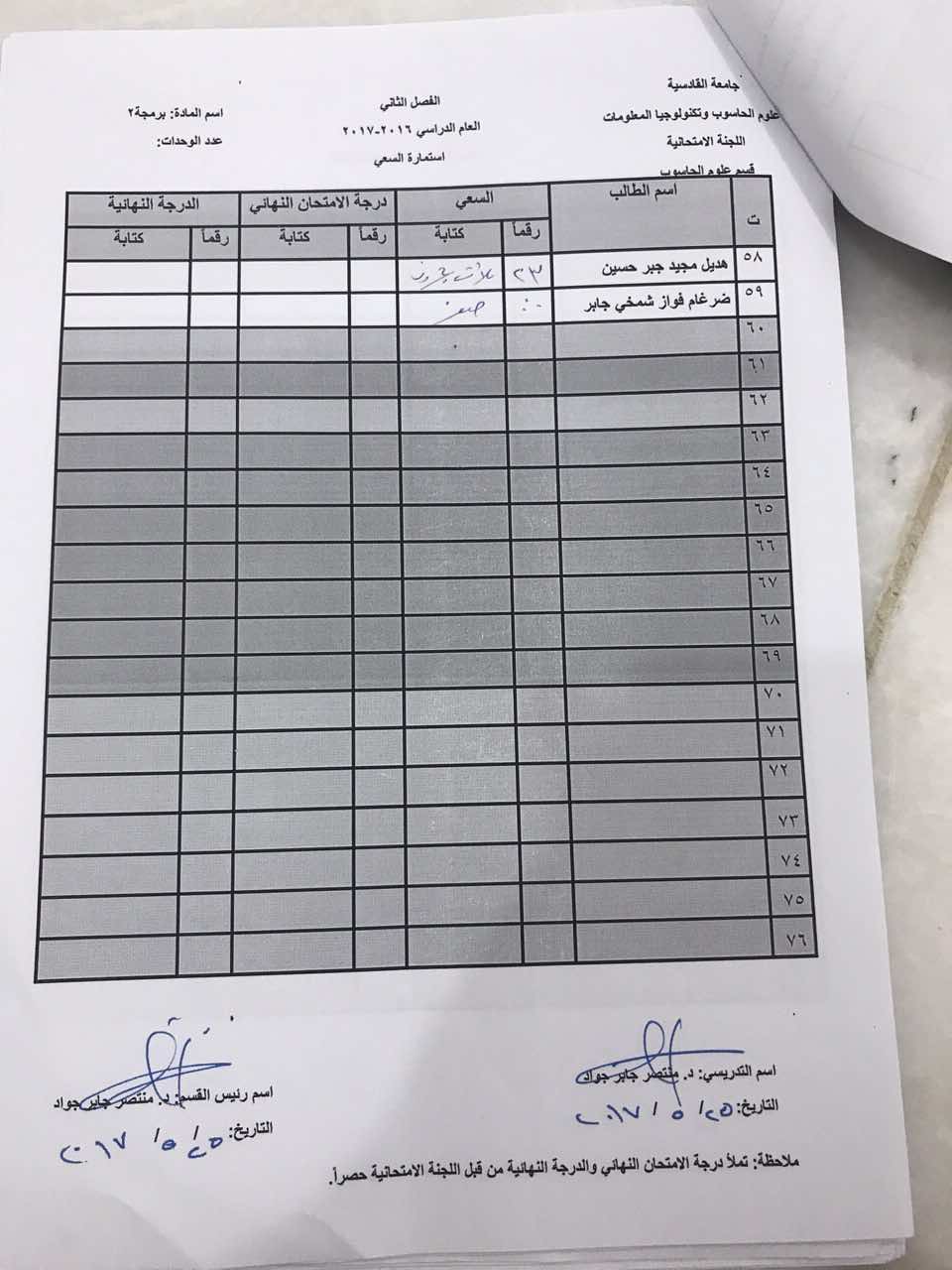 سعي مادة ( الديمقراطية ، تنظيم الحاسوب ، احصاء، برمجة 2،مترجمات 2، ذكاء اصطناعي ،معمارية الحاسب، نمذجة ومحاكاة، هياكل بيانات 2،احتمالية ومتغيرات عشوئية 2، هياكل بيانات ، تشفير،هياكل متقطعة ،