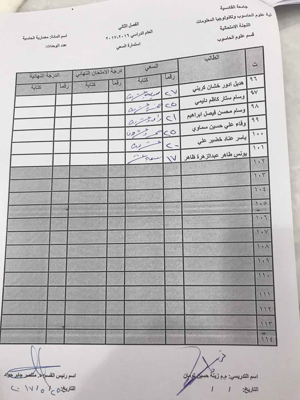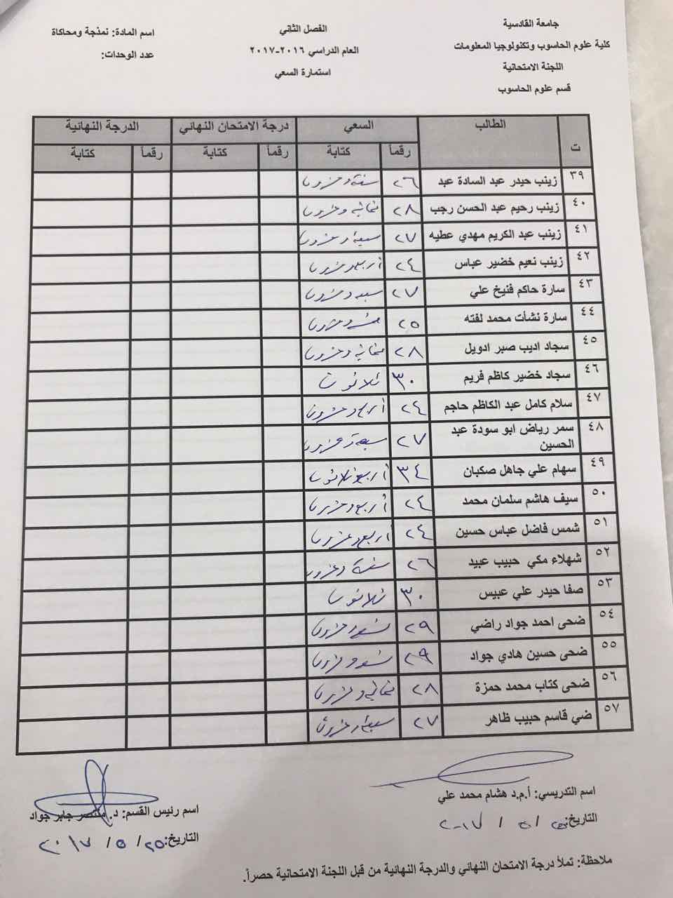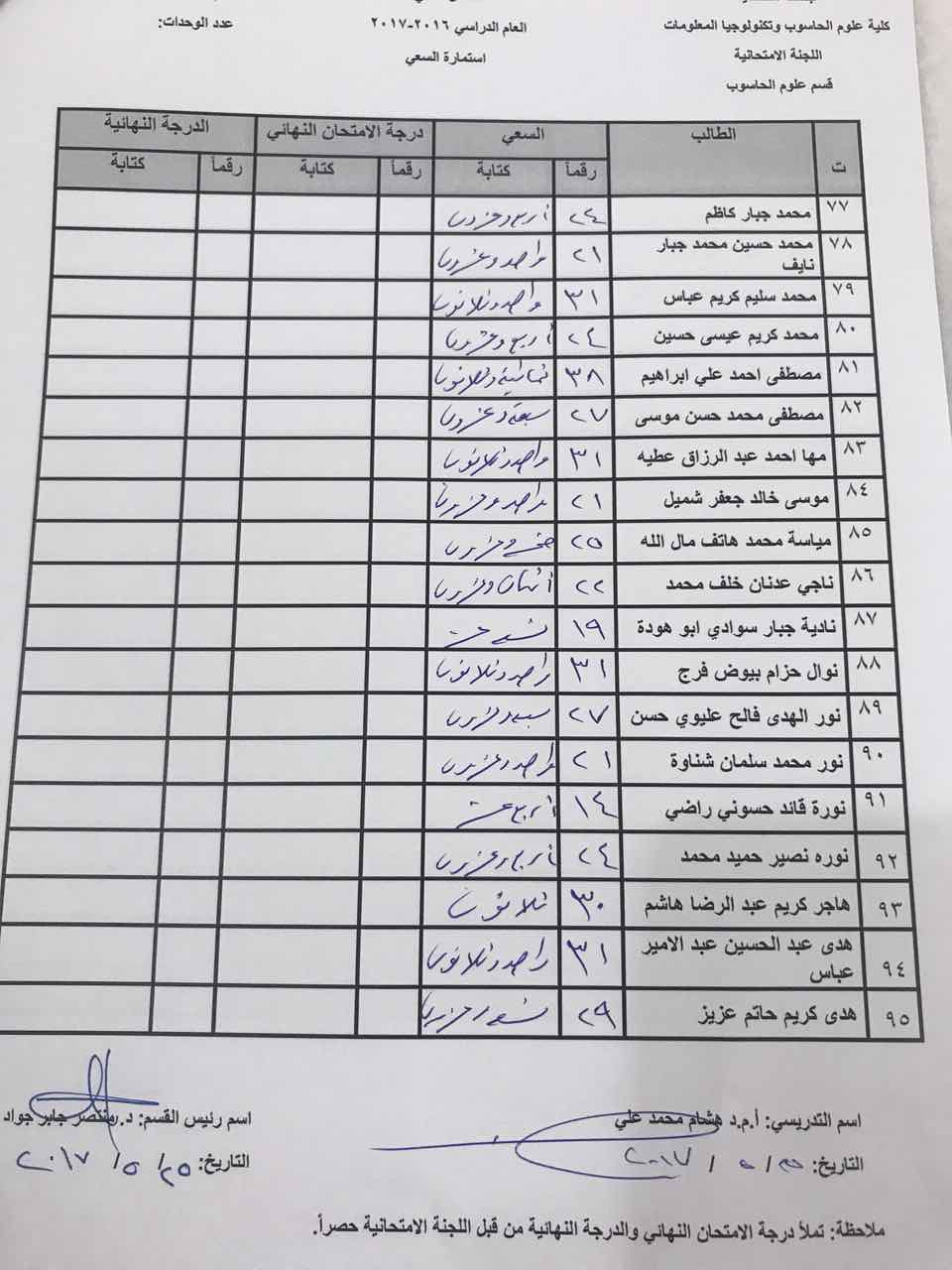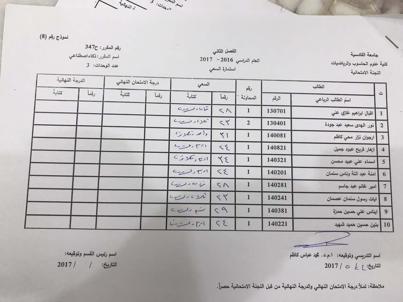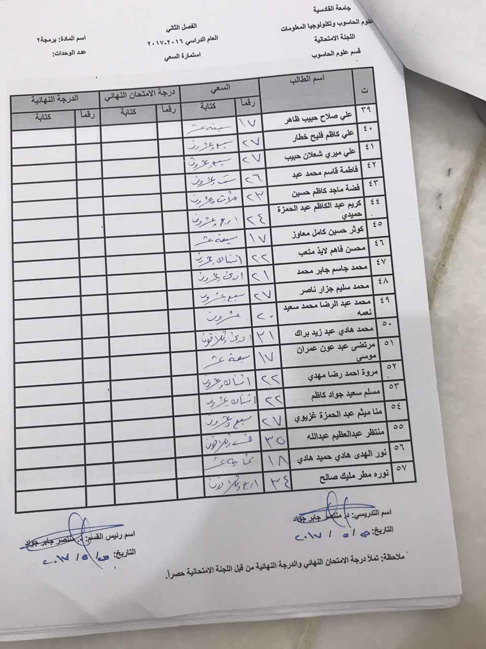 سعي مادة ( الديمقراطية ، تنظيم الحاسوب ، احصاء، برمجة 2،مترجمات 2، ذكاء اصطناعي ،معمارية الحاسب، نمذجة ومحاكاة، هياكل بيانات 2،احتمالية ومتغيرات عشوئية 2، هياكل بيانات ، تشفير،هياكل متقطعة ،