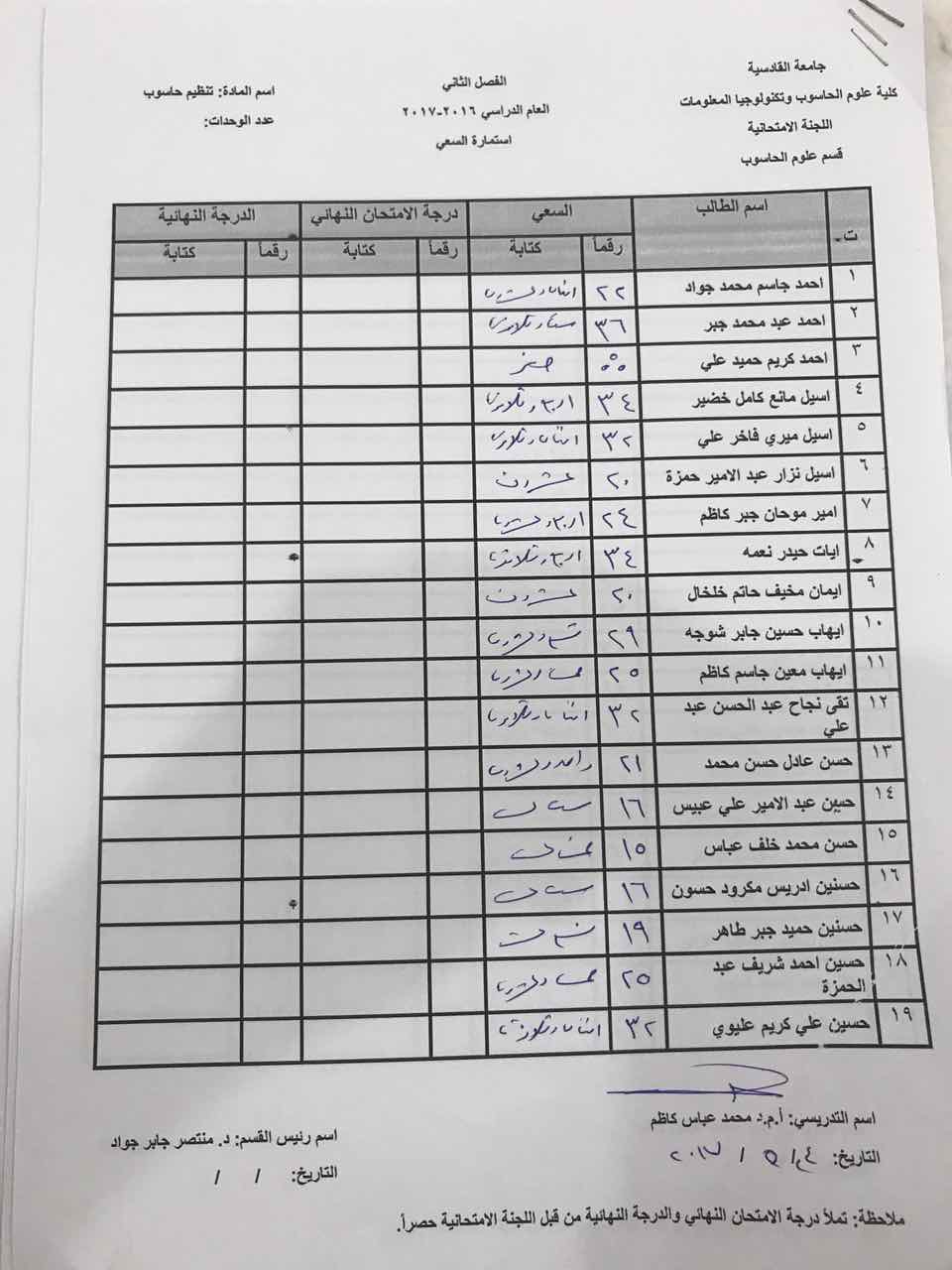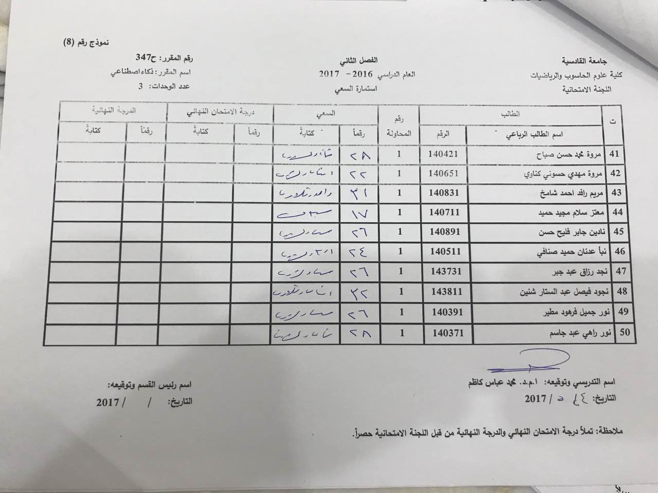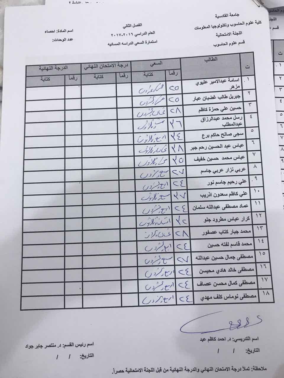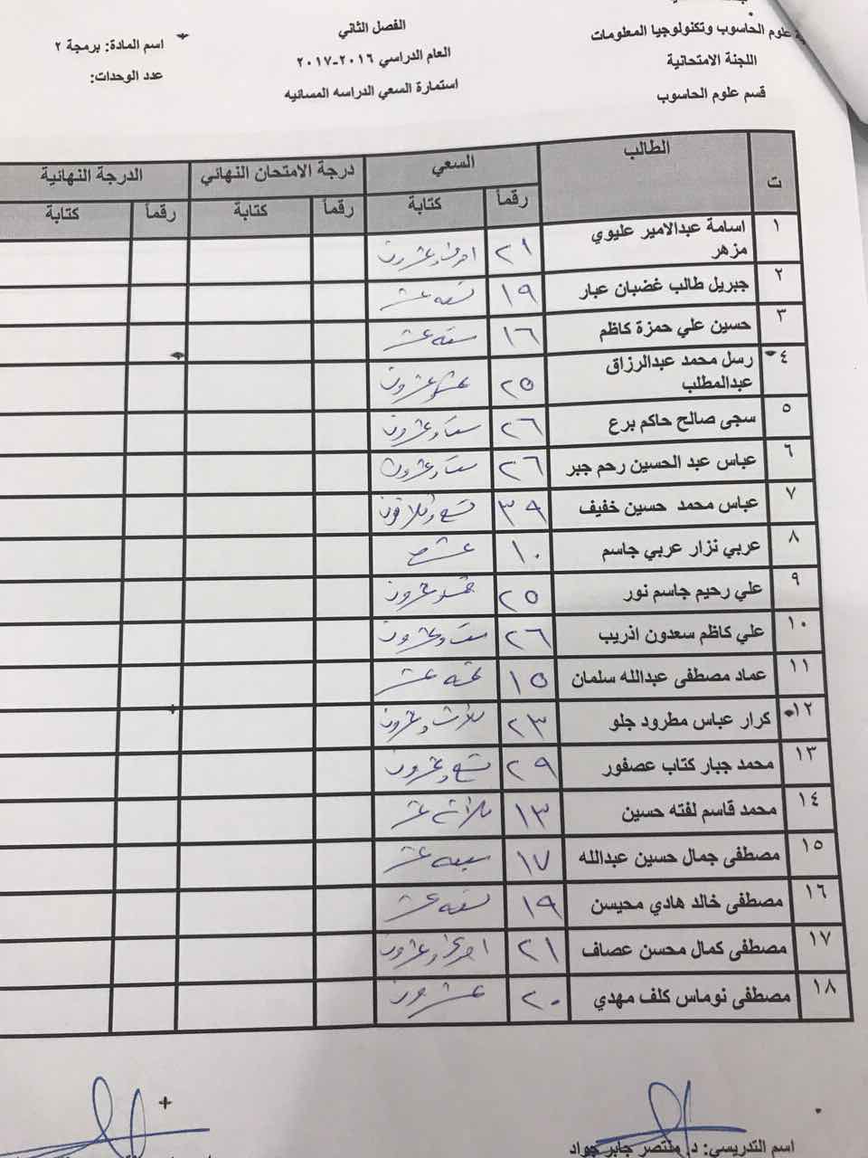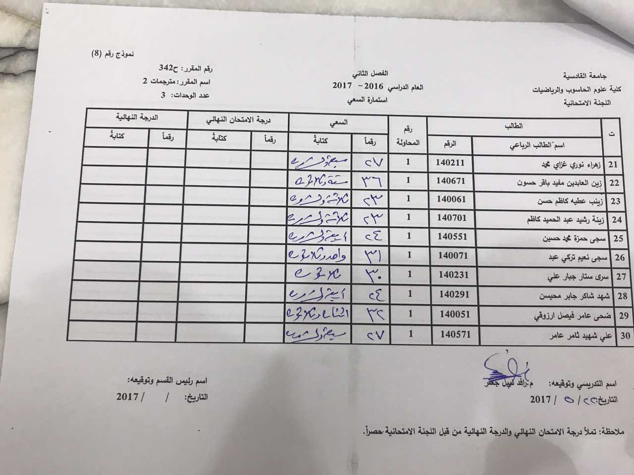 سعي مادة ( الديمقراطية ، تنظيم الحاسوب ، احصاء، برمجة 2،مترجمات 2، ذكاء اصطناعي ،معمارية الحاسب، نمذجة ومحاكاة، هياكل بيانات 2،احتمالية ومتغيرات عشوئية 2، هياكل بيانات ، تشفير،هياكل متقطعة ،