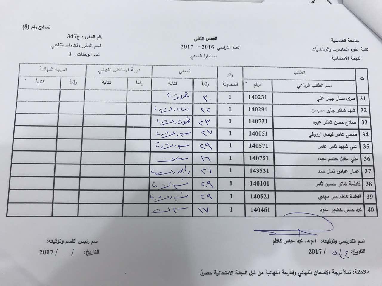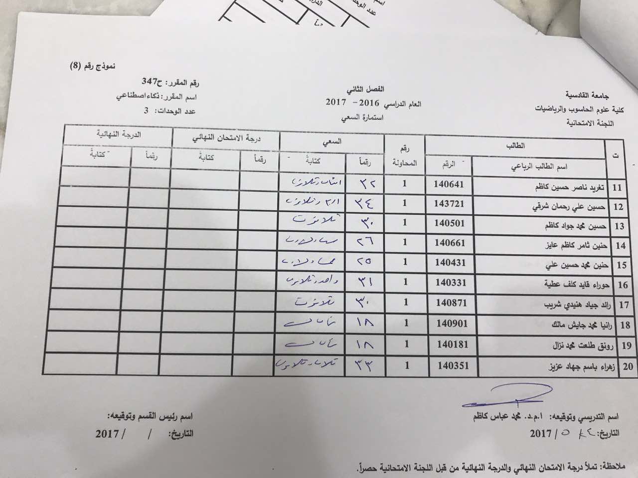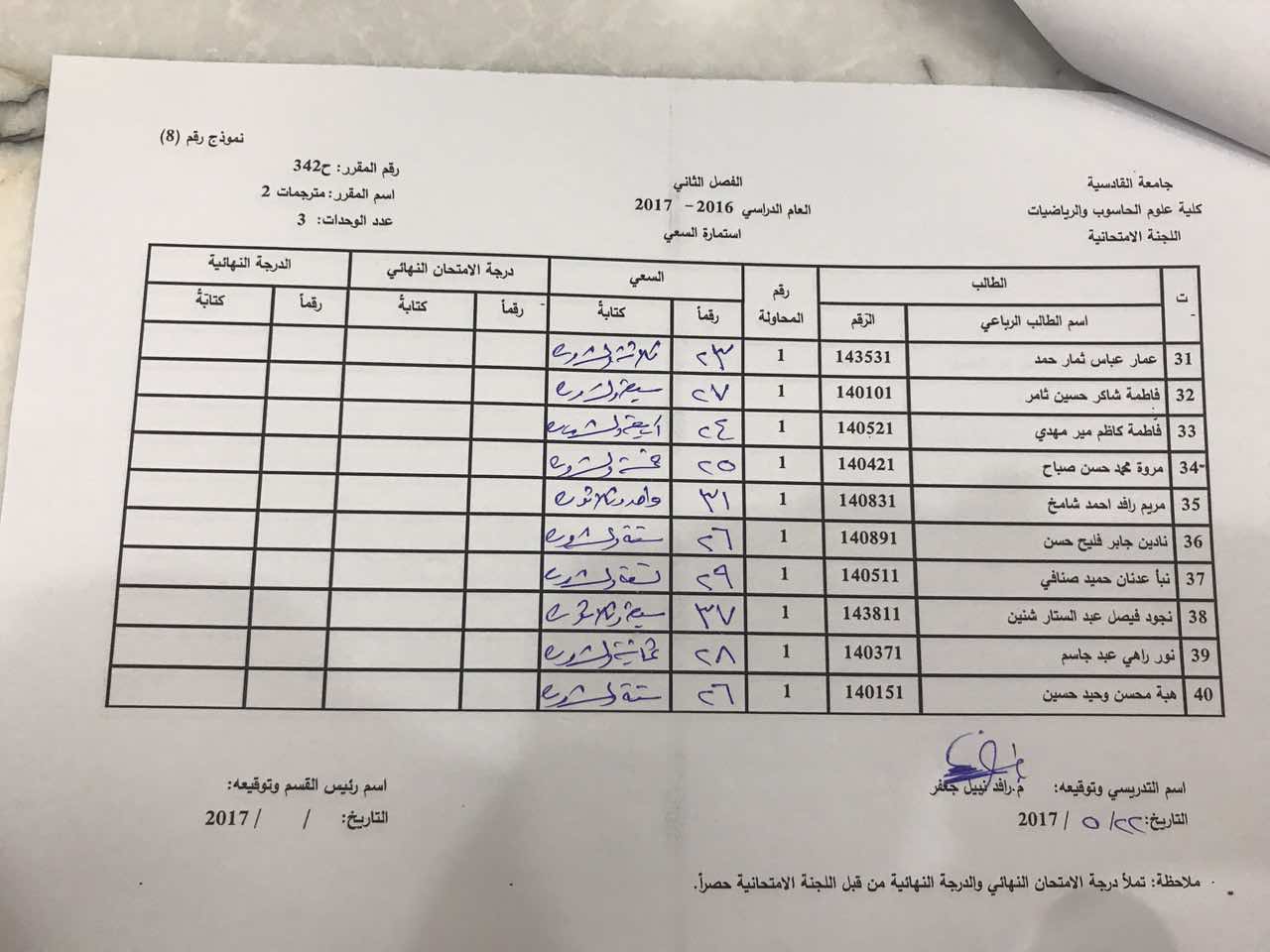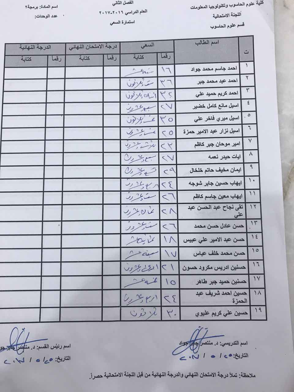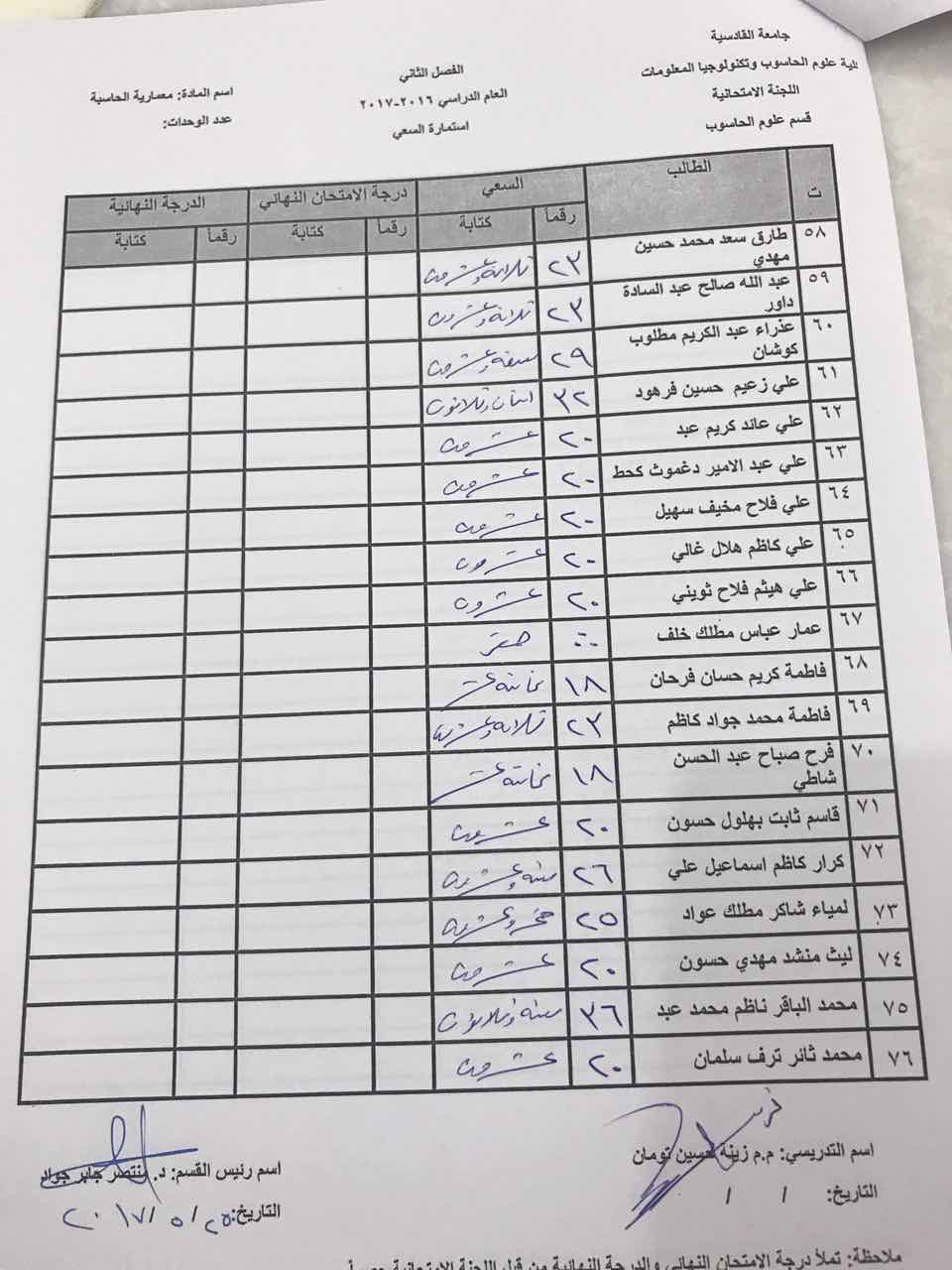 سعي مادة ( الديمقراطية ، تنظيم الحاسوب ، احصاء، برمجة 2،مترجمات 2، ذكاء اصطناعي ،معمارية الحاسب، نمذجة ومحاكاة، هياكل بيانات 2،احتمالية ومتغيرات عشوئية 2، هياكل بيانات ، تشفير،هياكل متقطعة ،