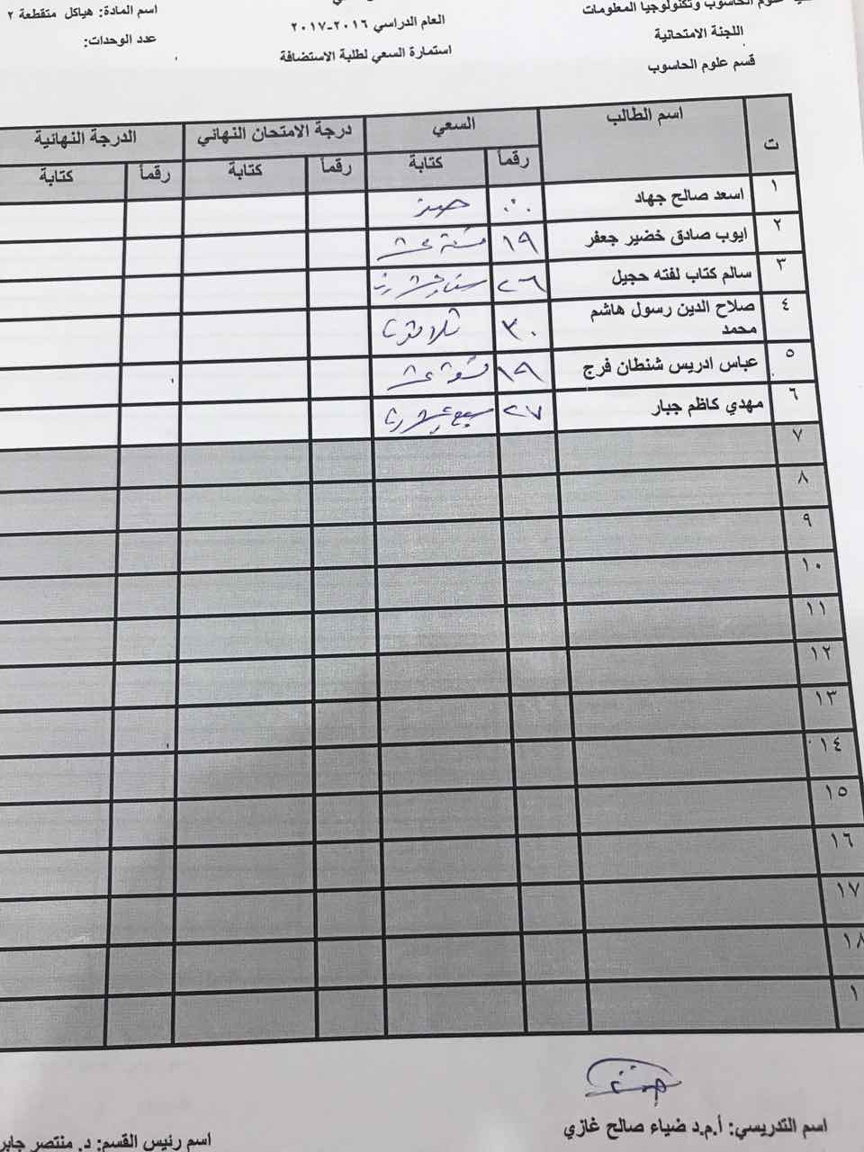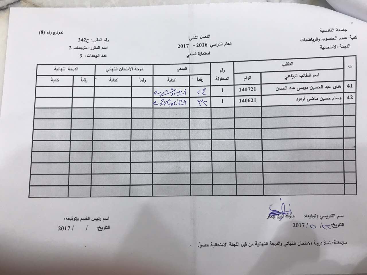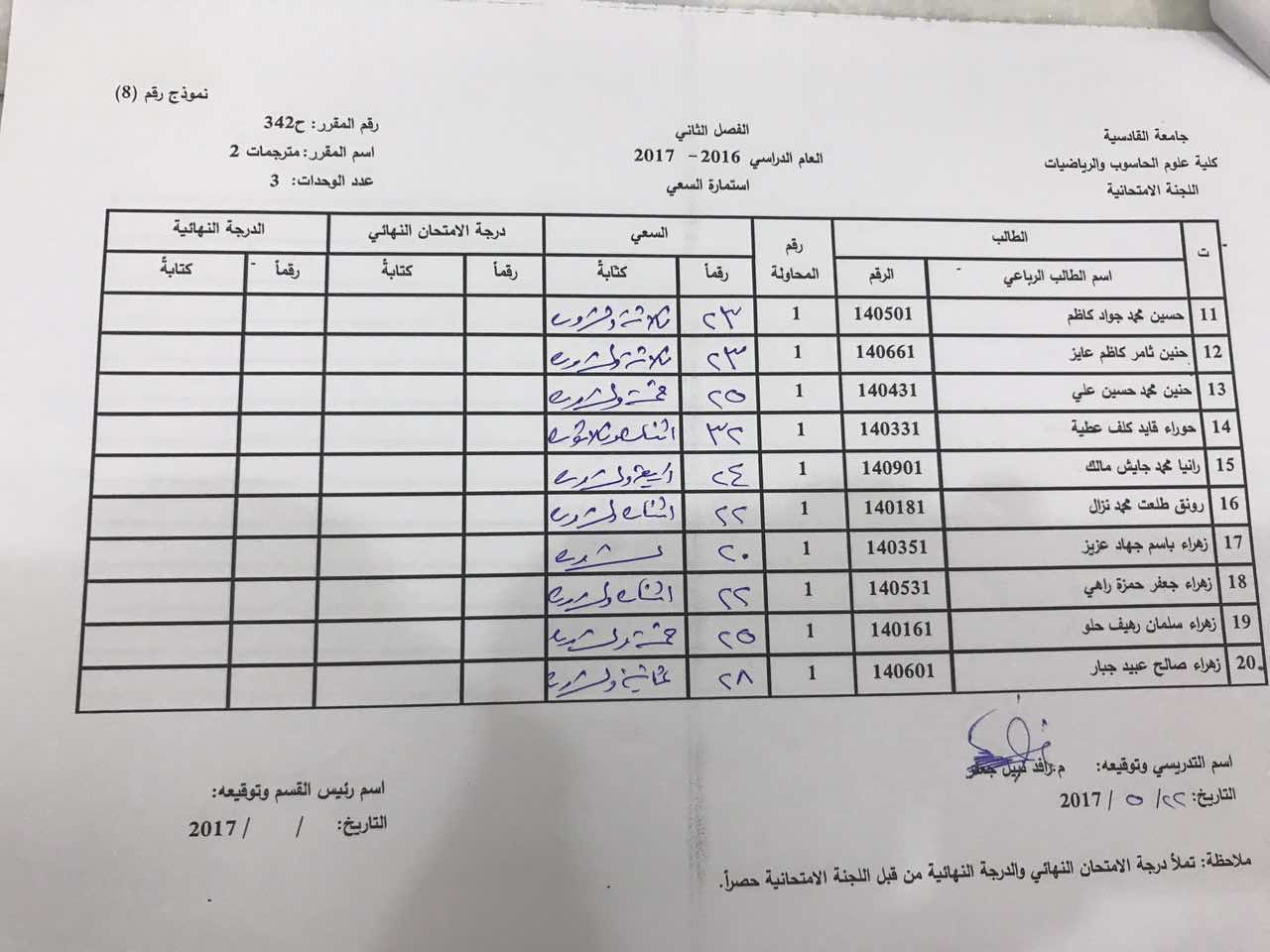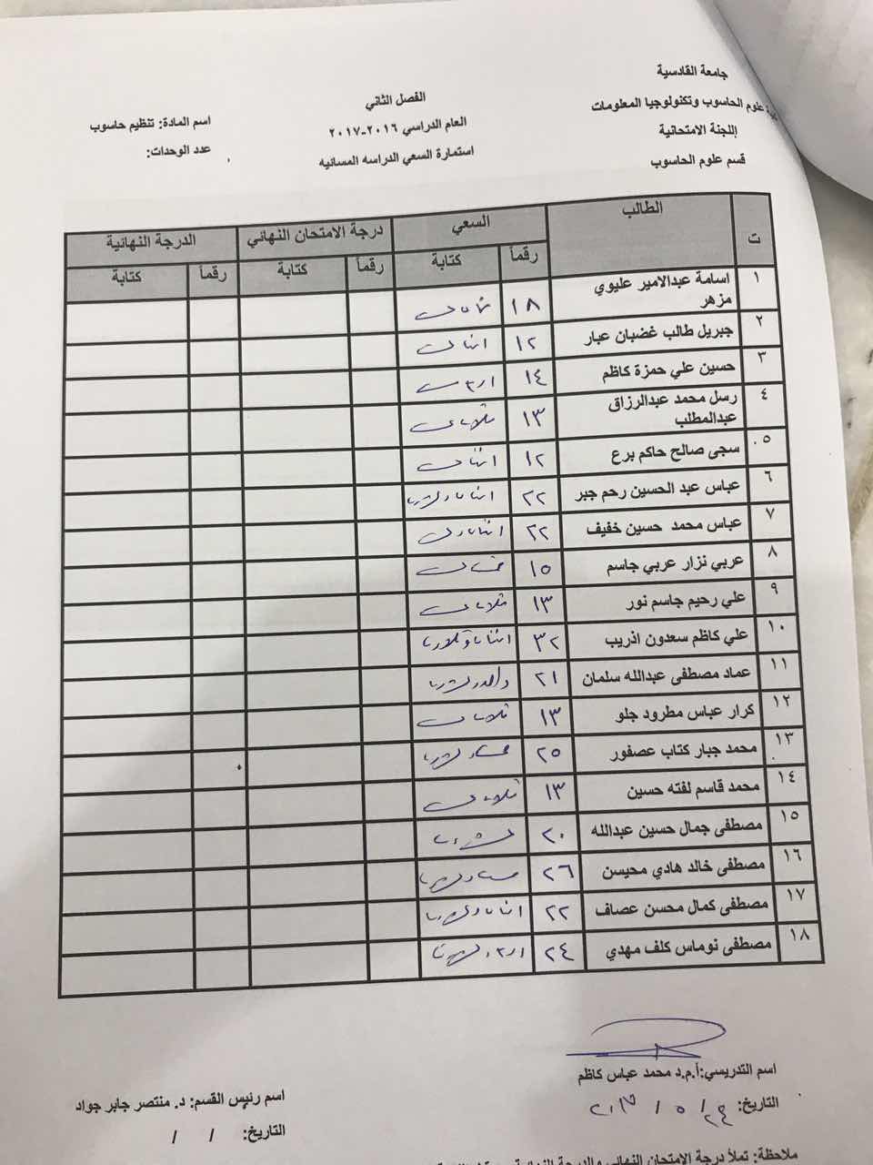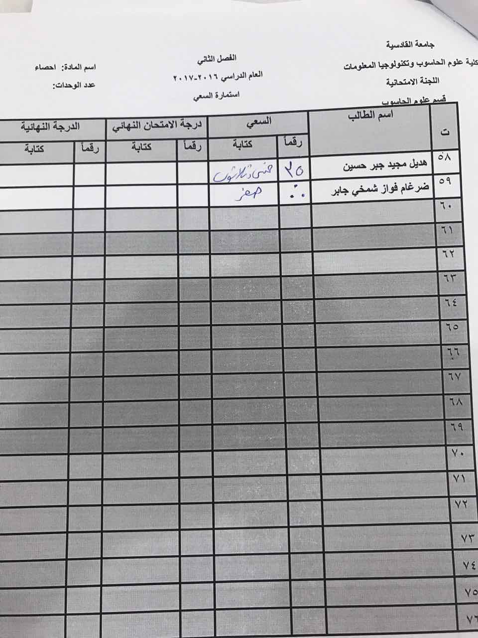 سعي مادة ( الديمقراطية ، تنظيم الحاسوب ، احصاء، برمجة 2،مترجمات 2، ذكاء اصطناعي ،معمارية الحاسب، نمذجة ومحاكاة، هياكل بيانات 2،احتمالية ومتغيرات عشوئية 2، هياكل بيانات ، تشفير،هياكل متقطعة ،