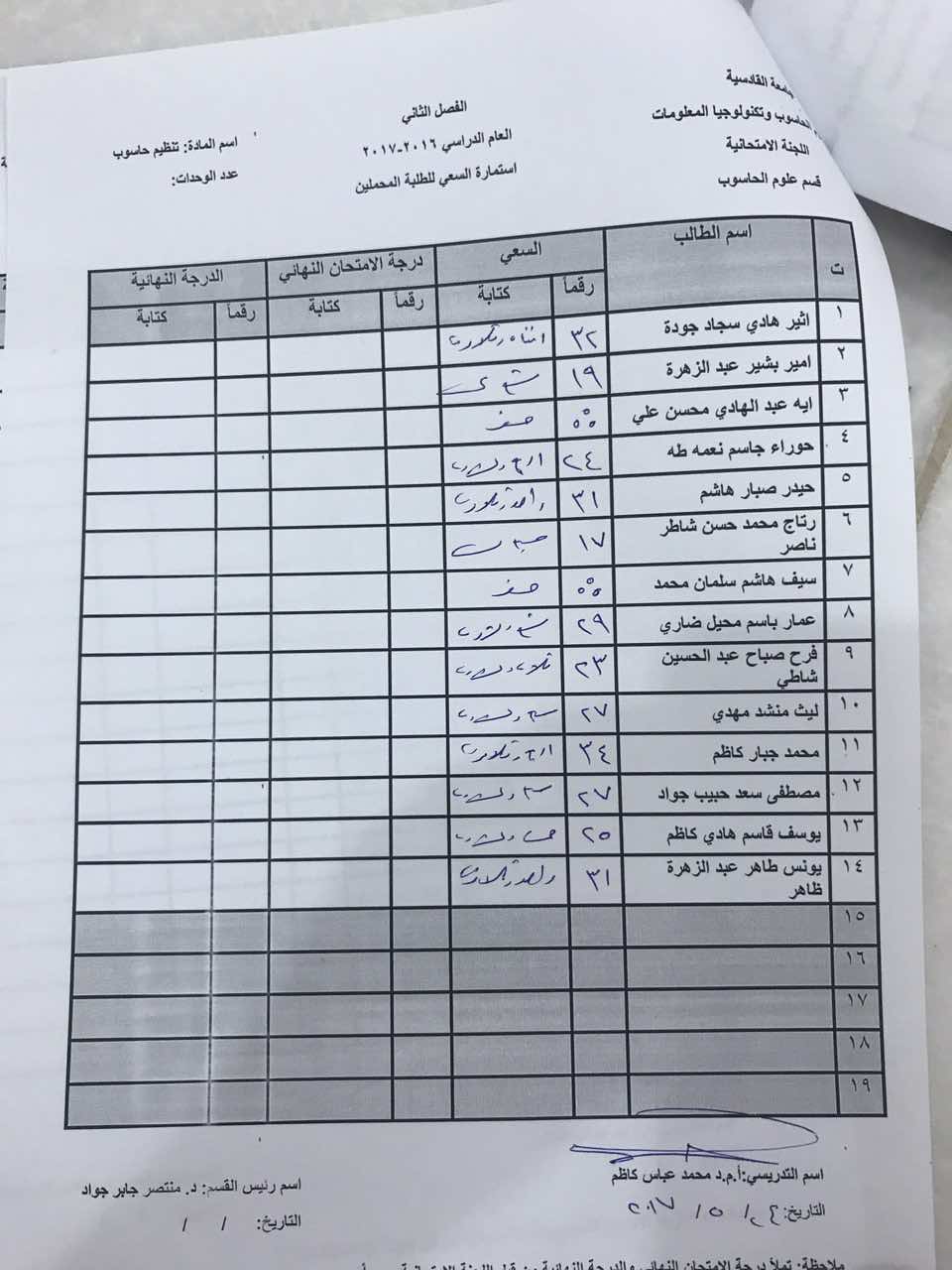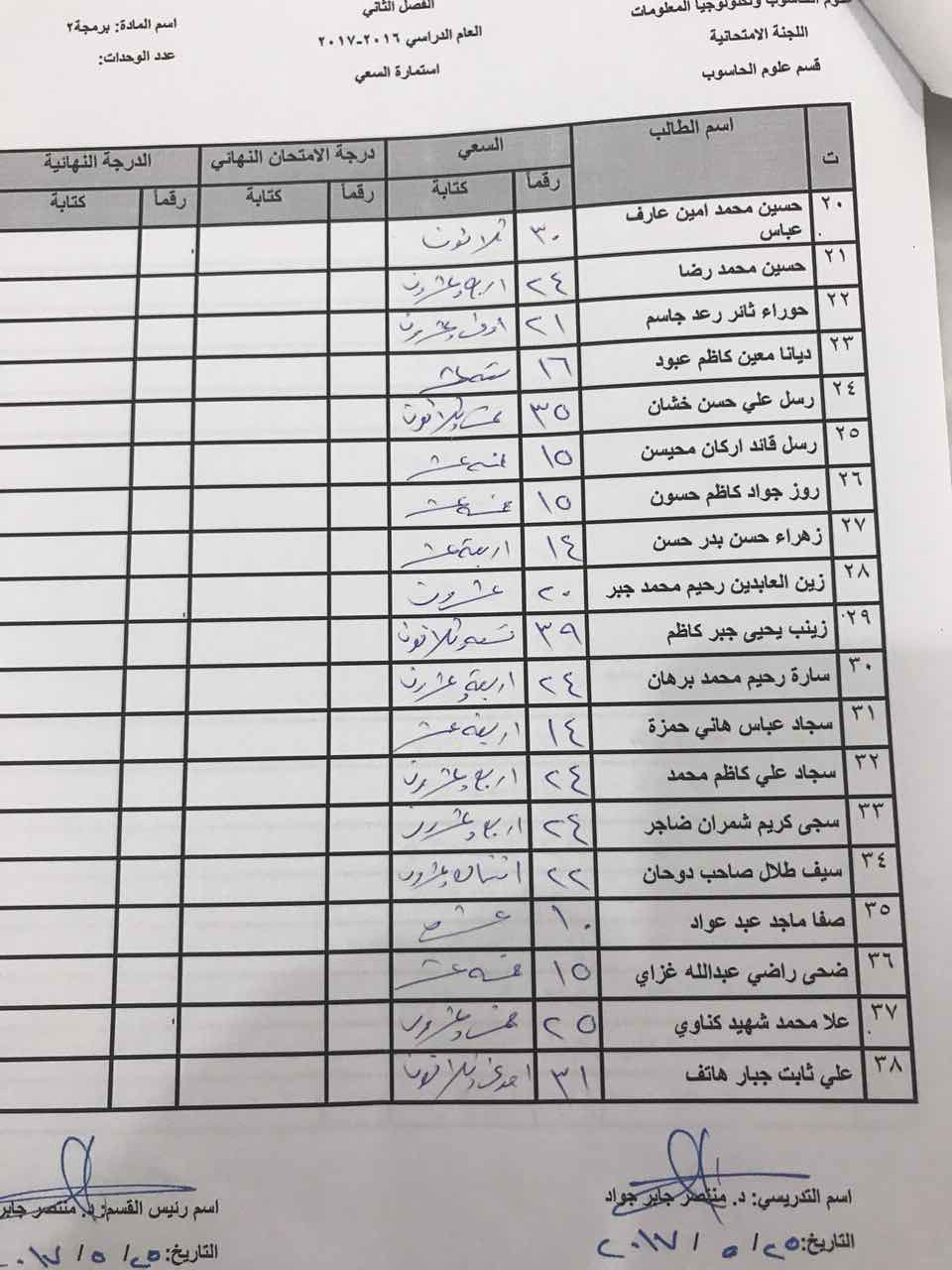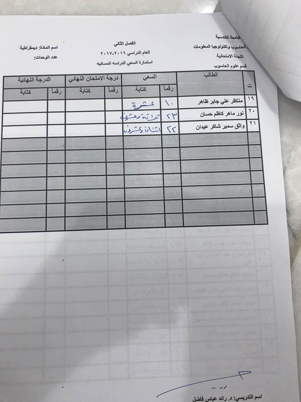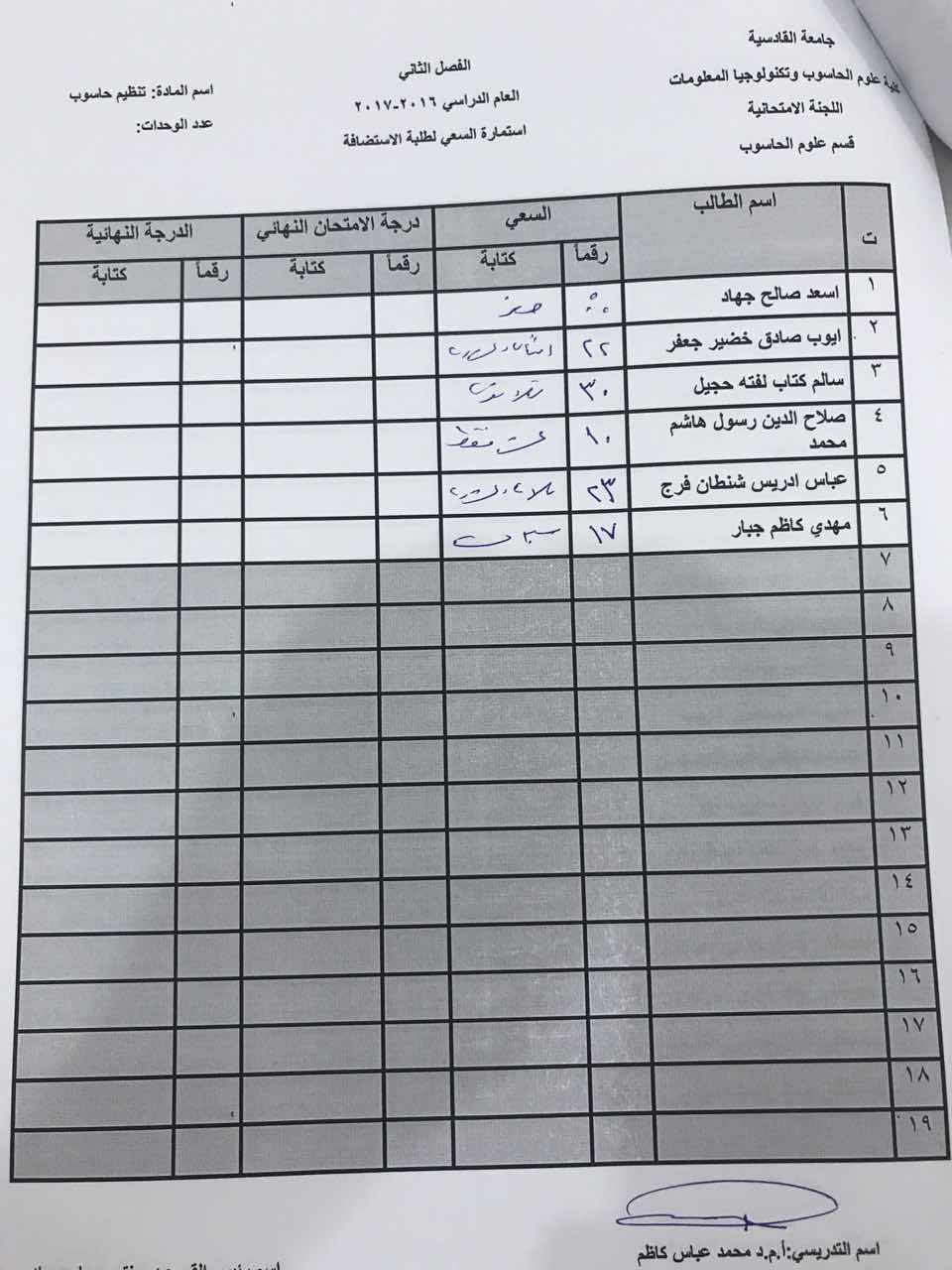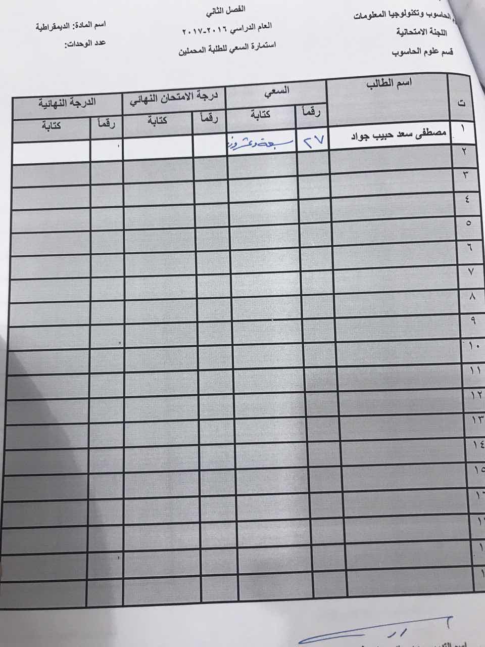 سعي مادة ( الديمقراطية ، تنظيم الحاسوب ، احصاء، برمجة 2،مترجمات 2، ذكاء اصطناعي ،معمارية الحاسب، نمذجة ومحاكاة، هياكل بيانات 2،احتمالية ومتغيرات عشوئية 2، هياكل بيانات ، تشفير،هياكل متقطعة ،
