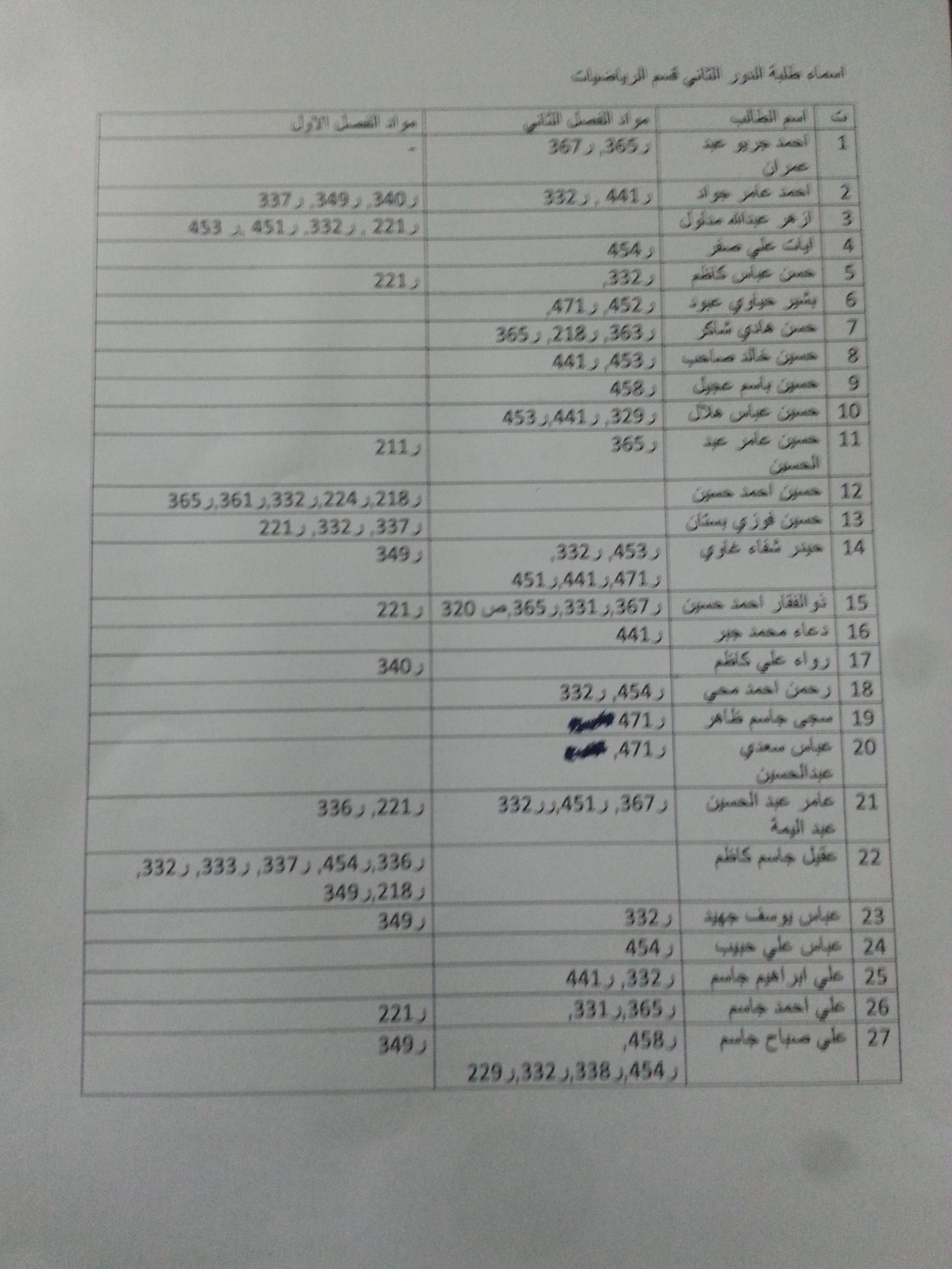 ندرج لكم ادناه اسماء الطلبة المشمولين بالدور الثاني