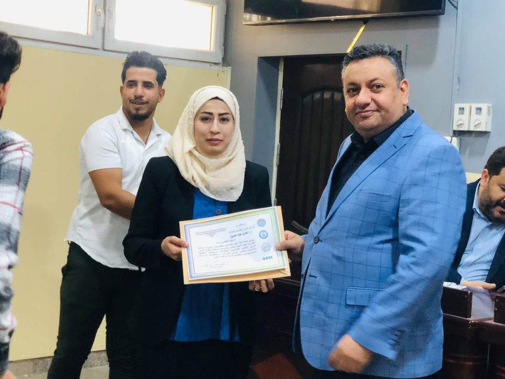 Al-Shammary started the ceremony by thanking the students and graduates of the college who were invited to the honoring ceremony after their active participation in organizing and managing the Fifth International Conference on Information Technology sponsored by the IEEE International Publishing organisation, which is registered within the Scopus network. It was one of the most important reasons for the success of the conference and its distinction at the level of the University of Al-Qadisiyah is the presence of the volunteer students and aluminies. He also referred to the promising future prospects for the college through the success of the conference at this high level. He stated that the spirit and bonds of the one family of the College of Computer Science and Information Technology has produced these impressive results, and that every individual in the educational institution is an effective energy for the change and continuity progress.