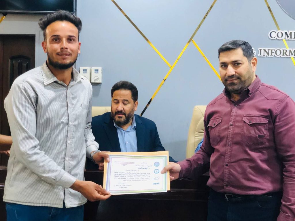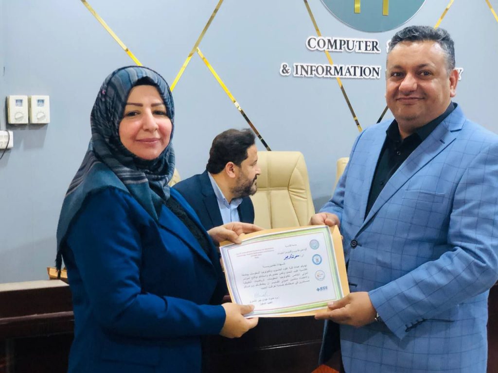 The College of Computer Science and Information Technology at the University of Al-Qadisiyah, represented by the Dean of the College, Assistant Professor Dr. Dhiah Al-Shammary, and the Associate Dean for Administrative Affairs, Dr. Ahmed Mohsen Mahdi, held an honoring ceremony for members of the students and alumni organizing committees of the Fifth International Conference on Information Technology held in March 2023