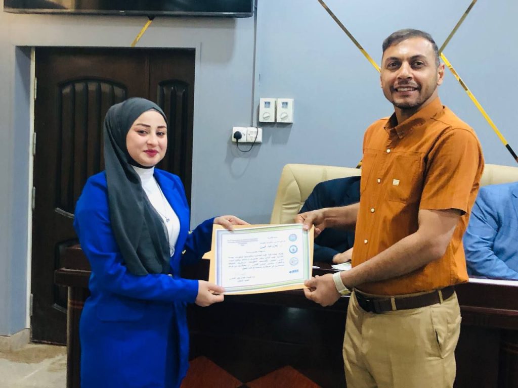 Prof. Dr. Mohsen Al-Zubaidi and Assistant Professor Dr. Adnan Rahman from the College of Arts also participated in the ceremony, who praised the participation of the students and the success of the conference. The attendees were awarded an appreciation certificate in recognition of their exceptional efforts in supporting the college and the success of its distinguished conference.