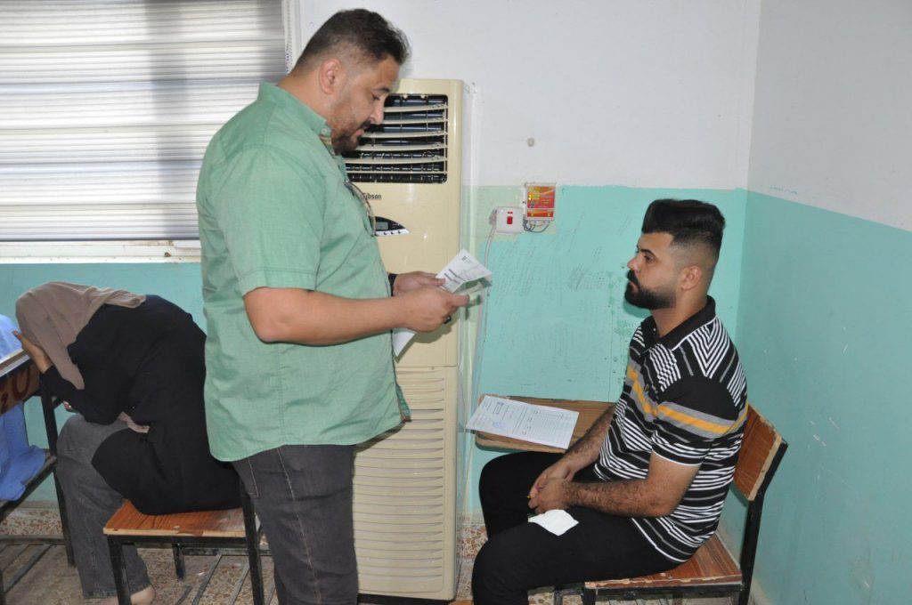 Dr. Dhiah Al-Shammary, the Dean of the college, directly supervised the examination process, inspected the smooth flow of applicants, and ensured a high level of services such as cooling conditions and availability of drinking water. Al-Shammari expressed his satisfaction with the excellent performance of the teaching and administrative staff of the college, and extended his sincere gratitude to Assistant Professor Qusai Imran Musa, the Head of the Computer Science Department, and Dr. Ahmed Mohsen Mahdi, the Administrative Assistant, for their outstanding management and successful completion of the competitive exam in a commendable manner and suitable atmosphere.
