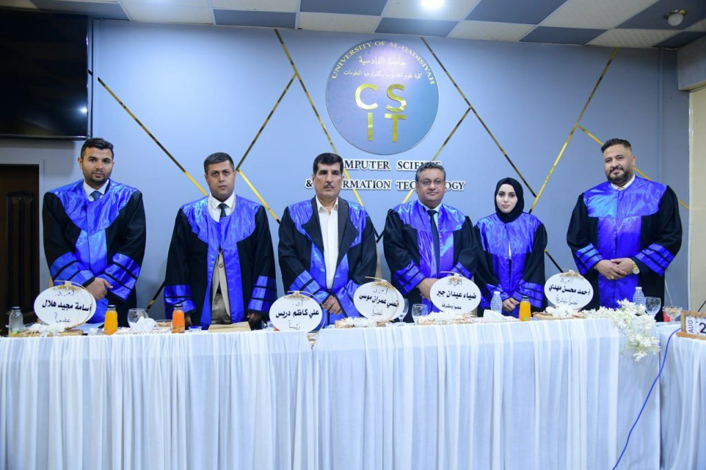 The Master’s student, Ikram Hakeem Ubais, successfully defended her thesis titled ‘Design and Implementation of Minkowski Features Selection and Aggregation for Machine Learning Algorithms’ at the College of Computer Science and Information Technology, University of Al-Qadisiyah. The research was conducted under the supervision of Assistant Professor Dr. Dhiah Al-Shammary.